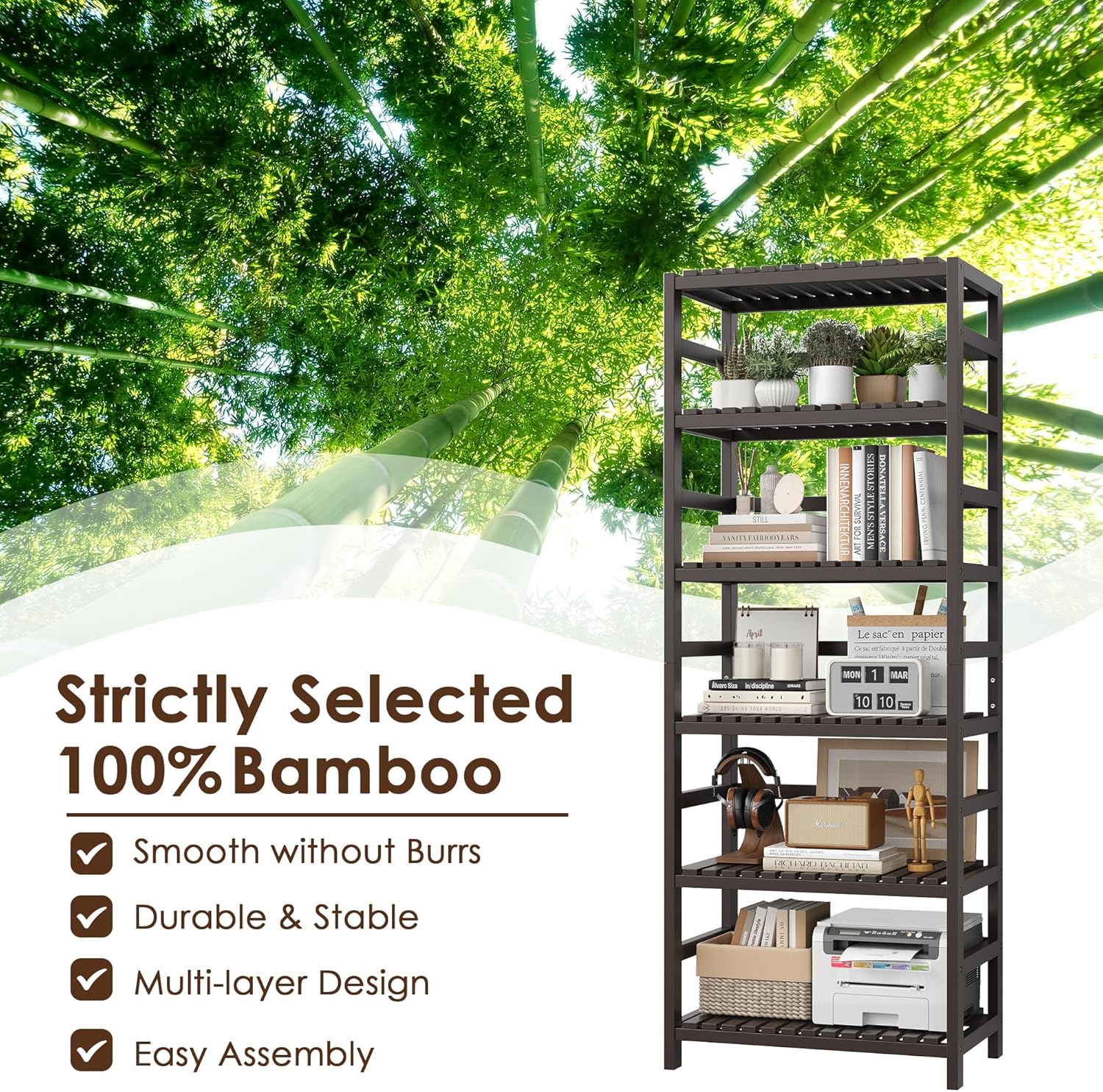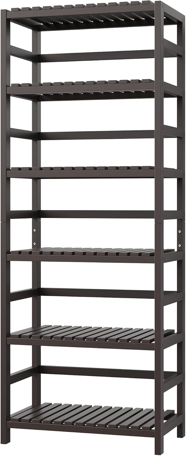 FOTOSOK 6-Tier Bamboo Shelf Set of 2, Bamboo Bookcase with Adjustable Shelves, Free Standing Storage Shelf Unit and Plant Flower Stand, Tall Large Bookshelf for Kitchen, Bathroom, Home Office, Natural