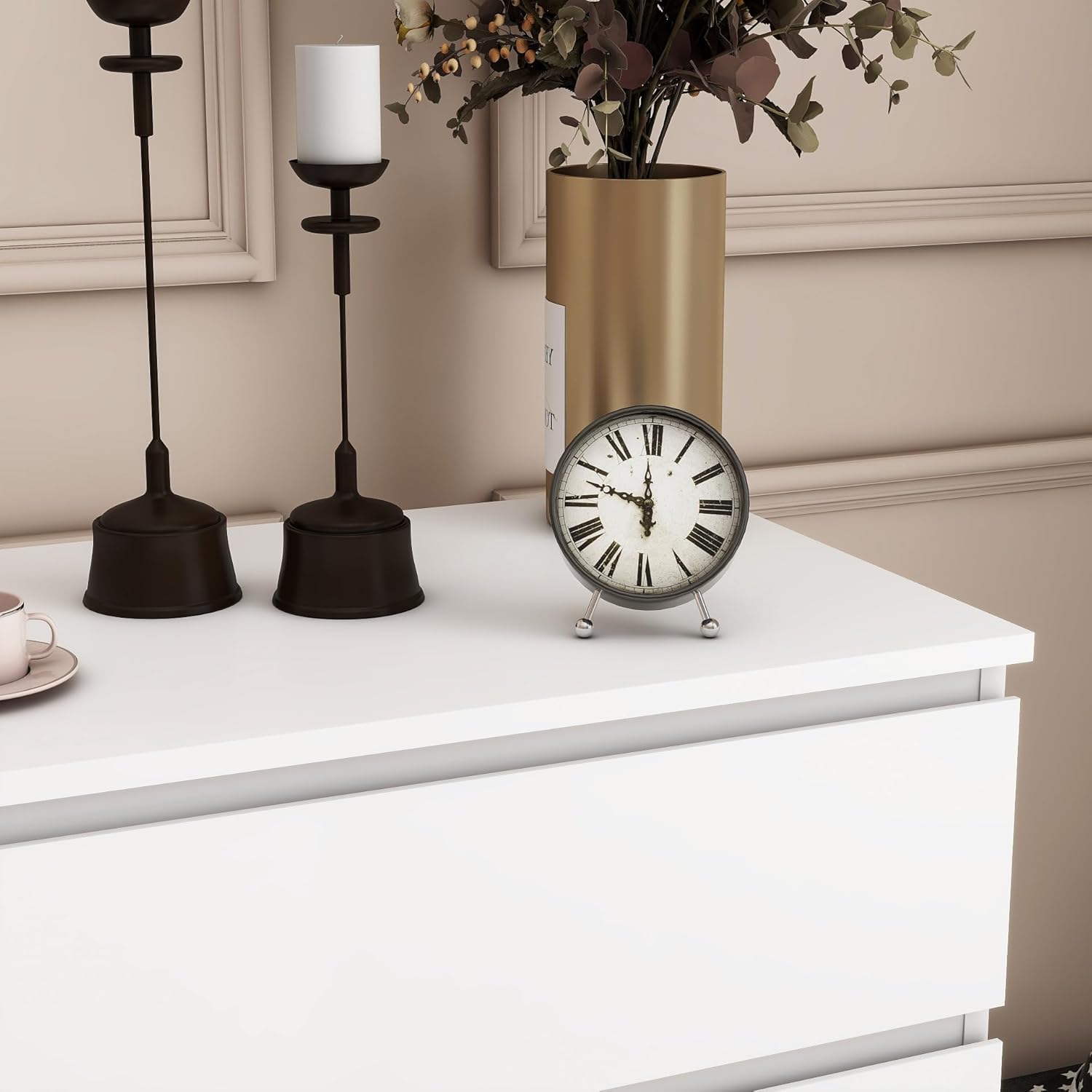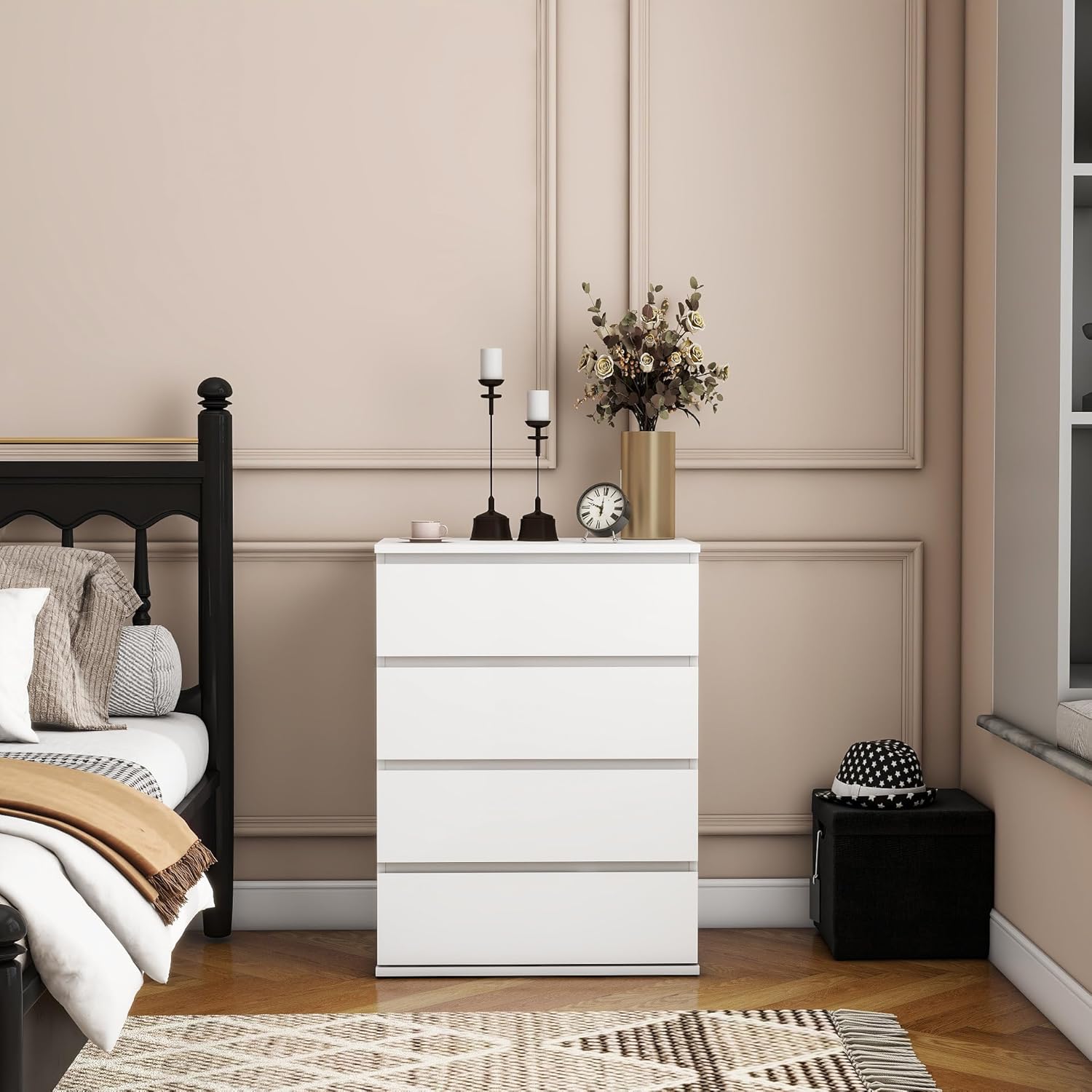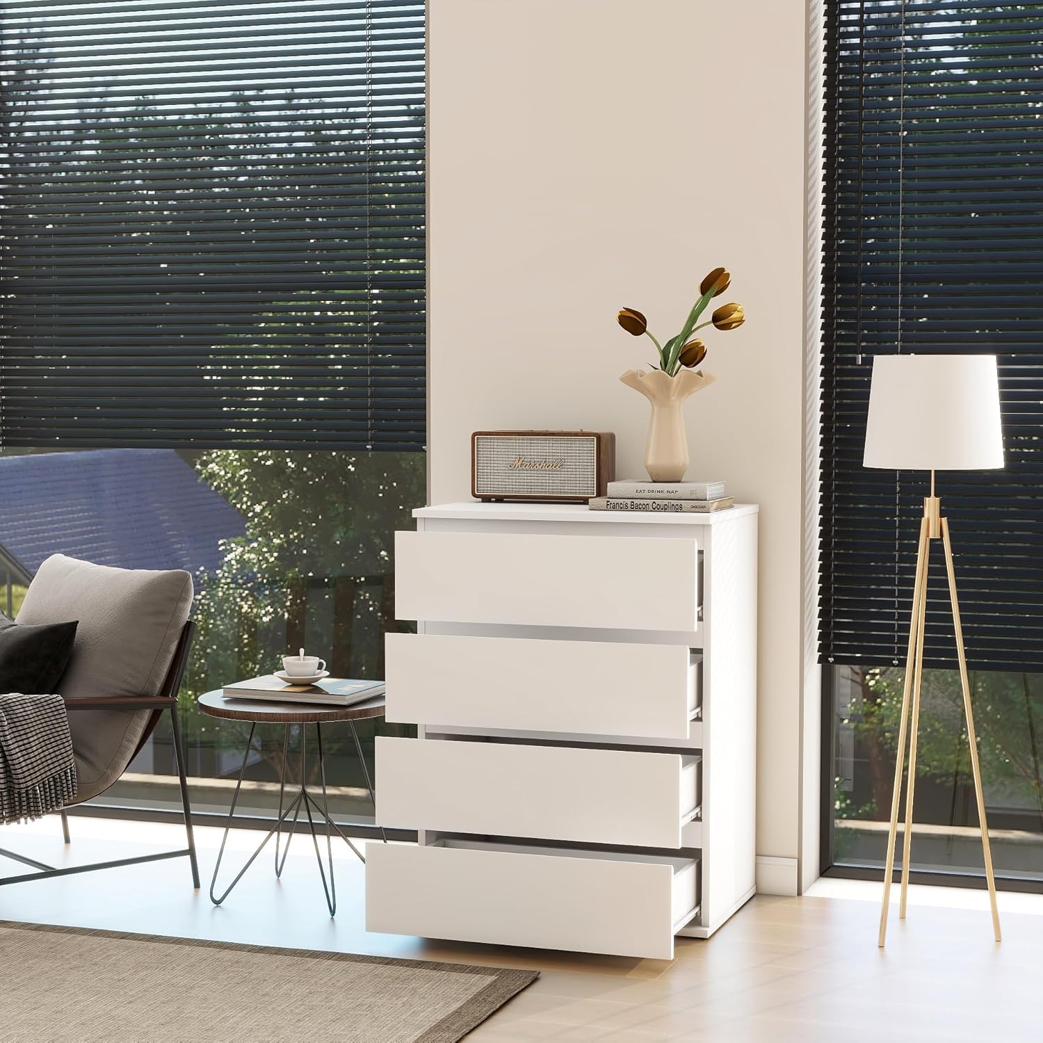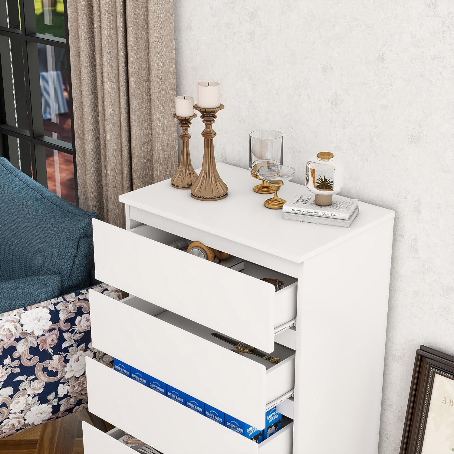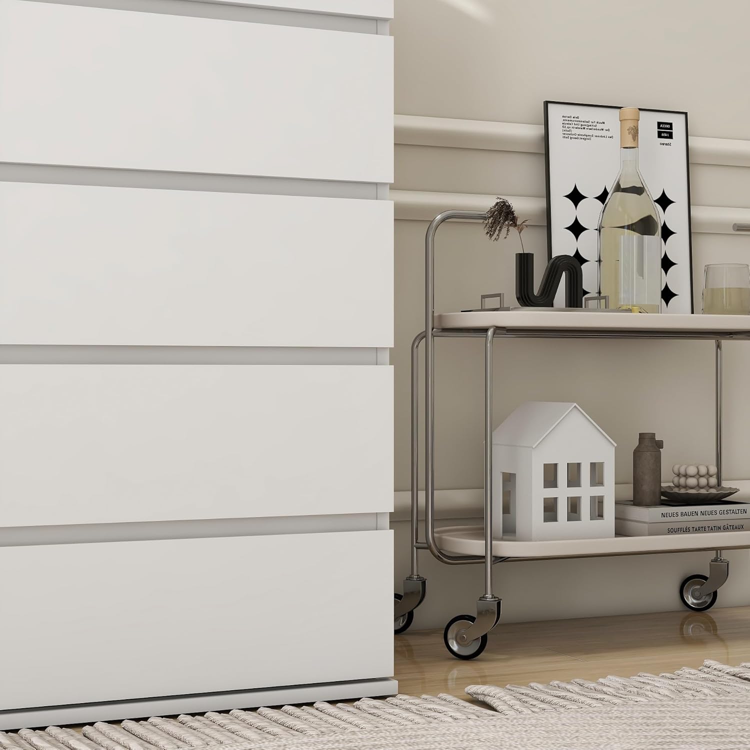 Modern Chest of Drawers, 4/5/6 Drawer Dresser Without Handles Floor Storage Drawer Cabinet Vertical Dresser Storage Organizer for Home Office(5 Drawers, White)