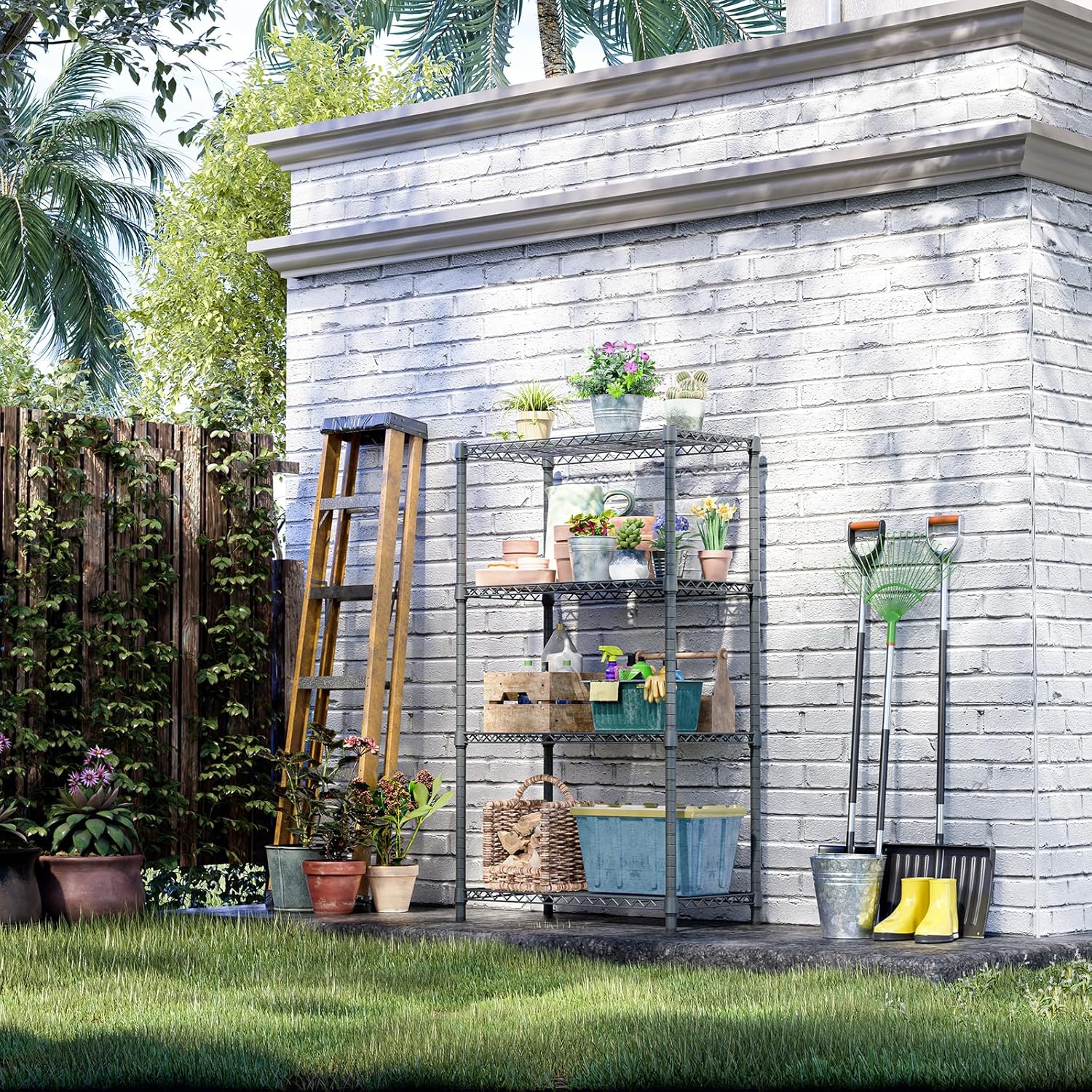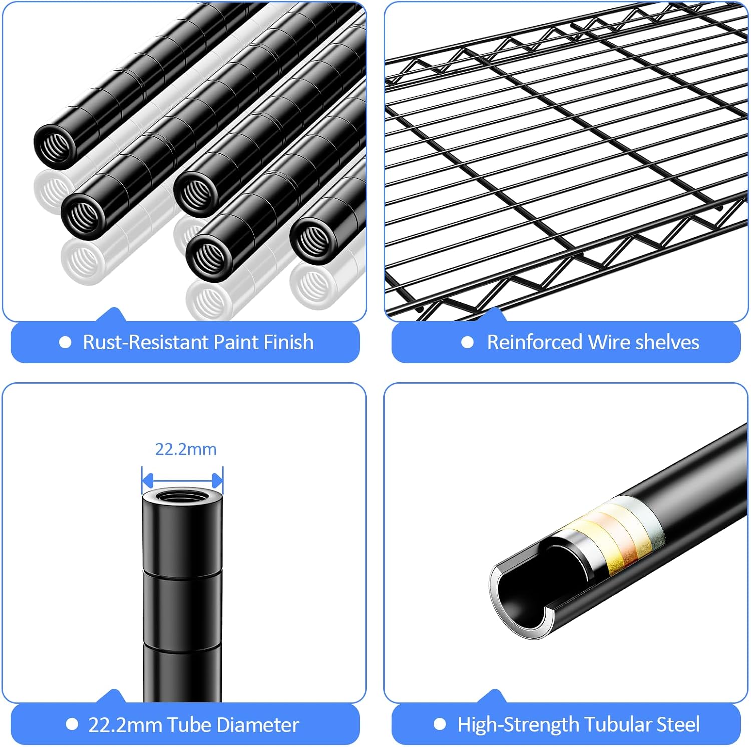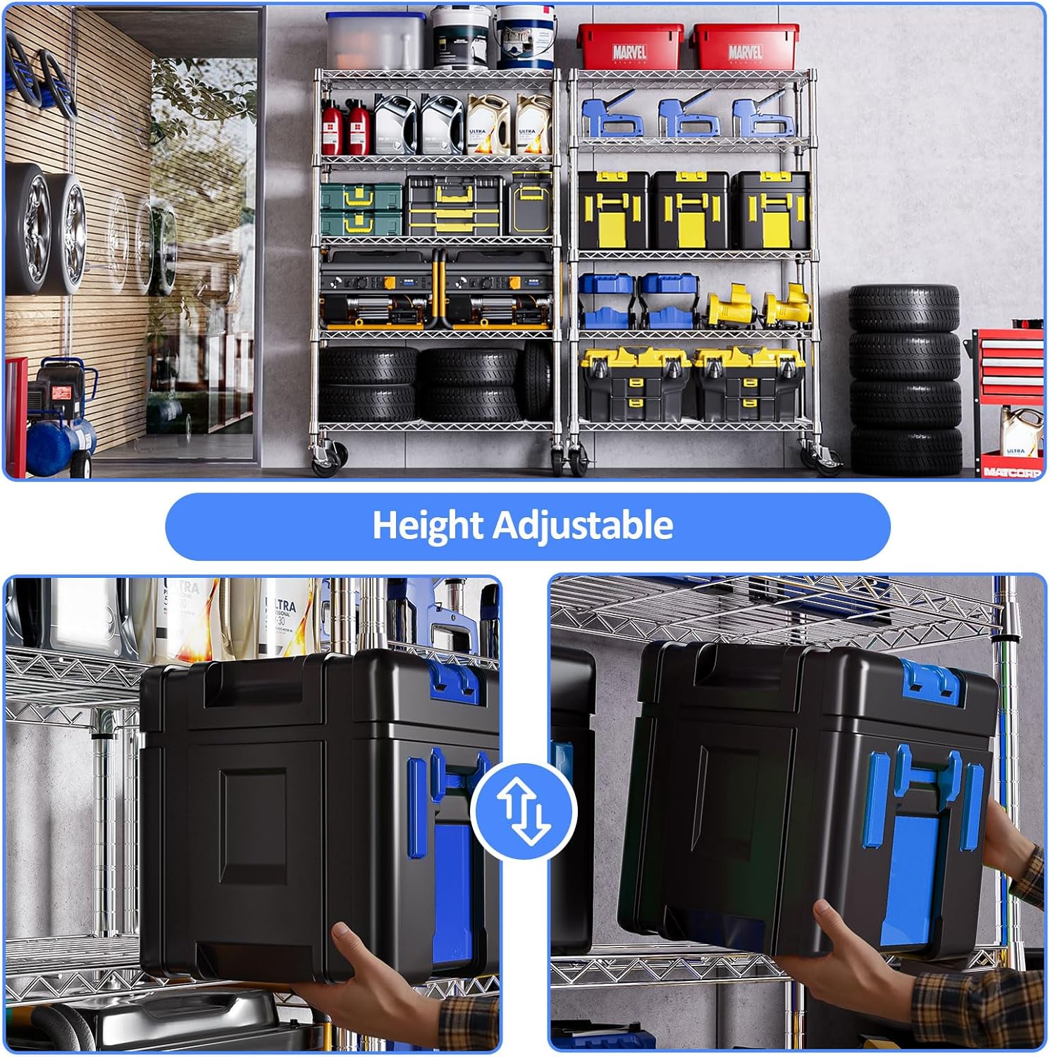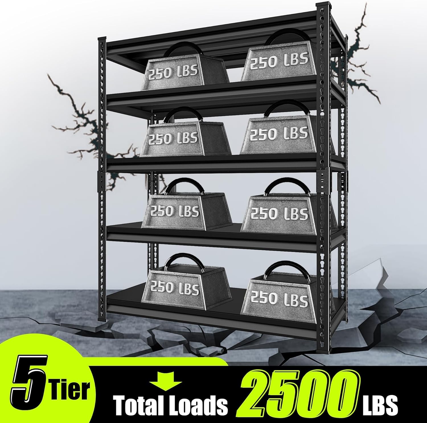 Garage Shelving Heavy Duty 2500LBS Loads, 48" W Adjustable Garage Storage Shelves, 5-Tier Metal Shelving Units and Storage, Industrial Utility Shelf, 48" Wx18 Dx78 H,Black