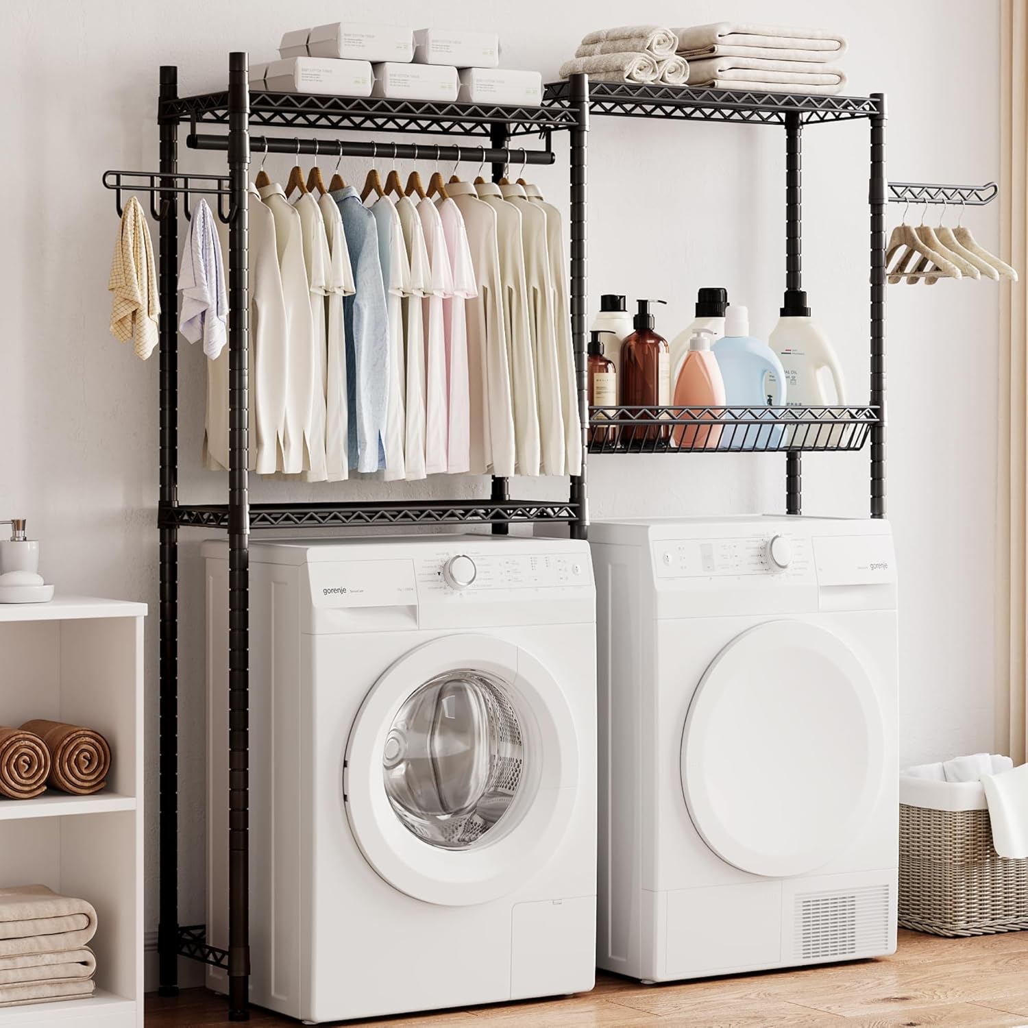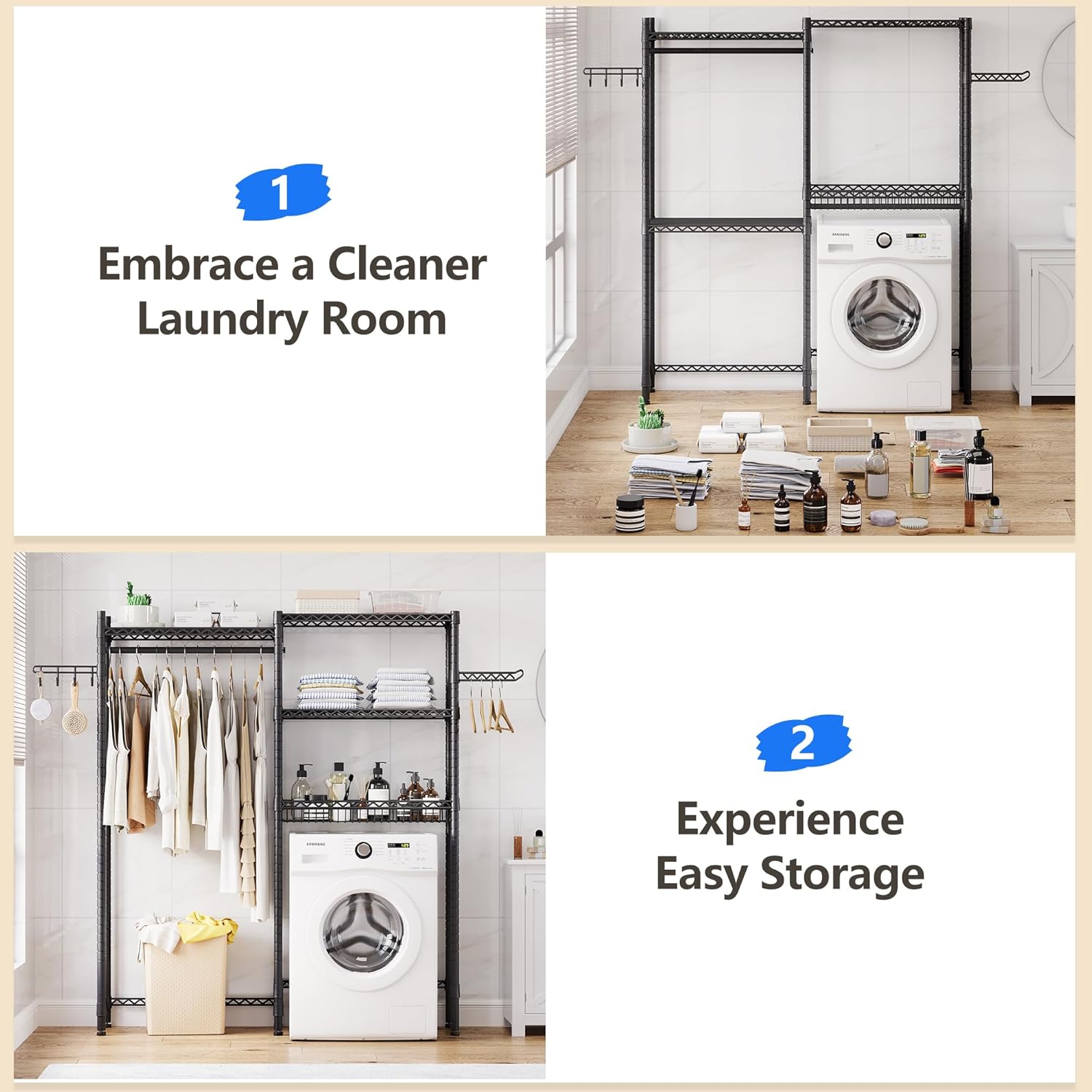 IDEALHOUSE Over The Washer and Dryer Storage Shelf- Laundry Room Organization Space Saving Laundry Drying Clothes Racks Heavy Duty Adjustable Height Bathroom Shelf for Home Decor 65 * 13.78 * 74.8
