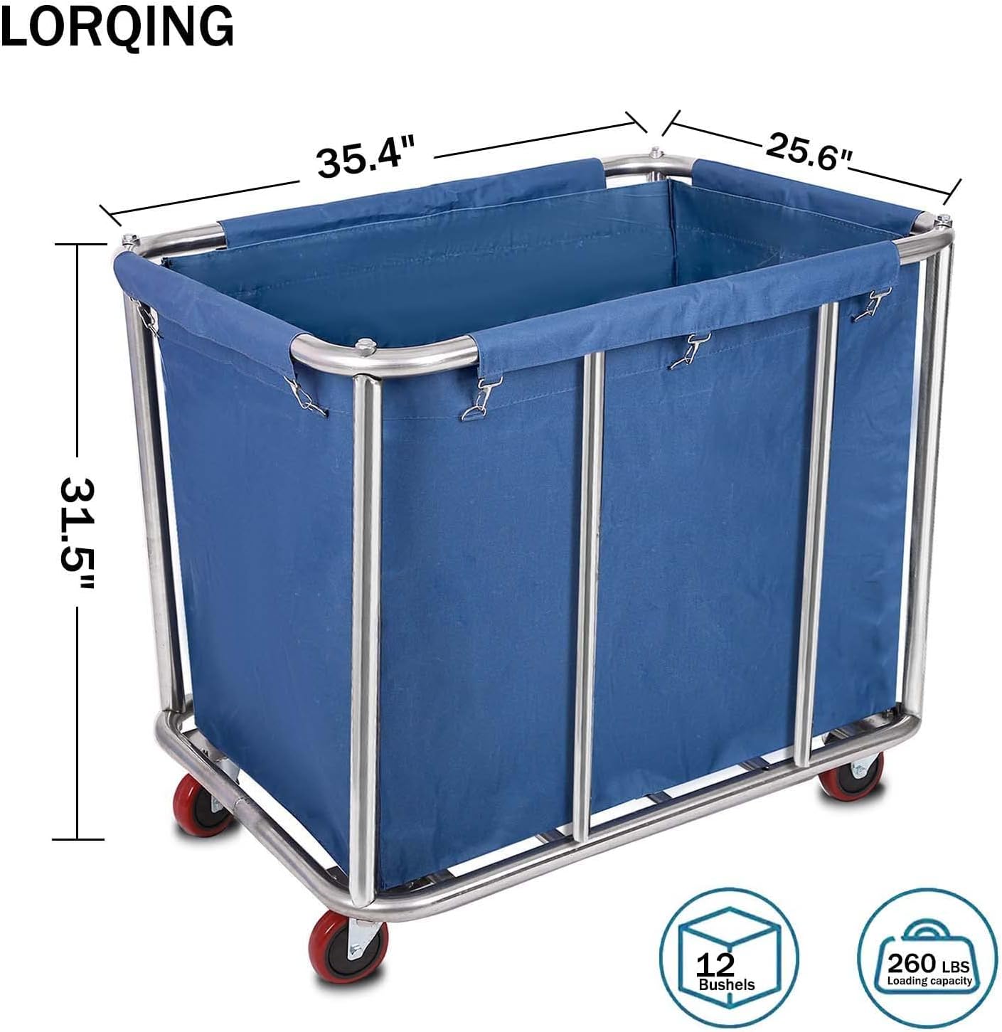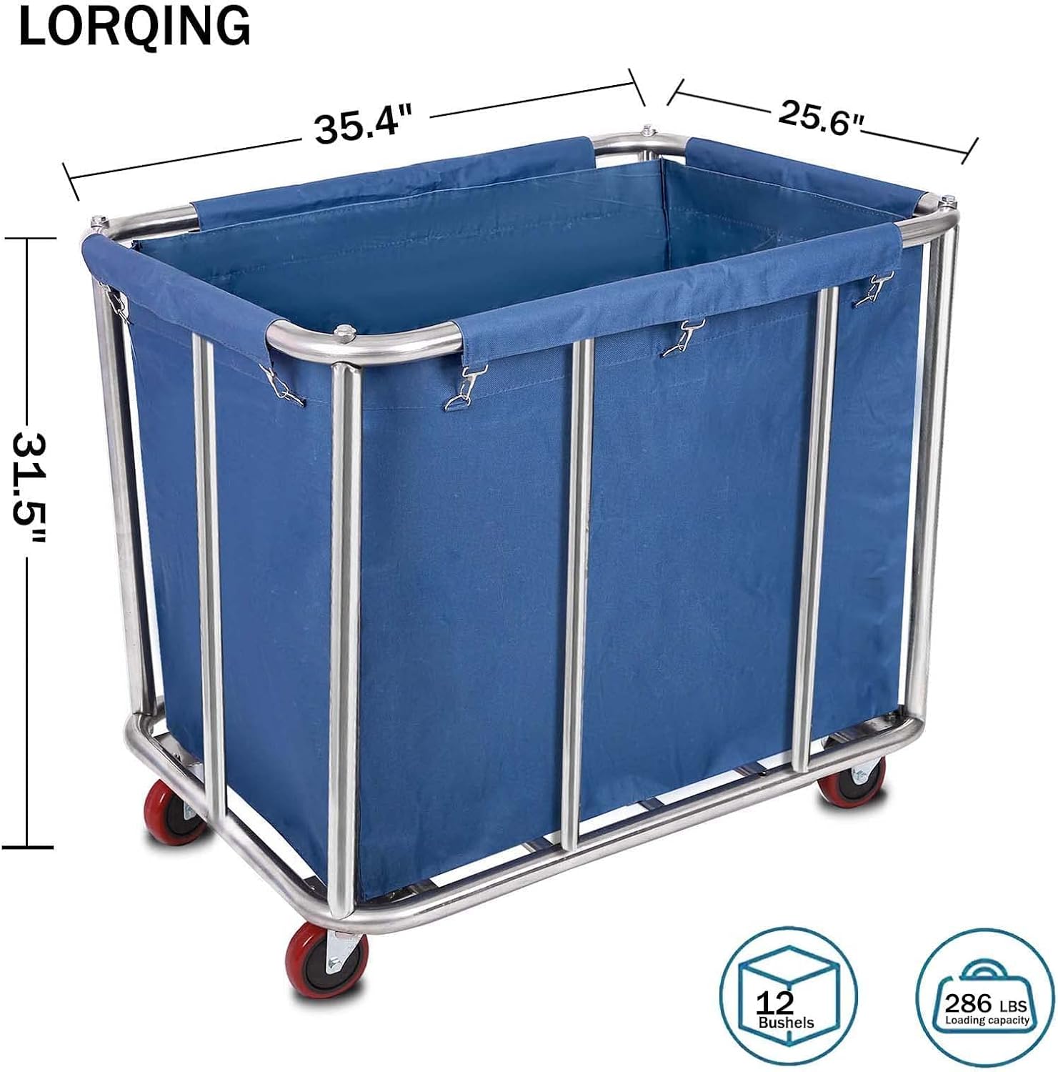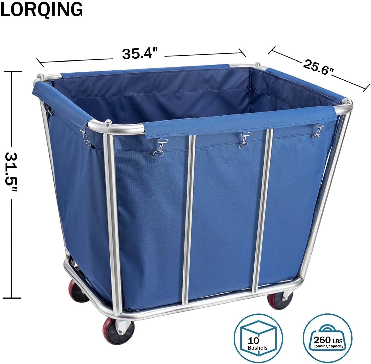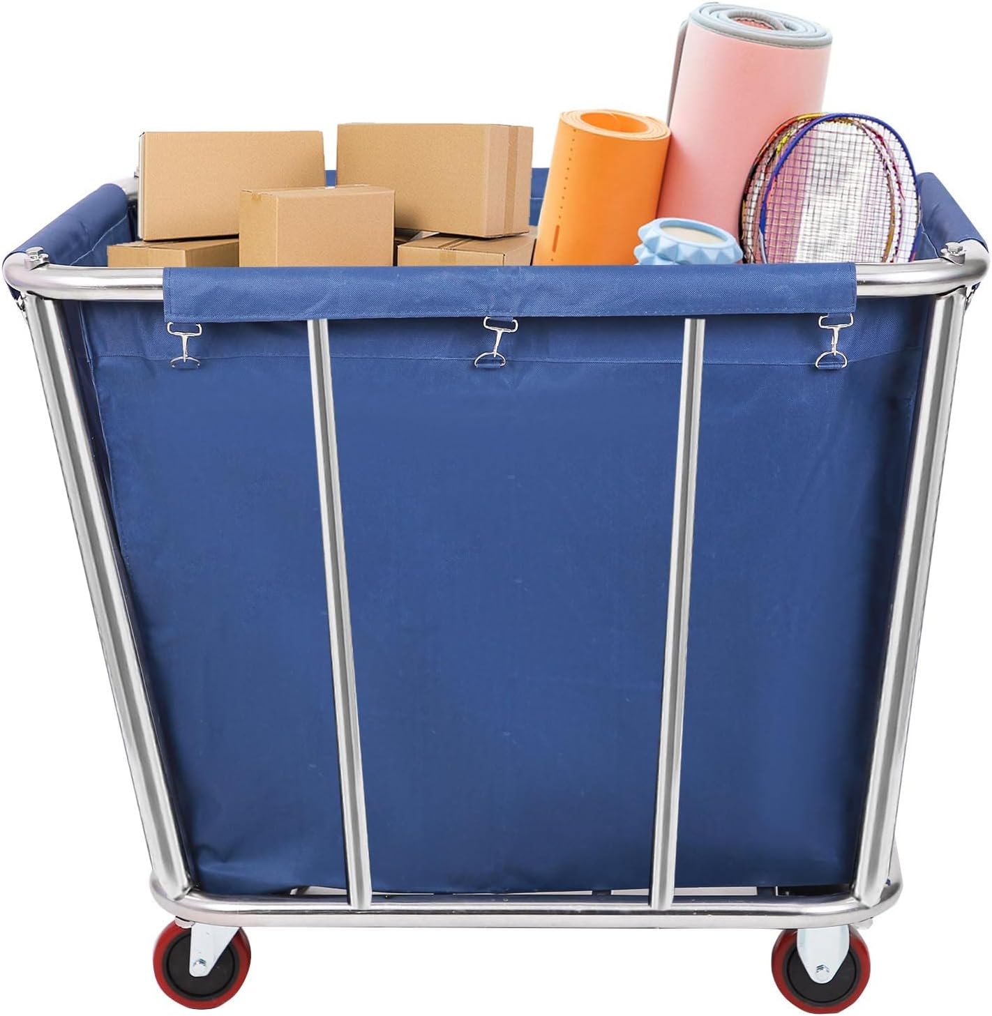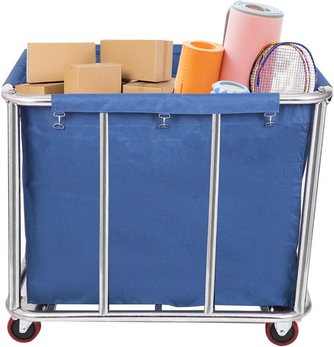 Commercial Laundry Cart with Wheels, 400L Large Capacity Heavy Duty Stainless Laundry Basket,Laundry Sorter for Clothes Storage,330 lbs Load (Blue)
