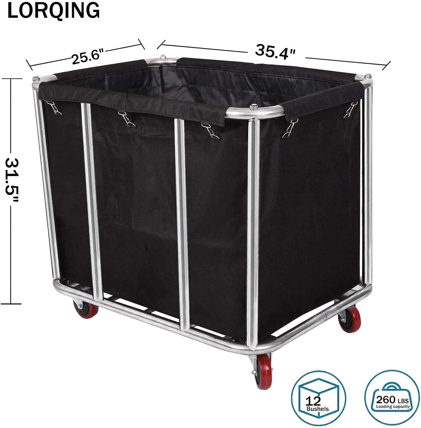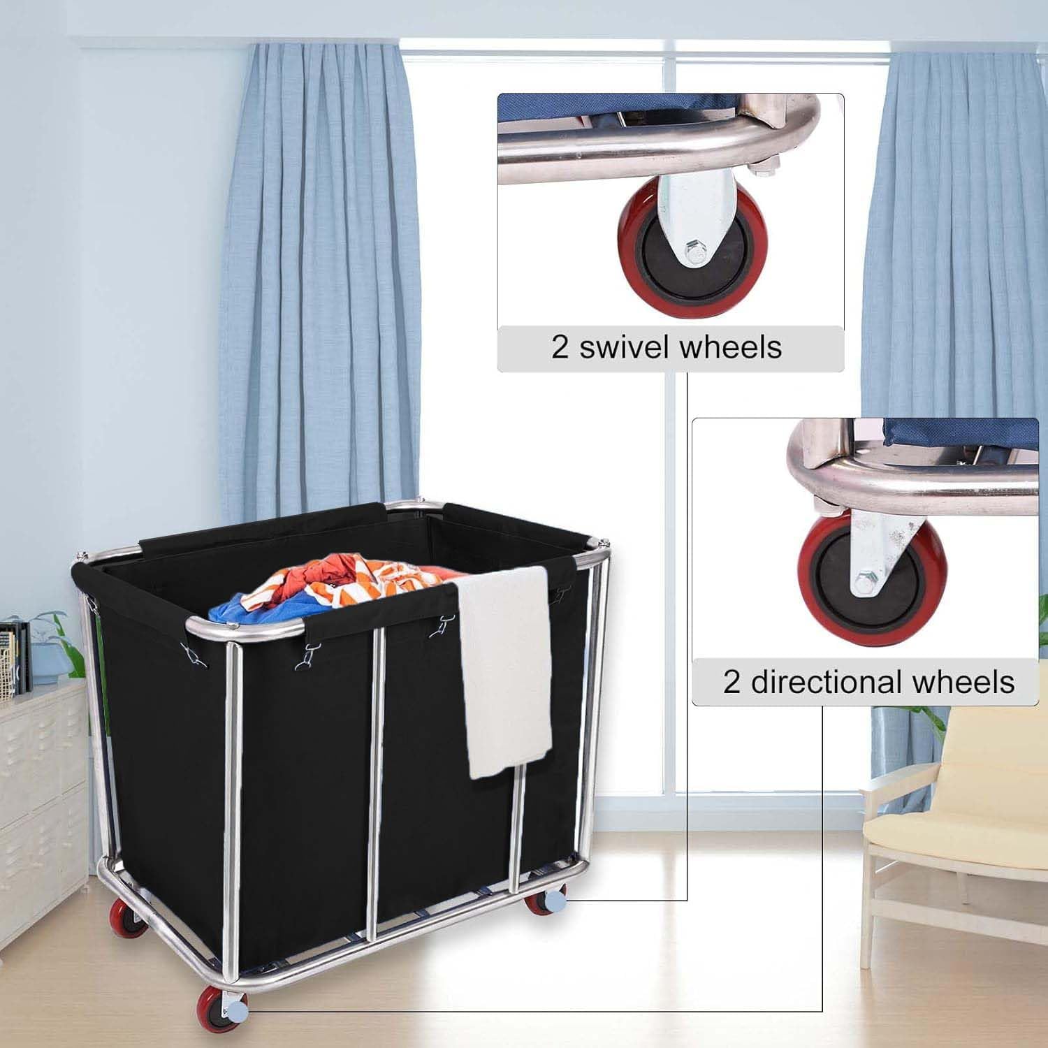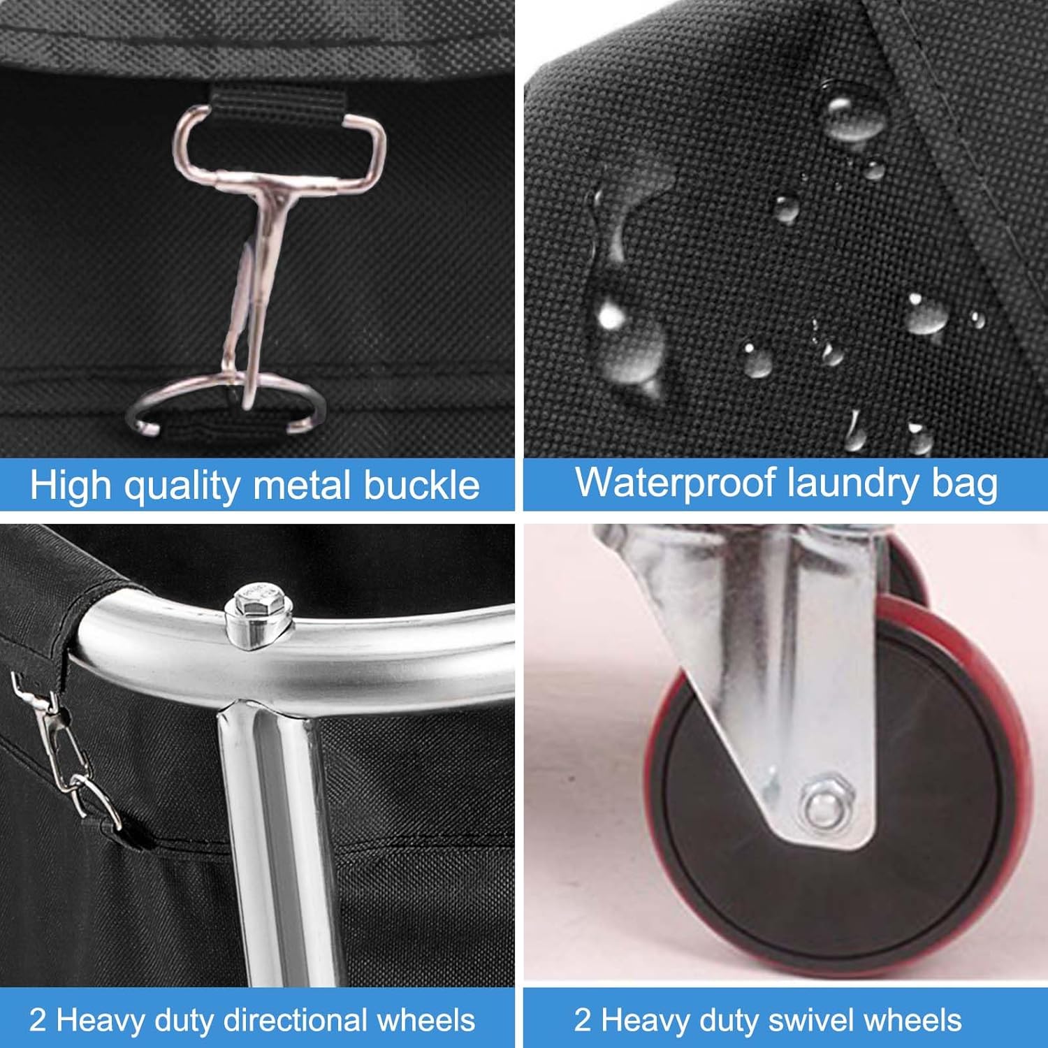 Commercial Laundry Cart with Wheels, 400L Large Capacity Heavy Duty Stainless Laundry Basket,Laundry Sorter for Clothes Storage,330 lbs Load (Black)