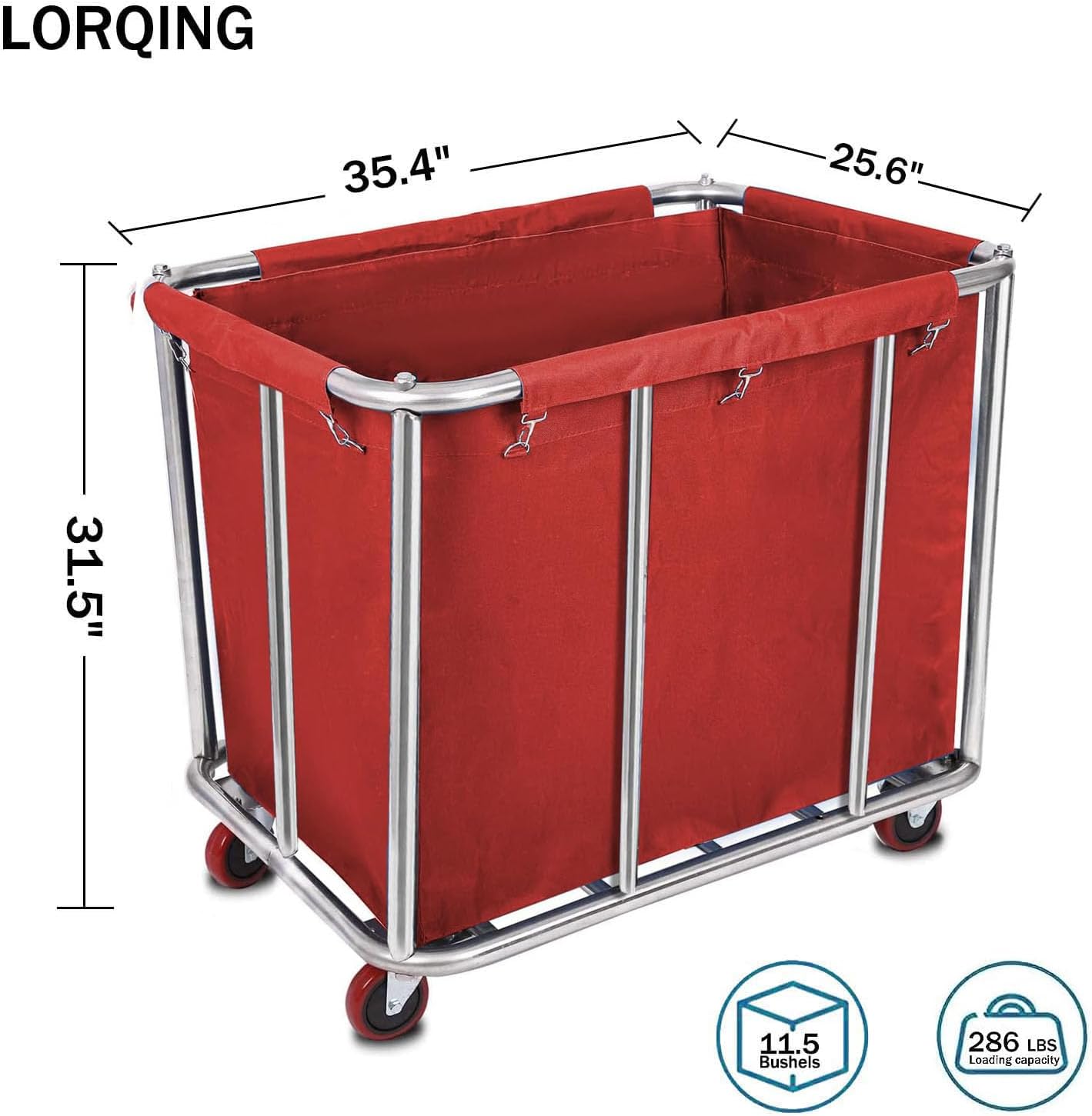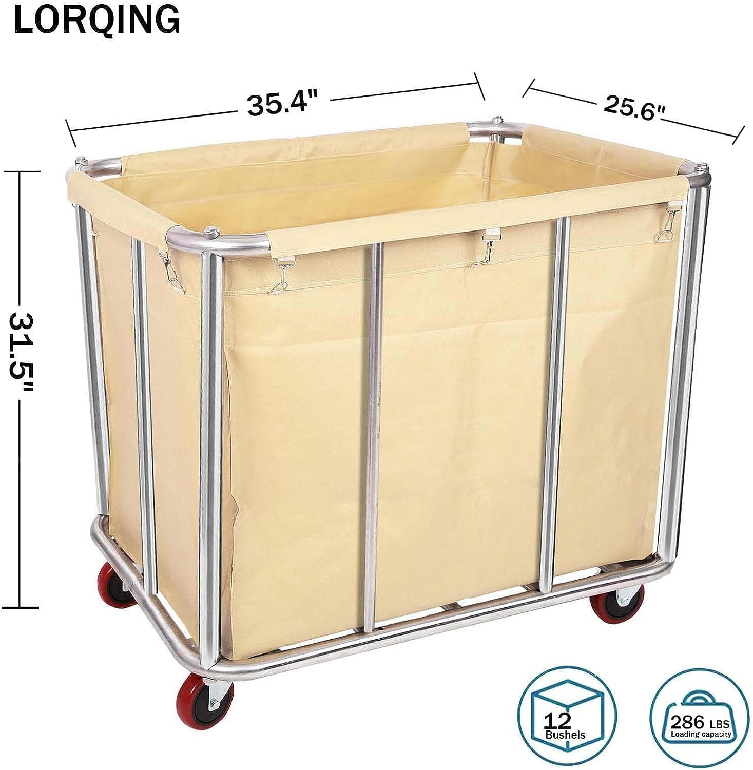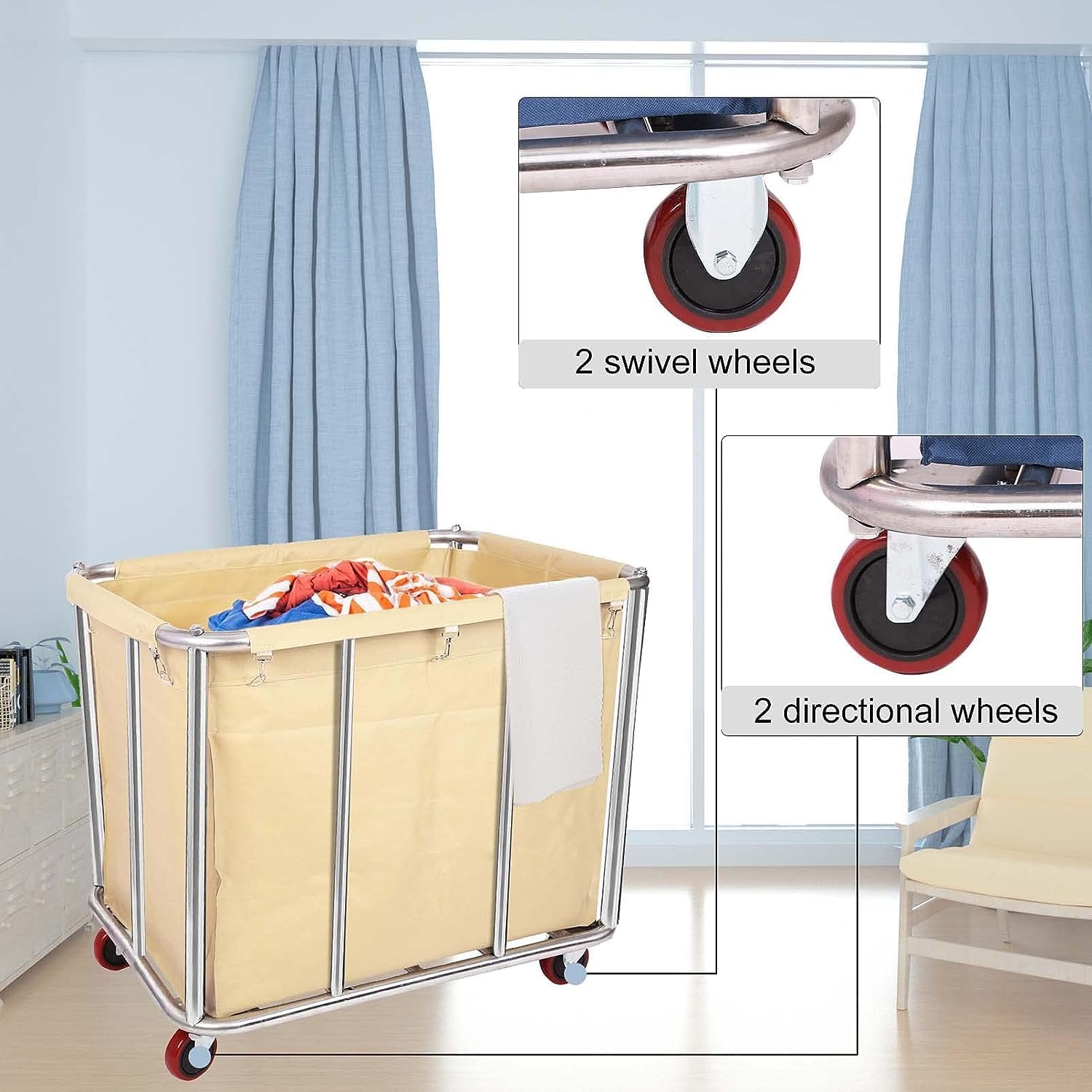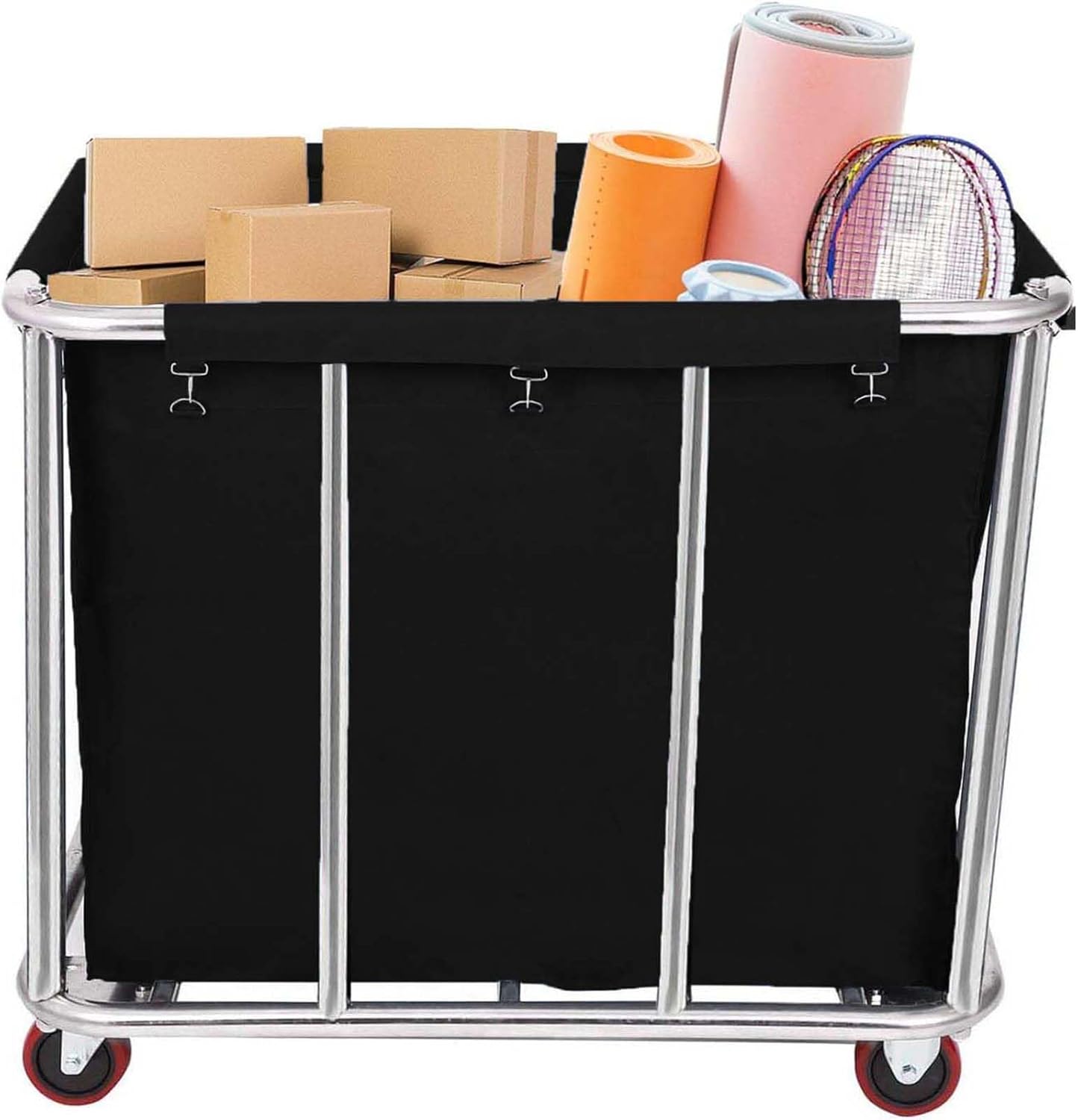 Commercial Laundry Cart with Wheels, 400L Large Capacity Heavy Duty Stainless Laundry Basket,Laundry Sorter for Clothes Storage,330 lbs Load (Black)