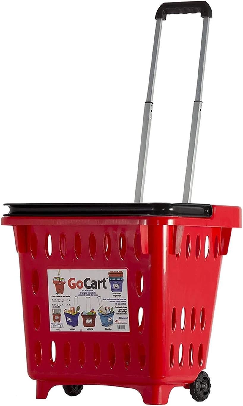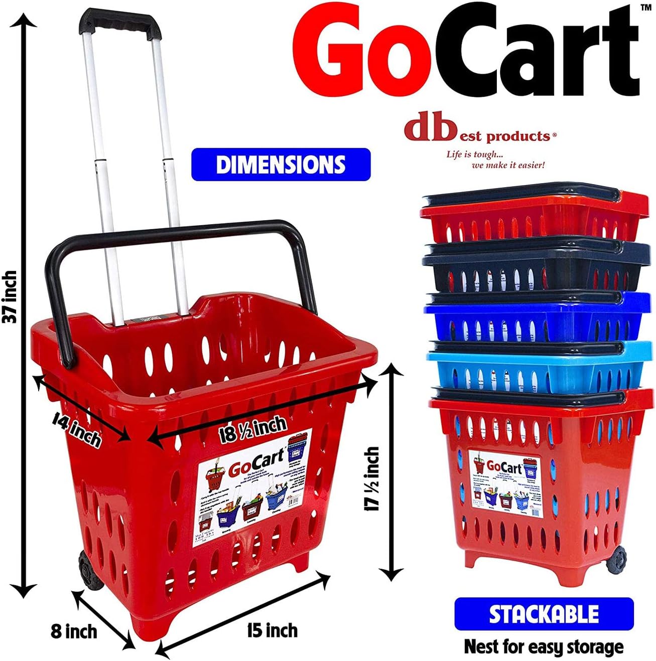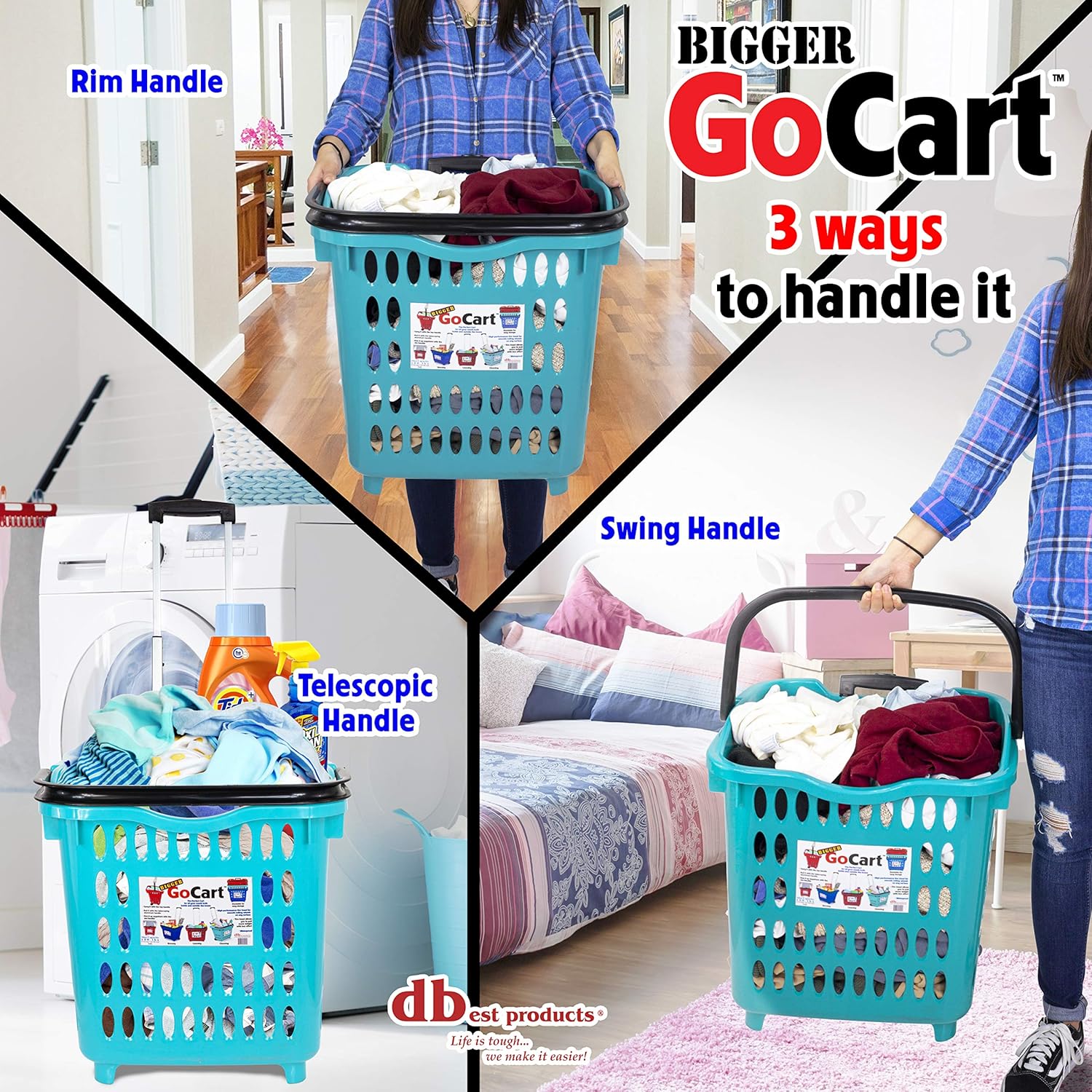 dbest products Bigger GoCart Grocery Cart Rolling Shopping Laundry Basket on Wheels Hamper with Telescopic Handle Cleaning Caddy Trolley, Teal, Bigger 1 pack