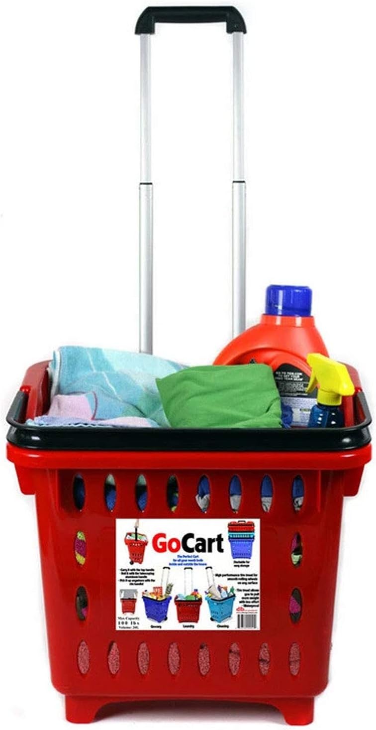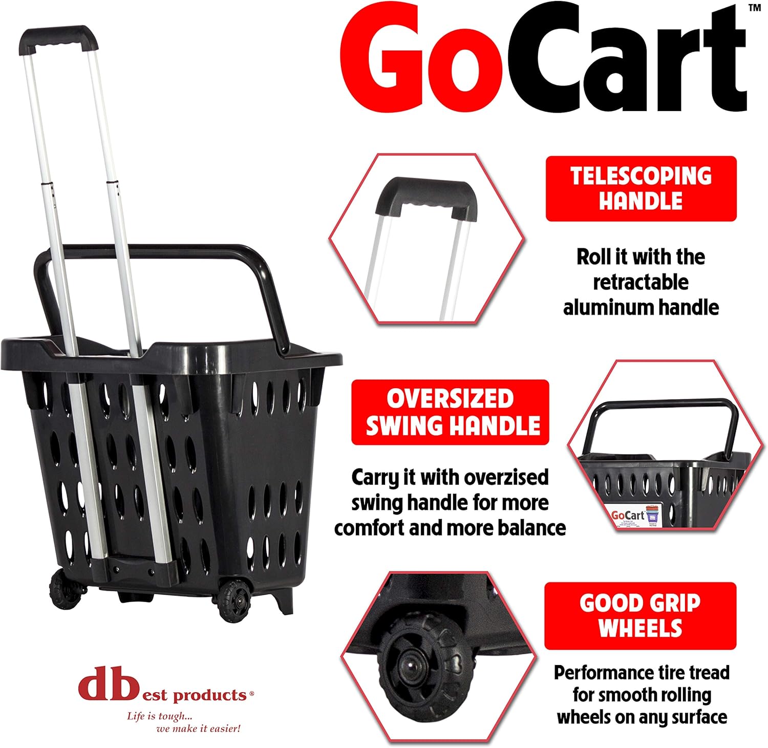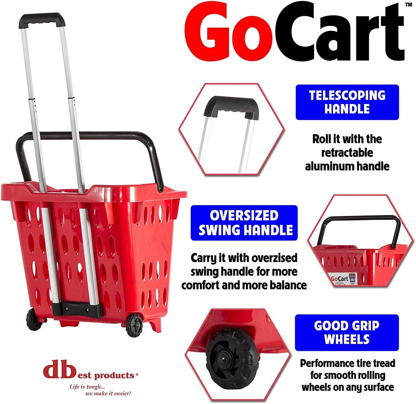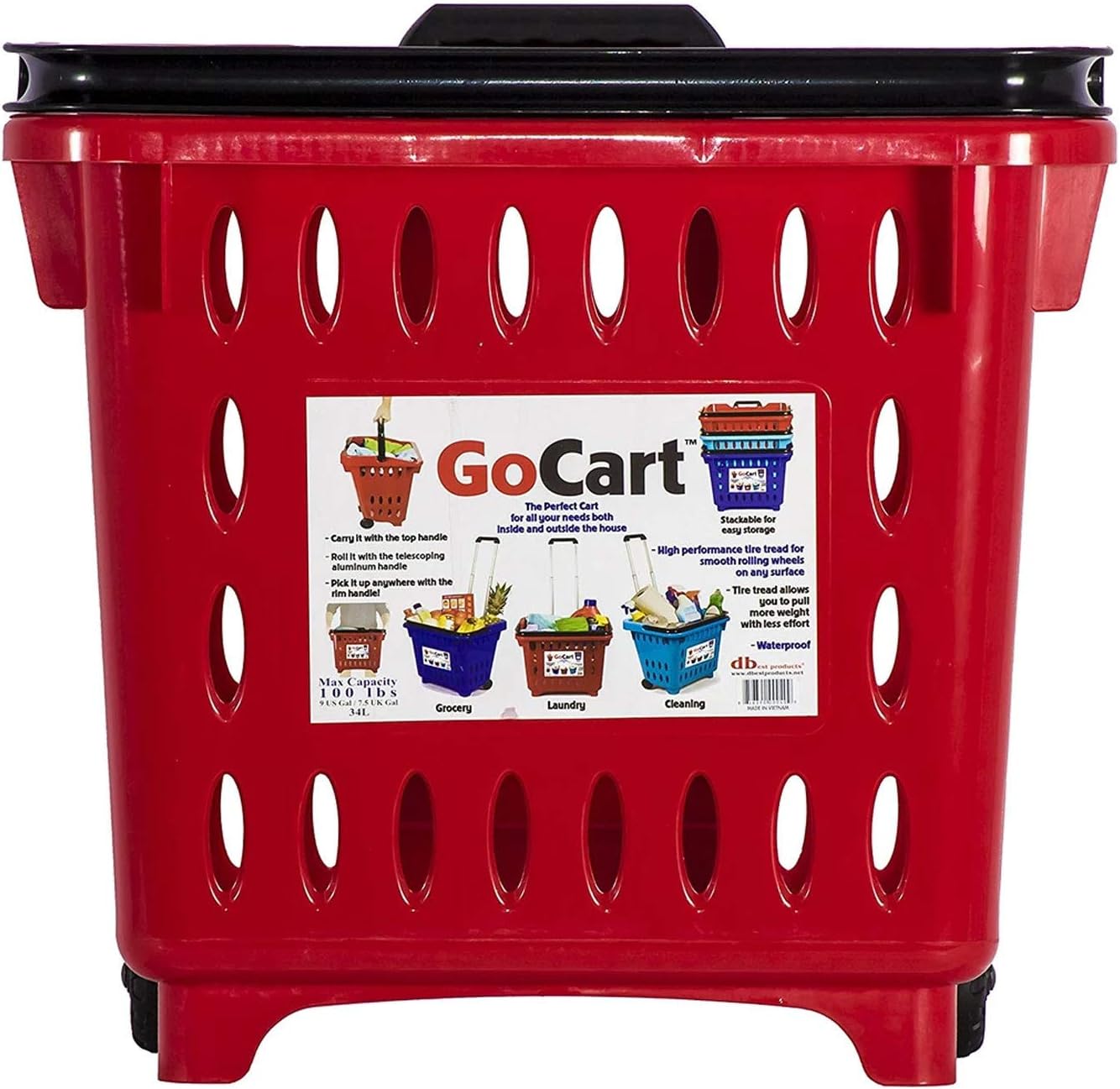 dbest products Bigger GoCart Grocery Cart Rolling Shopping Laundry Basket on Wheels Hamper with Telescopic Handle Cleaning Caddy Trolley, Teal, Bigger 1 pack