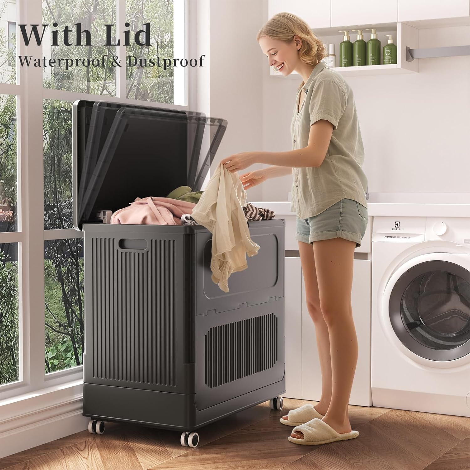 Collapsible Laundry Cart with Wheels Industrial 12 Bushel (400l) Commercial Laundry Hamper Large Heavy Duty Rolling Laundry Basket Waterproof Laundry Trucks for Home Organizer Storage