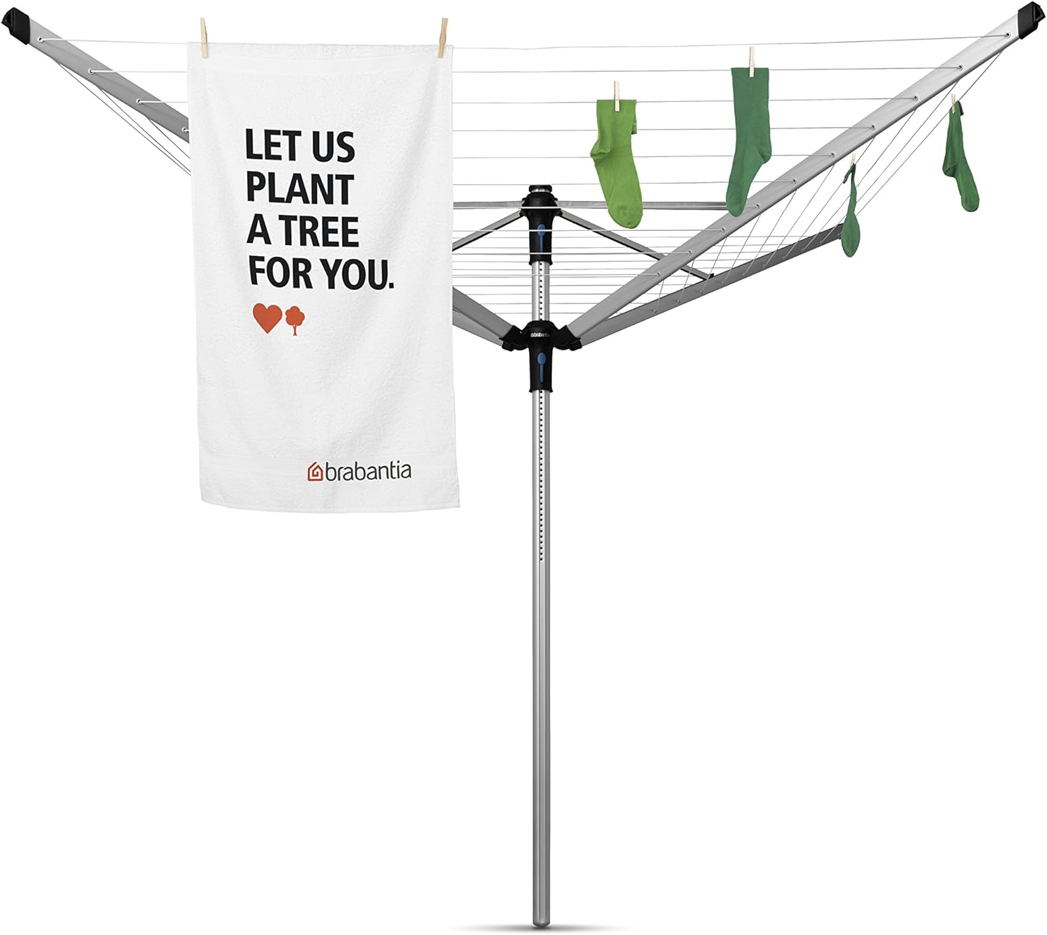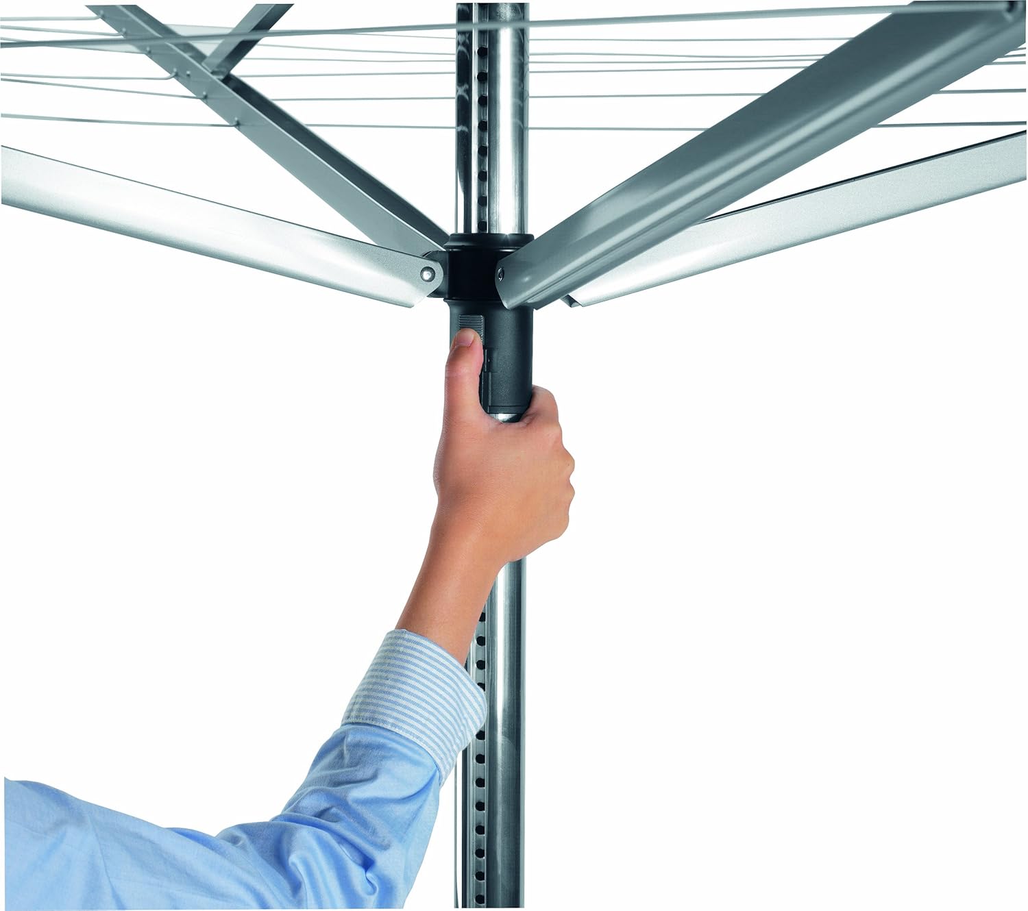 Brabantia Lift-O-Matic Advance Outdoor 4 Arm Clothesline (164 ft/Ø 1.97") Height Adjustable, Folding Clothes Drying Rack + Ground Spike, Cover + Bag of Clothespins (Gray)