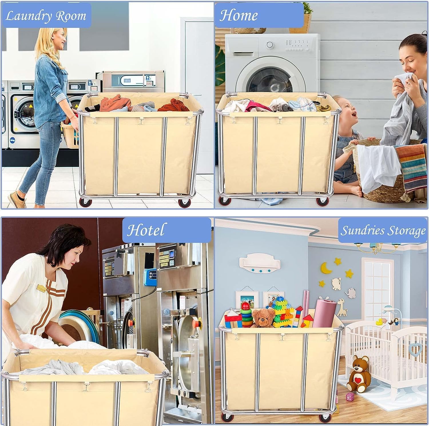 Industrial Laundry Cart with Wheel 12 Bushel (400l) Commercial Collapsible Laundry Hamper Large Heavy Duty Rolling Laundry Basket Waterproof Laundry Trucks for Home Organizer Storage