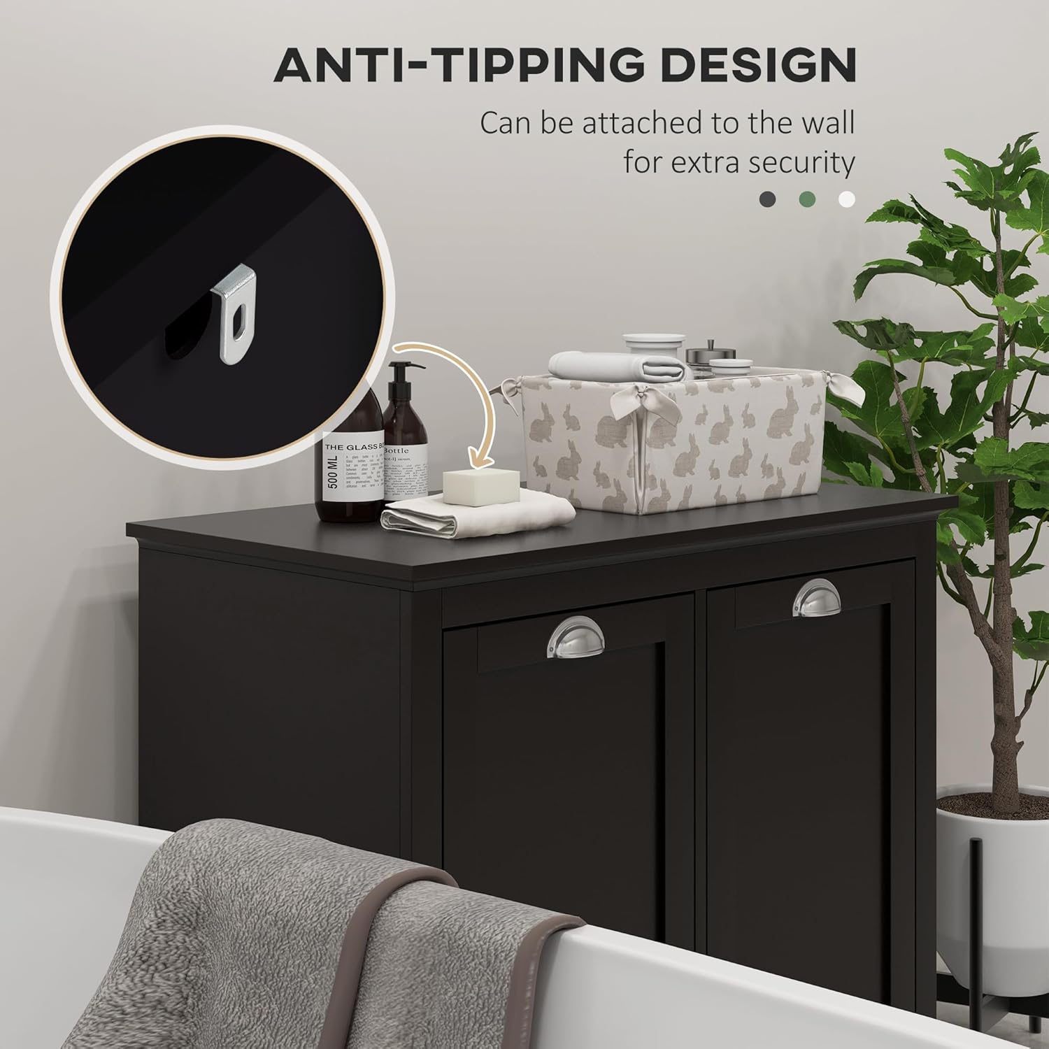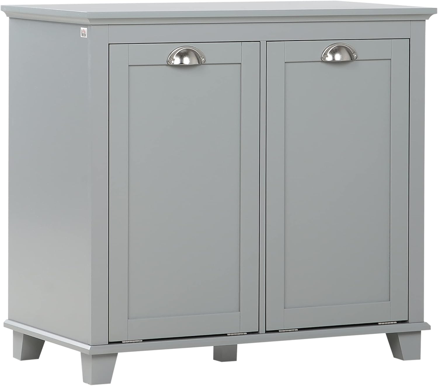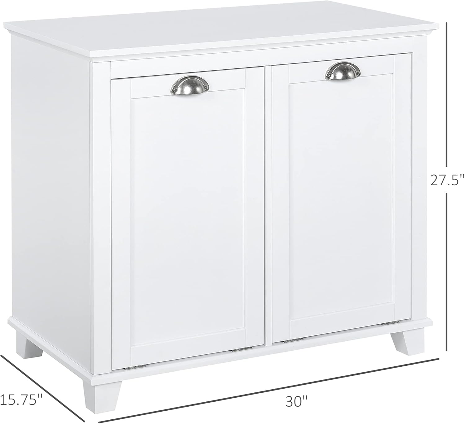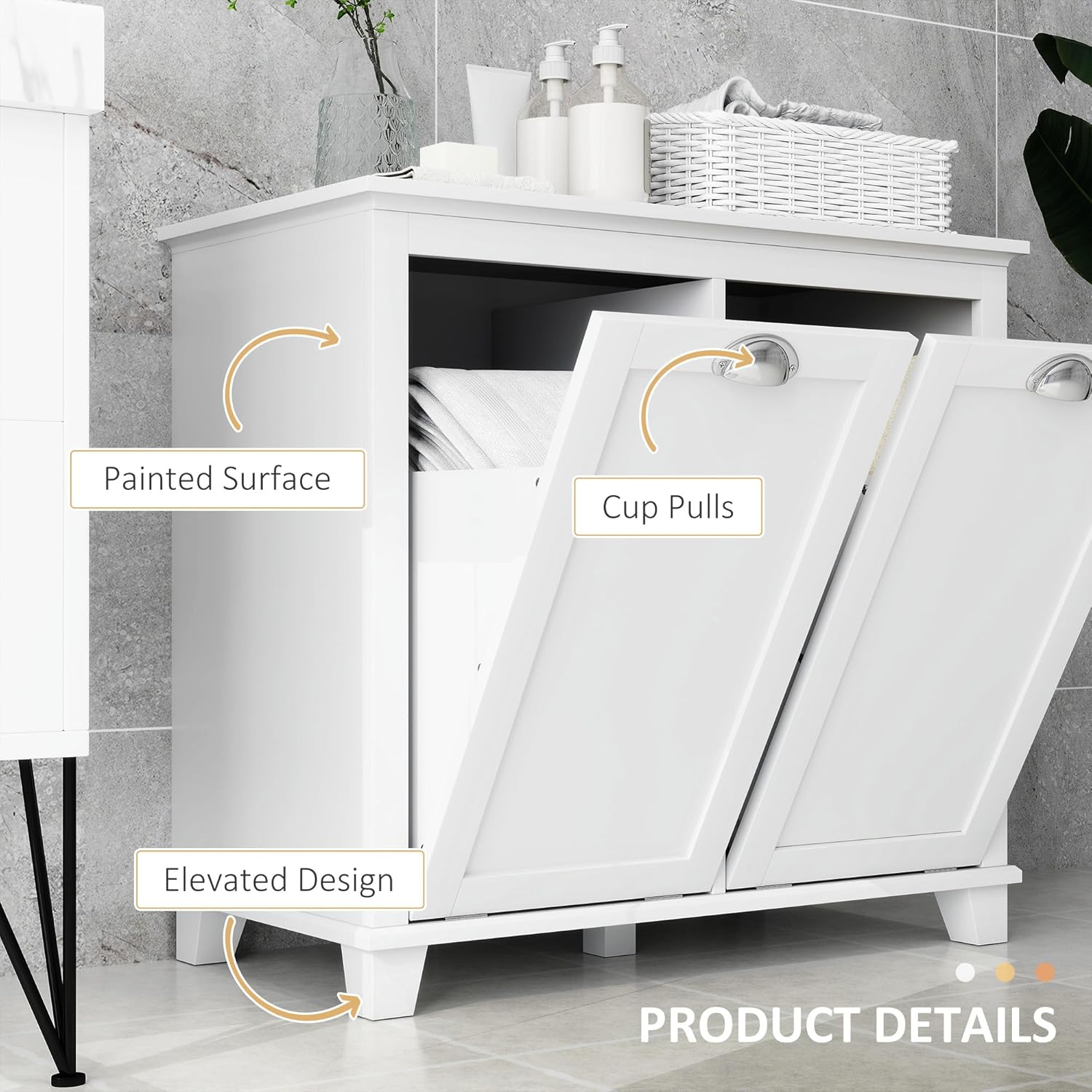 HOMCOM Dual Tilt Out Laundry Hamper Cabinet, Bathroom Storage Cabinet with 2-Compartment Hamper, Modern Bathroom Floor Cabinet for Washroom, White