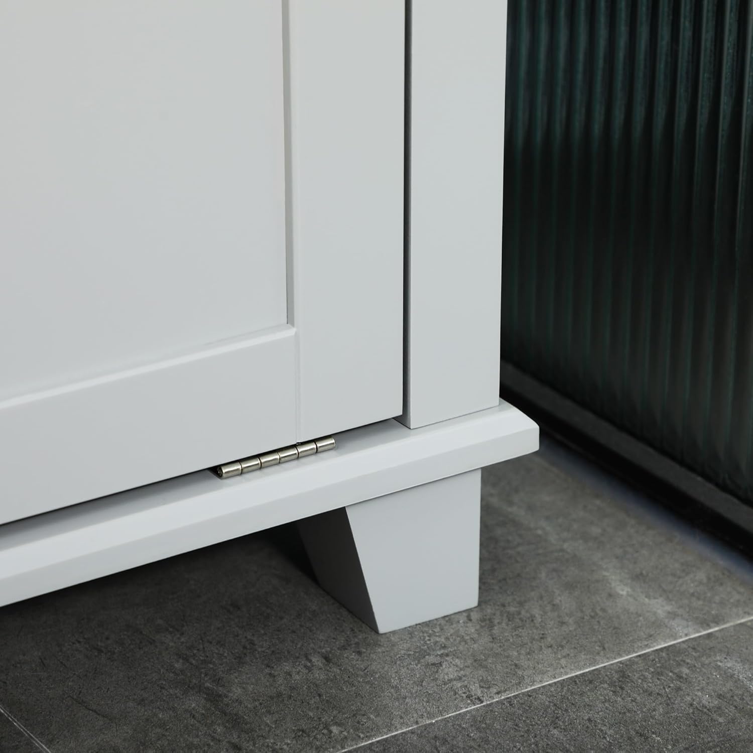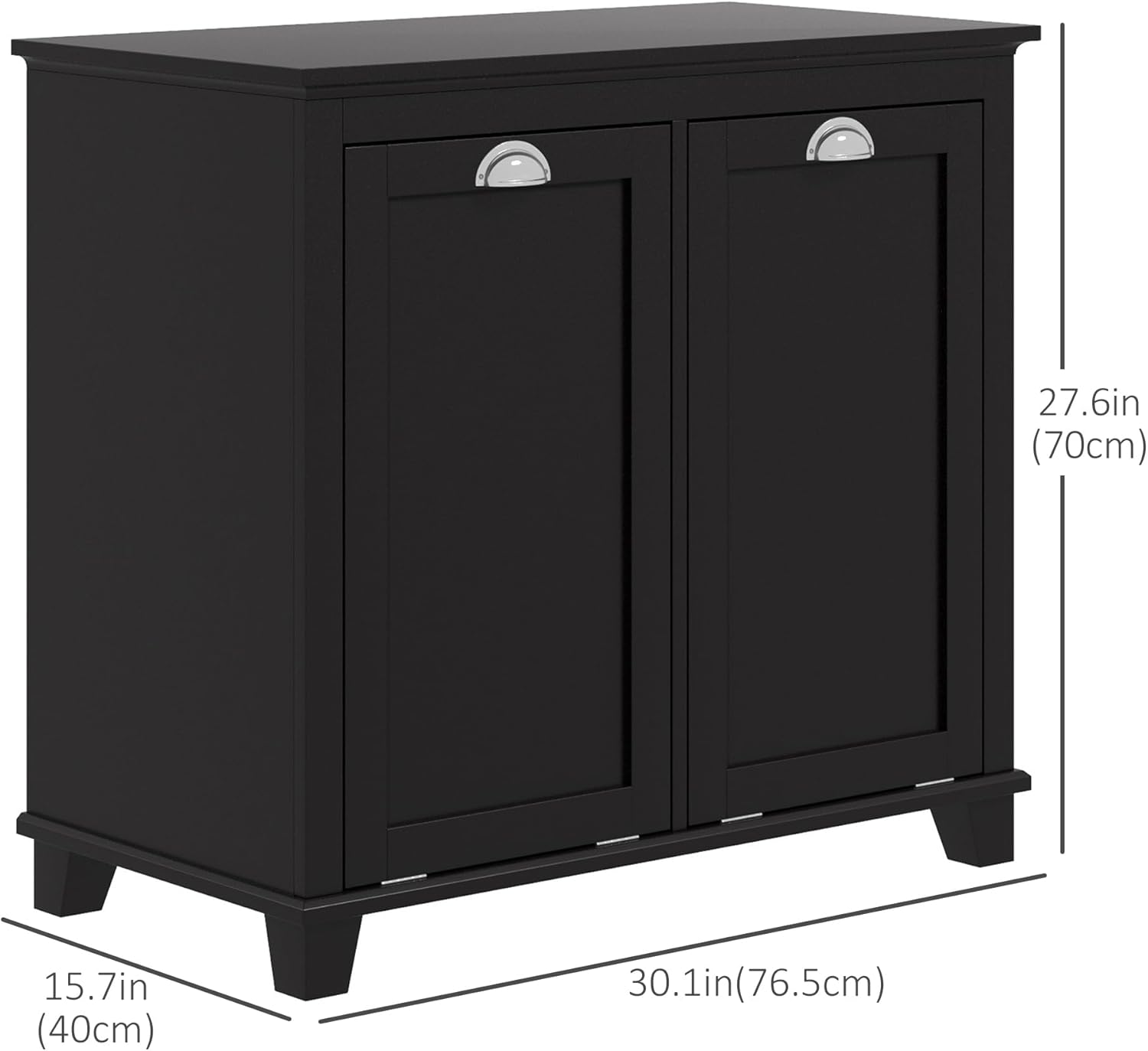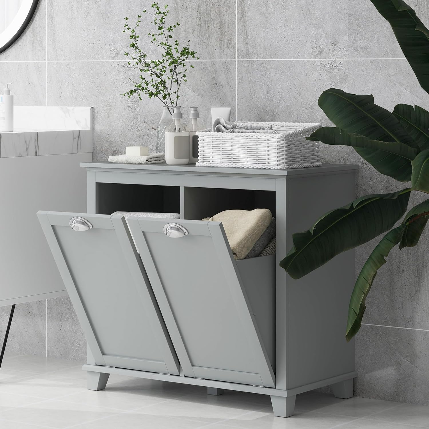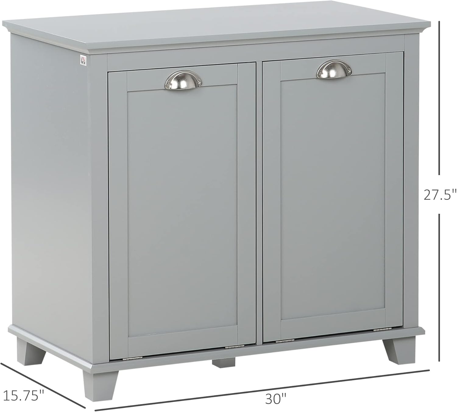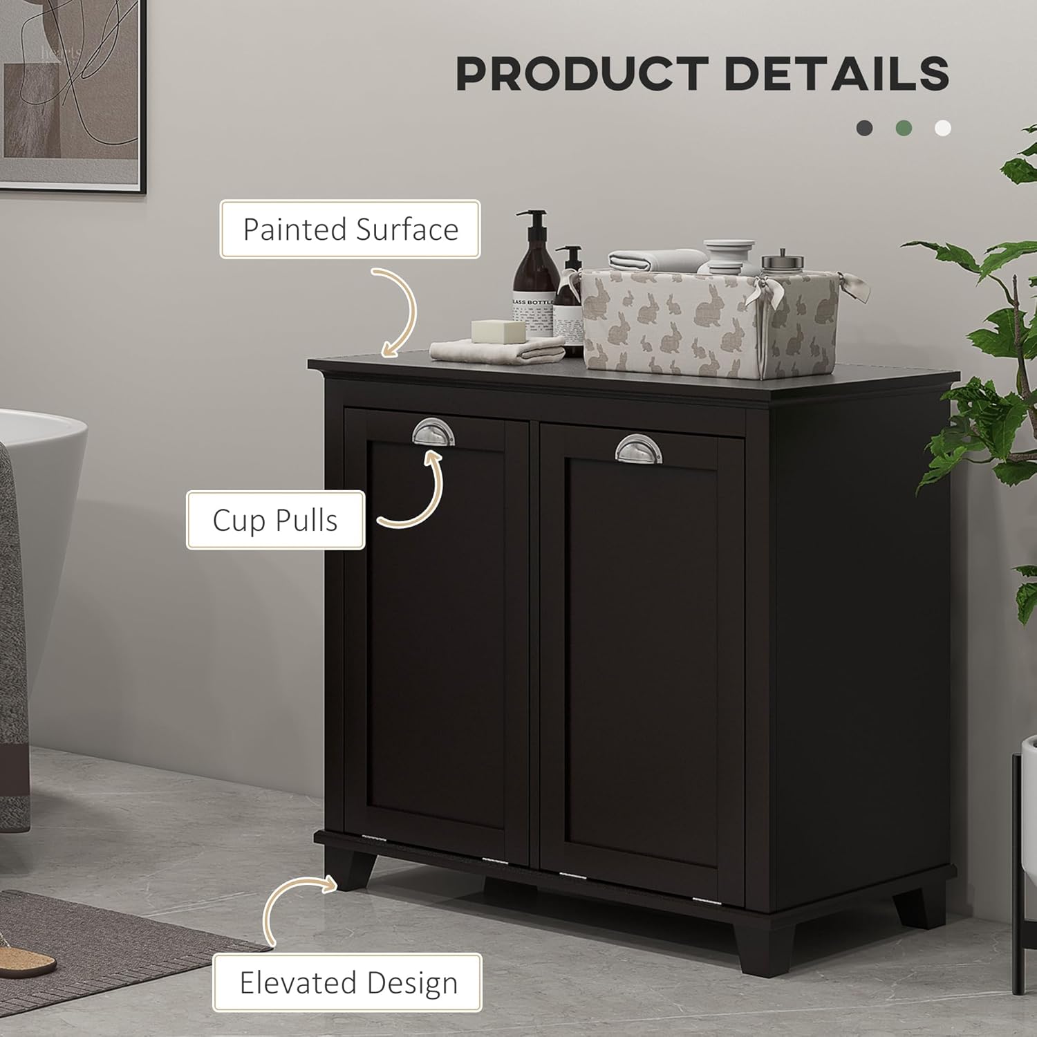 HOMCOM Dual Tilt Out Laundry Hamper Cabinet, Bathroom Storage Cabinet with 2-Compartment Hamper, Modern Bathroom Floor Cabinet for Washroom, White