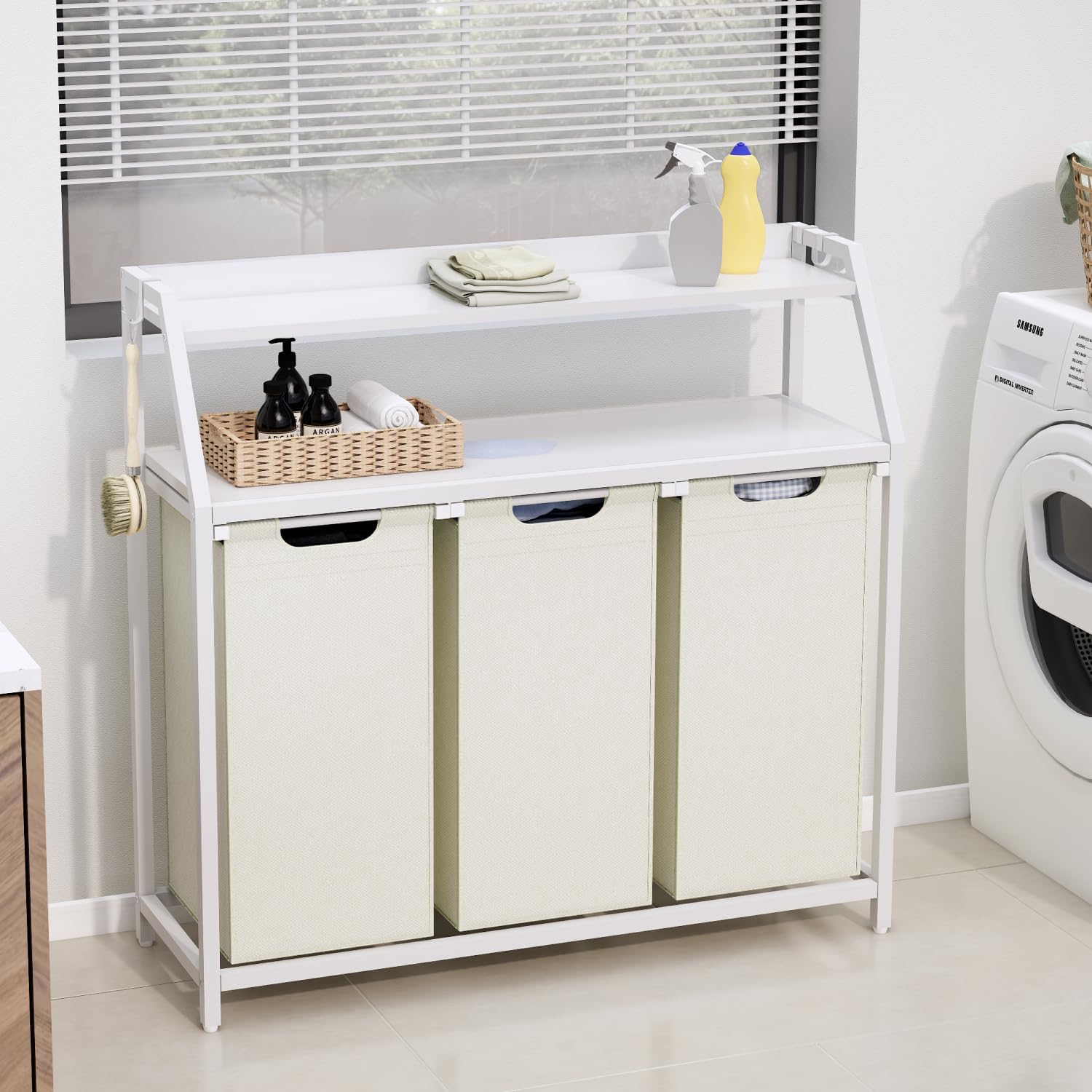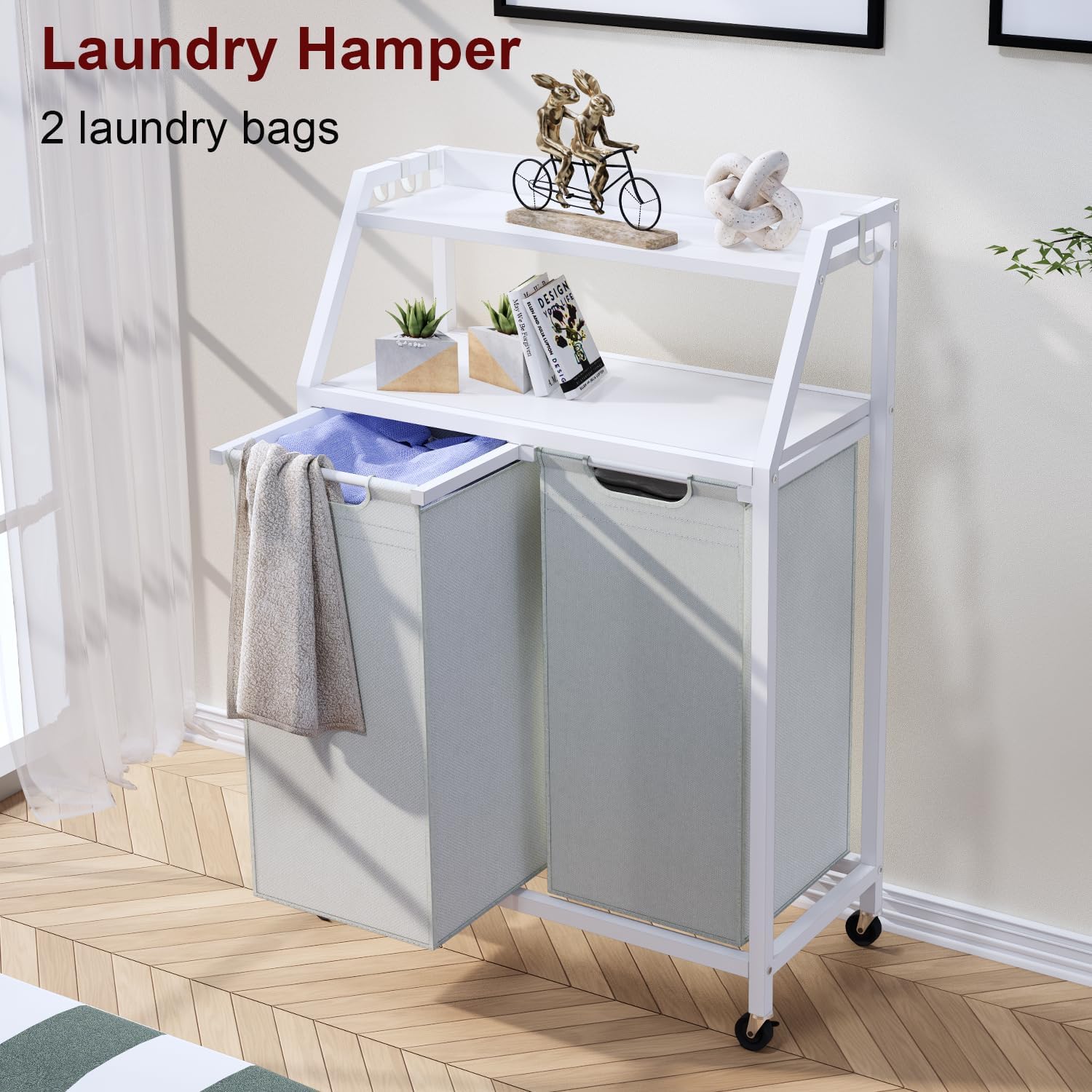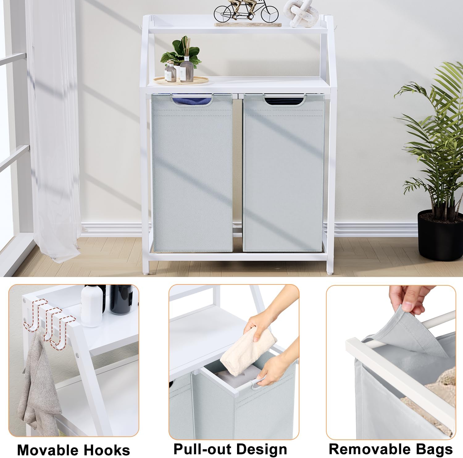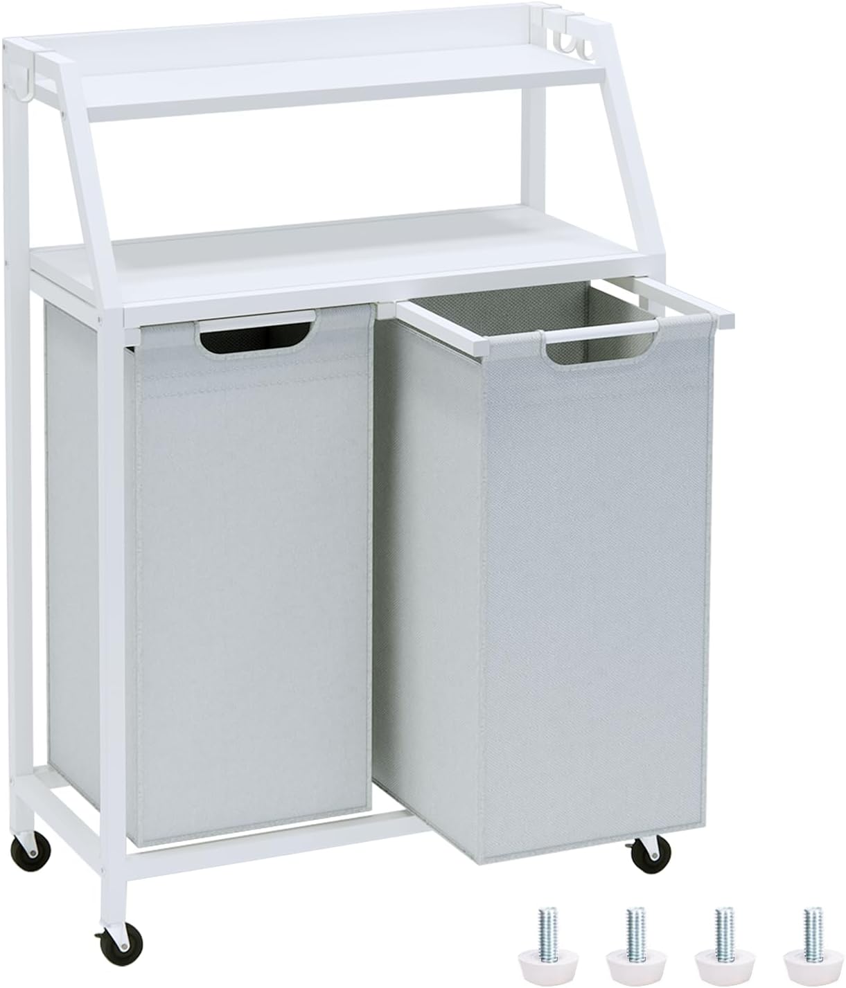 HOMCOM Dual Tilt Out Laundry Hamper Cabinet, Bathroom Storage Cabinet with 2-Compartment Hamper, Modern Bathroom Floor Cabinet for Washroom, White