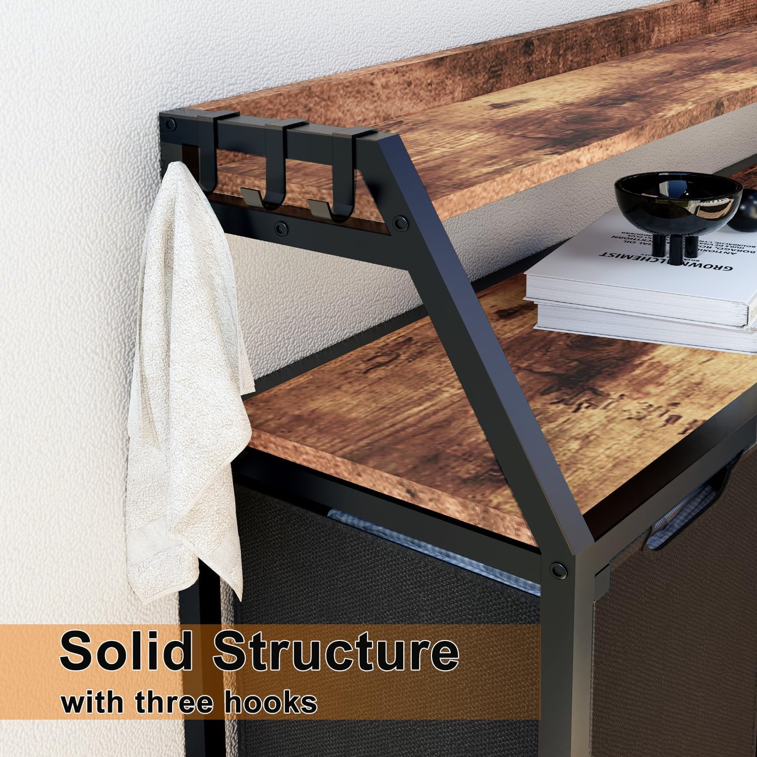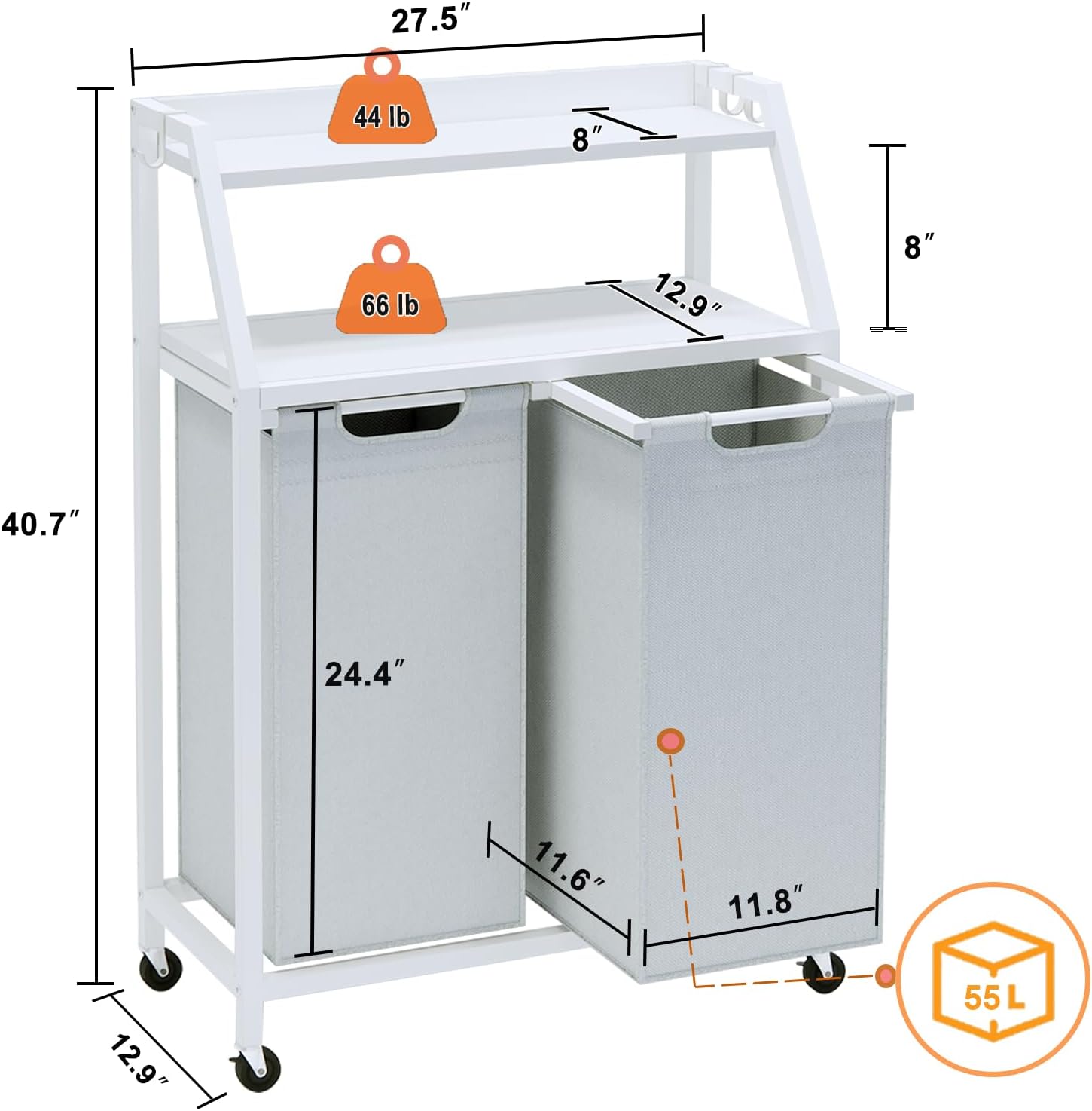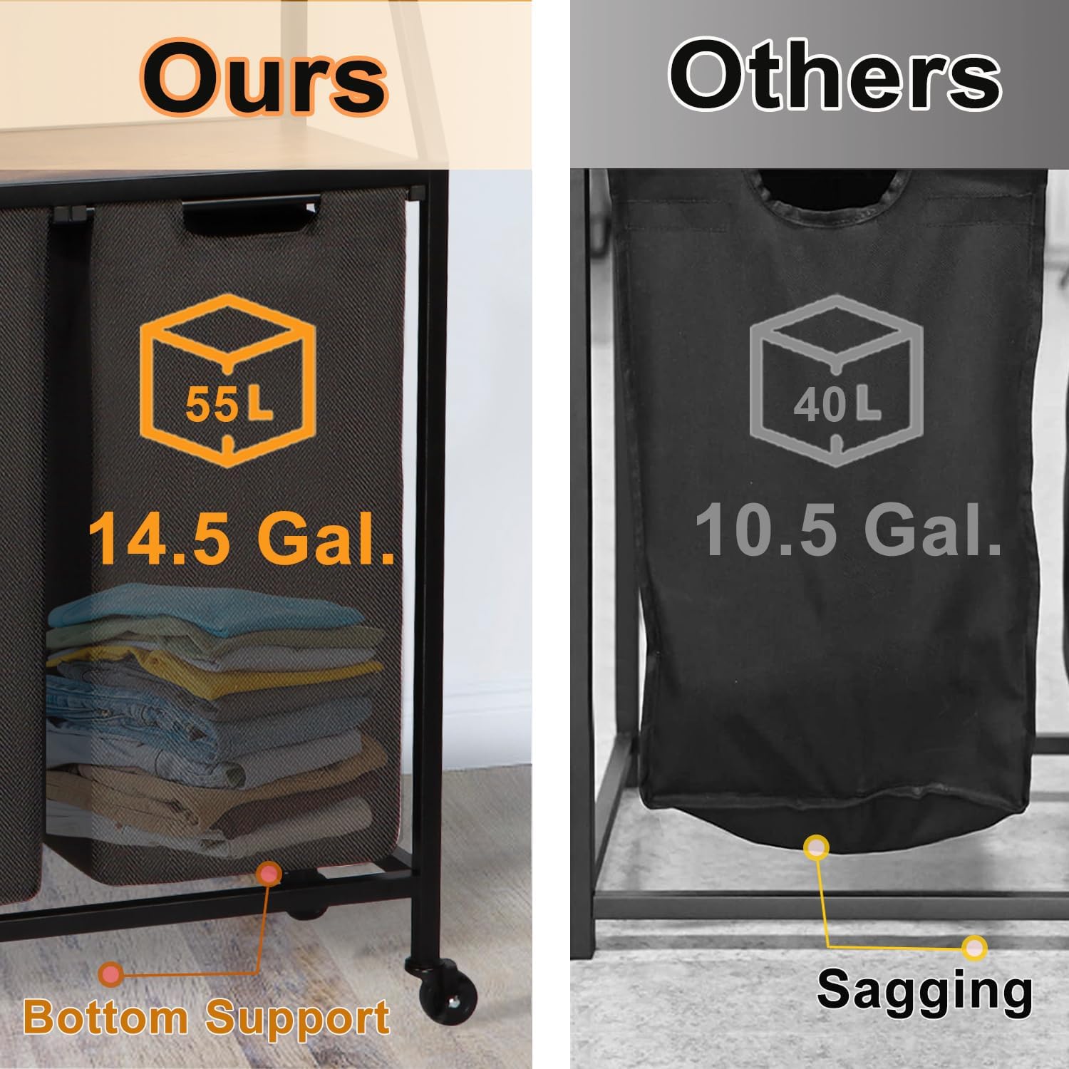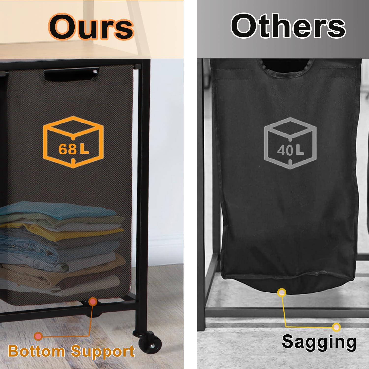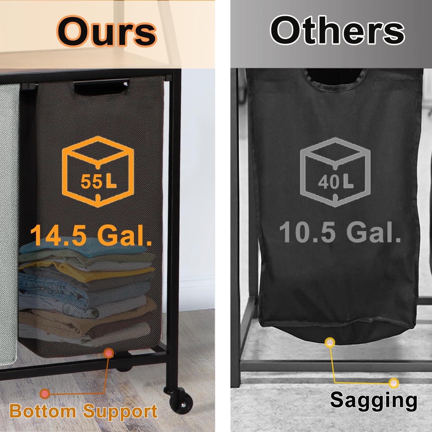 Laundry Hamper, Laundry Sorter with 4 Section, Rolling Basket with Wheels, 2 Shelves, 4 14.5 Gal, Pull-Out and Removable Oxford Fabric Bags for Laundry Room, Black and Rustic Brown