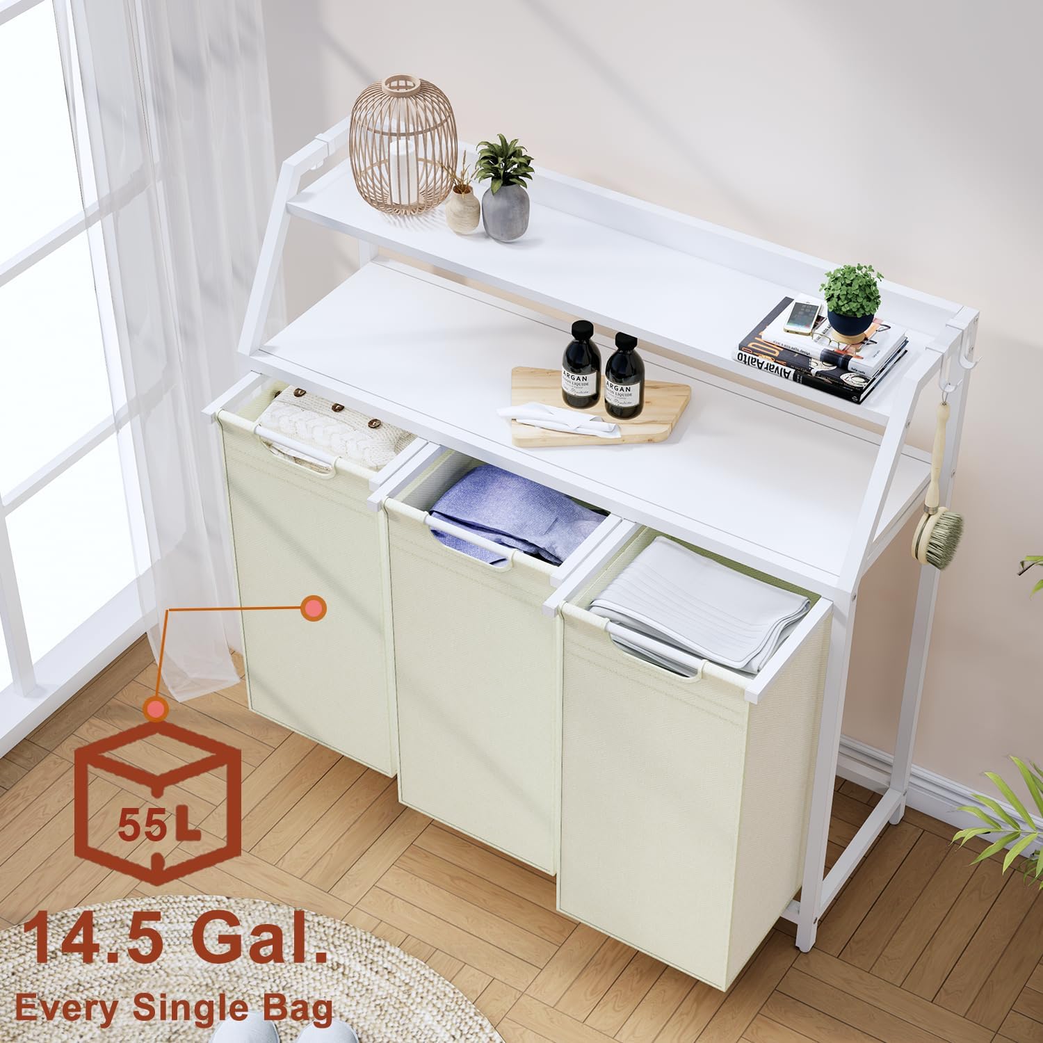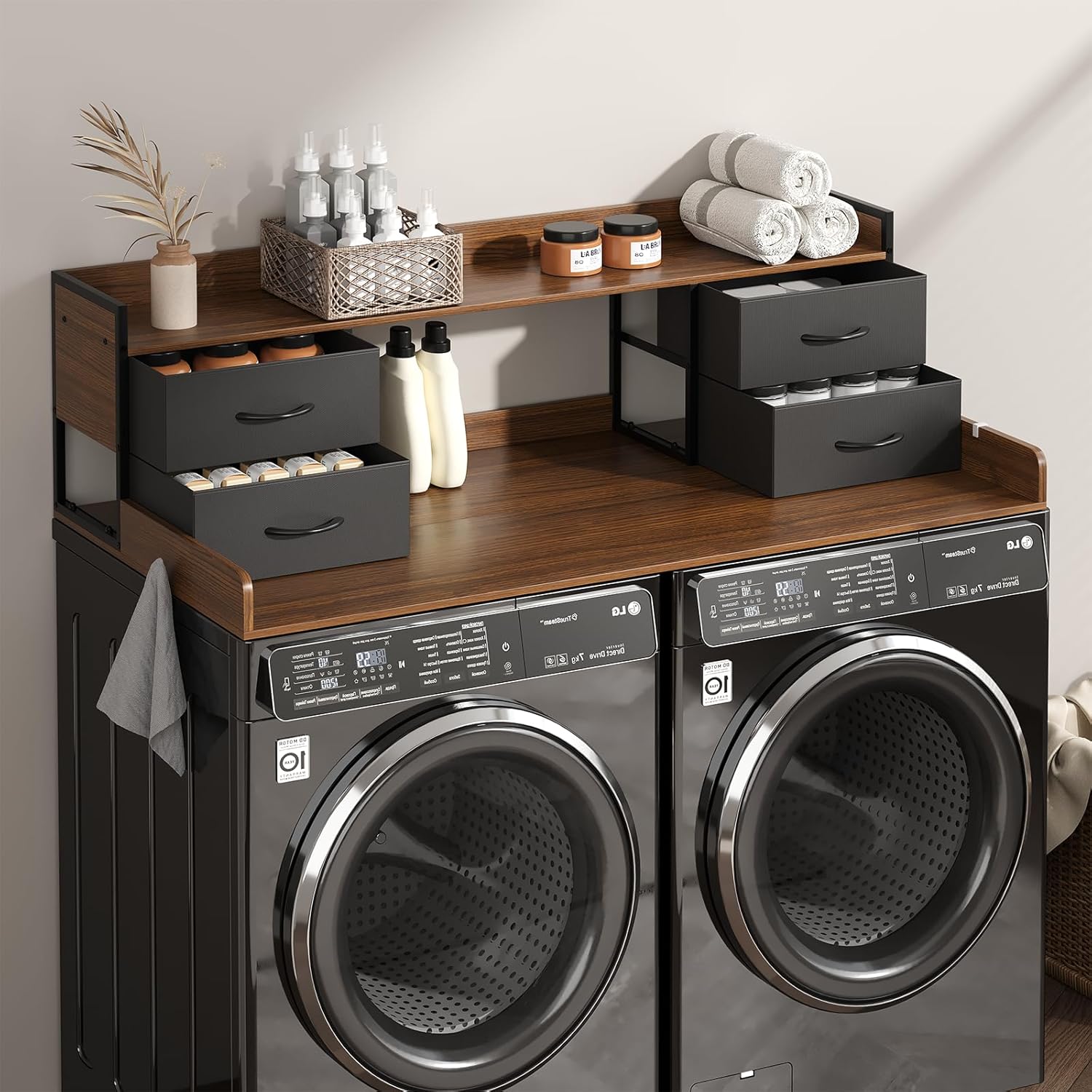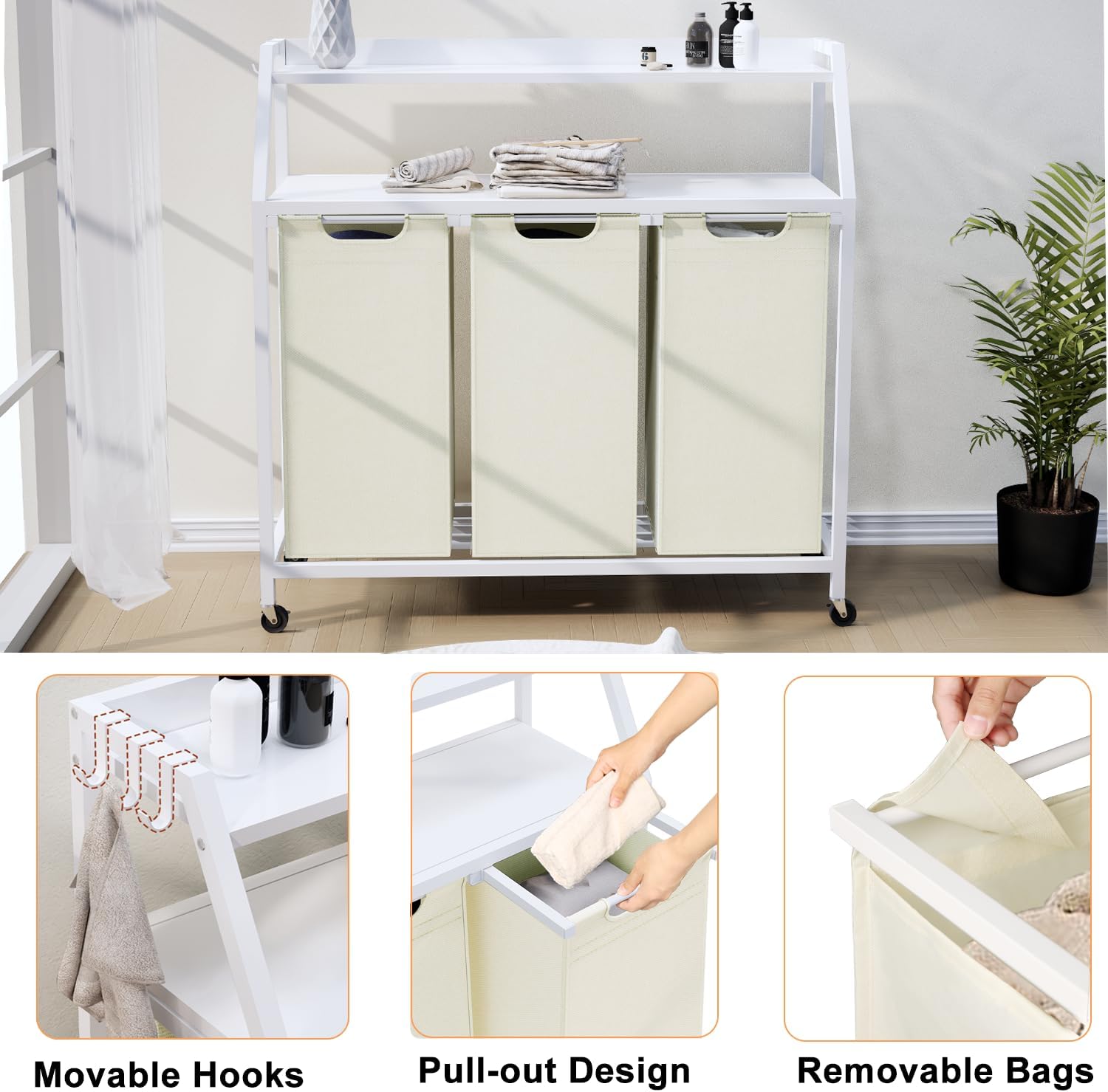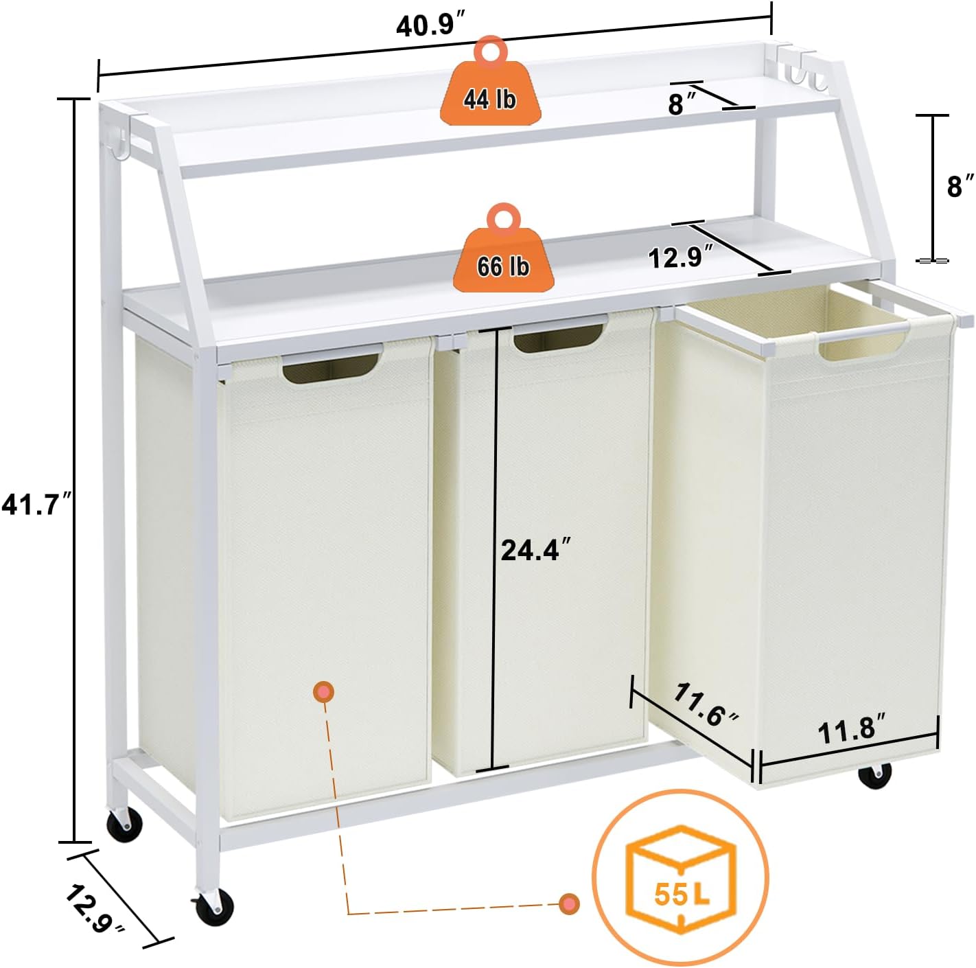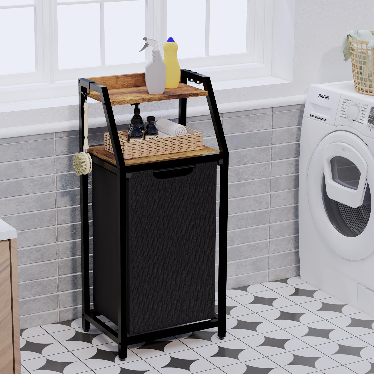 Laundry Hamper, Laundry Sorter with 4 Section, Rolling Basket with Wheels, 2 Shelves, 4 14.5 Gal, Pull-Out and Removable Oxford Fabric Bags for Laundry Room, Black and Rustic Brown