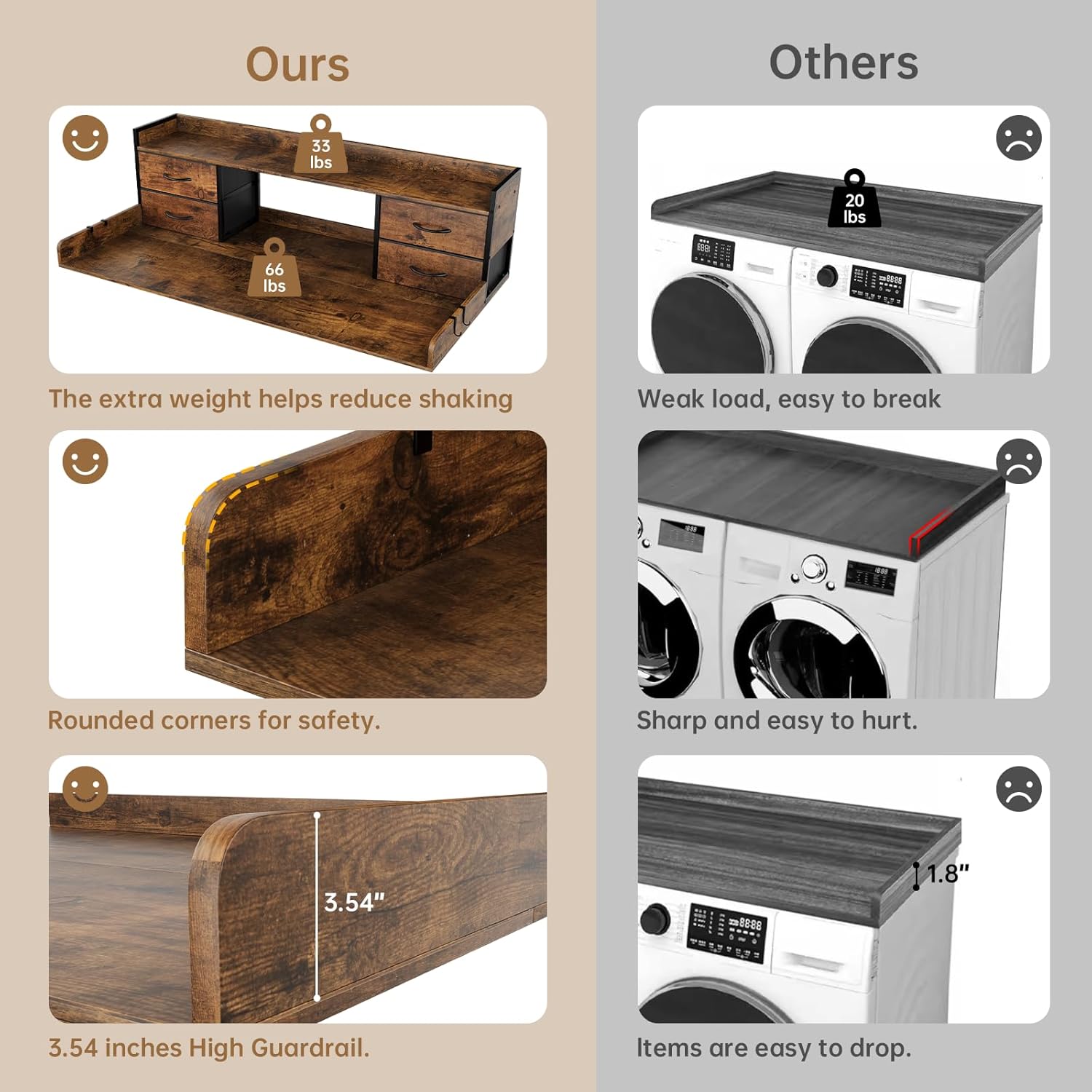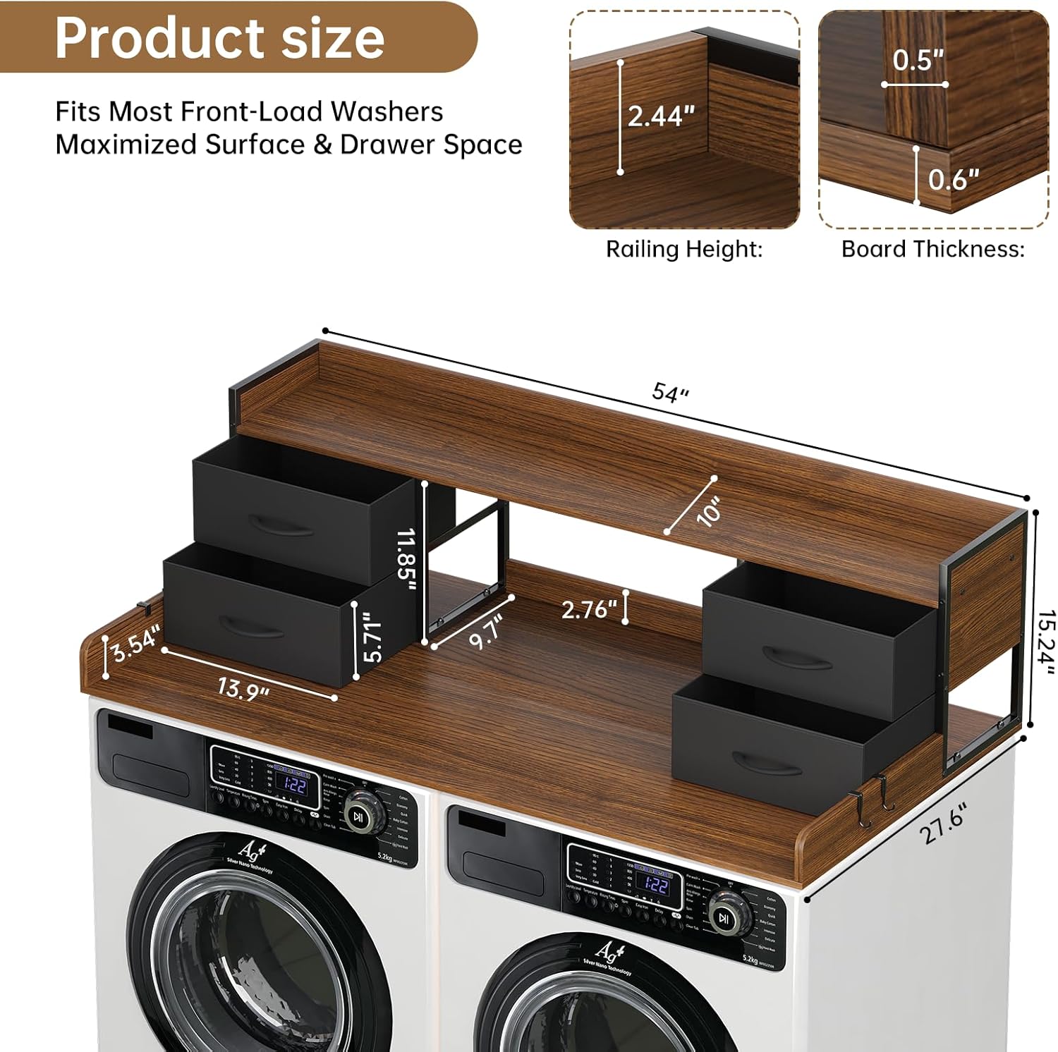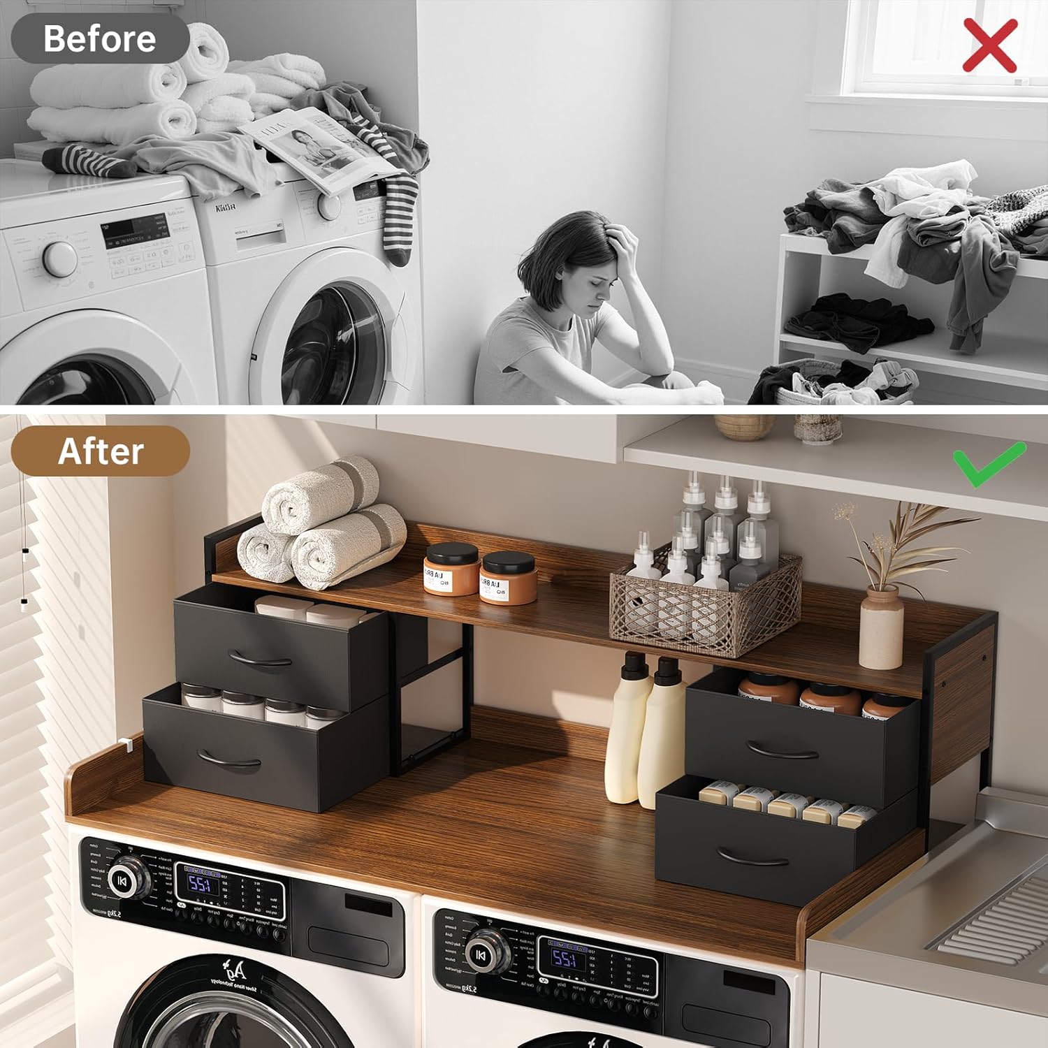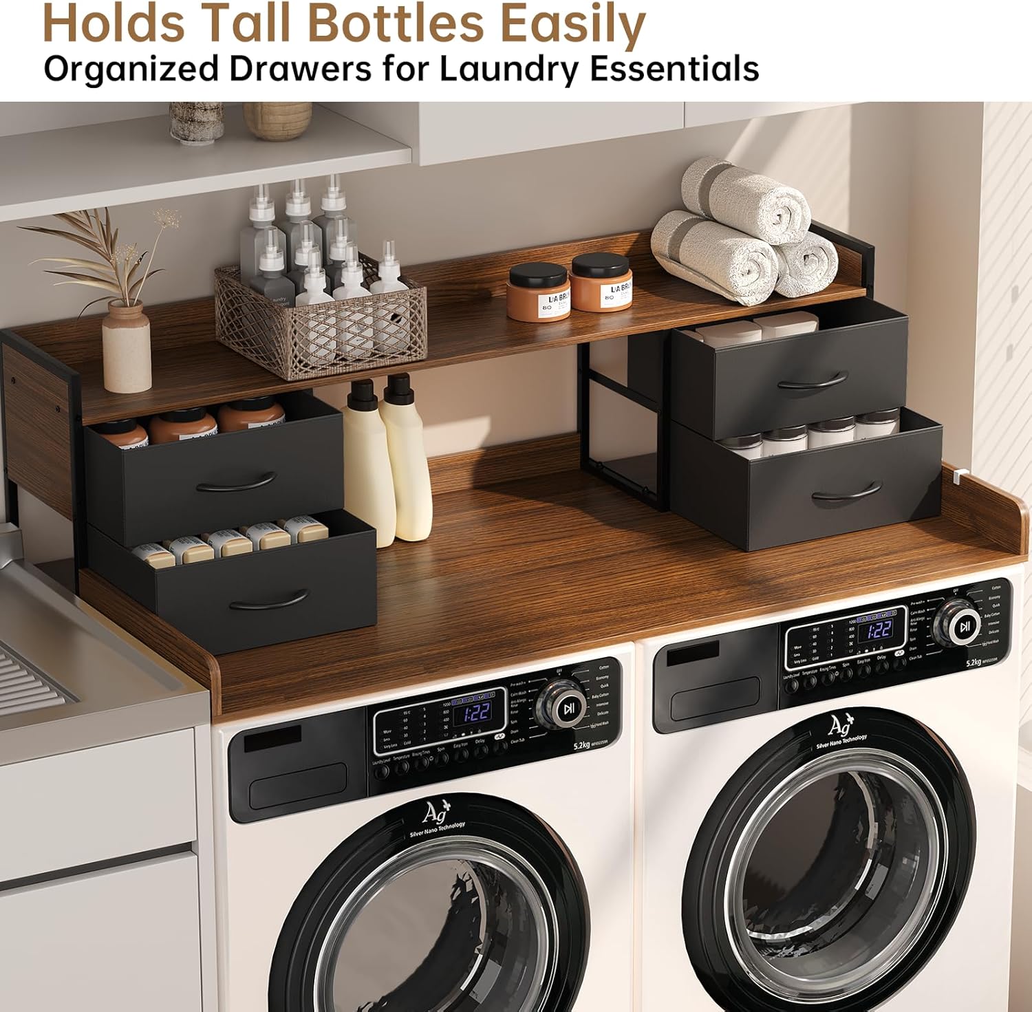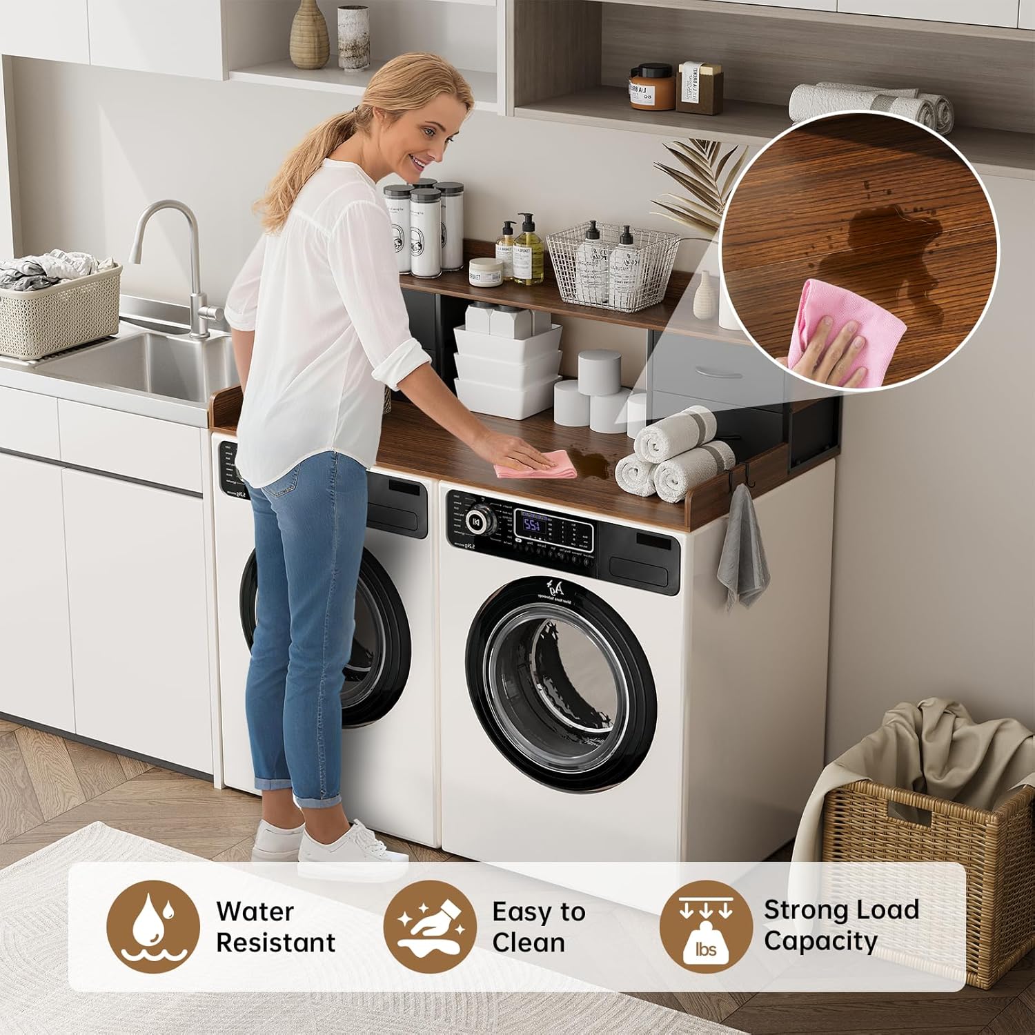 Laundry Hamper, Laundry Sorter with 4 Section, Rolling Basket with Wheels, 2 Shelves, 4 14.5 Gal, Pull-Out and Removable Oxford Fabric Bags for Laundry Room, Black and Rustic Brown