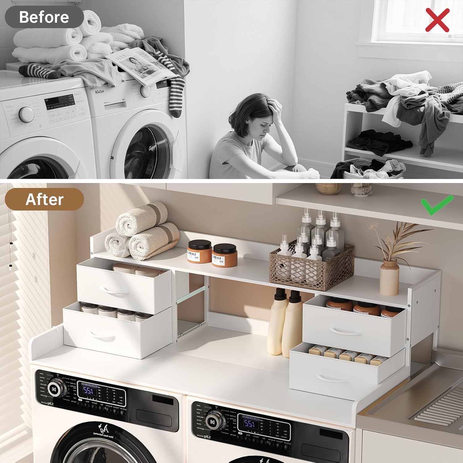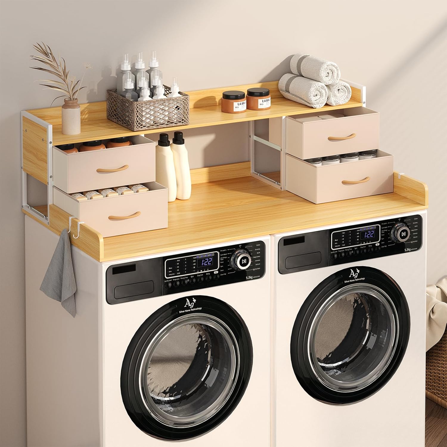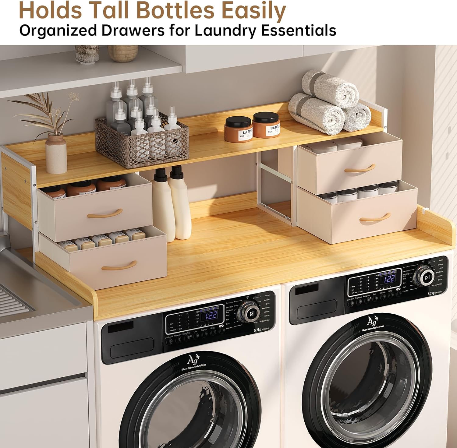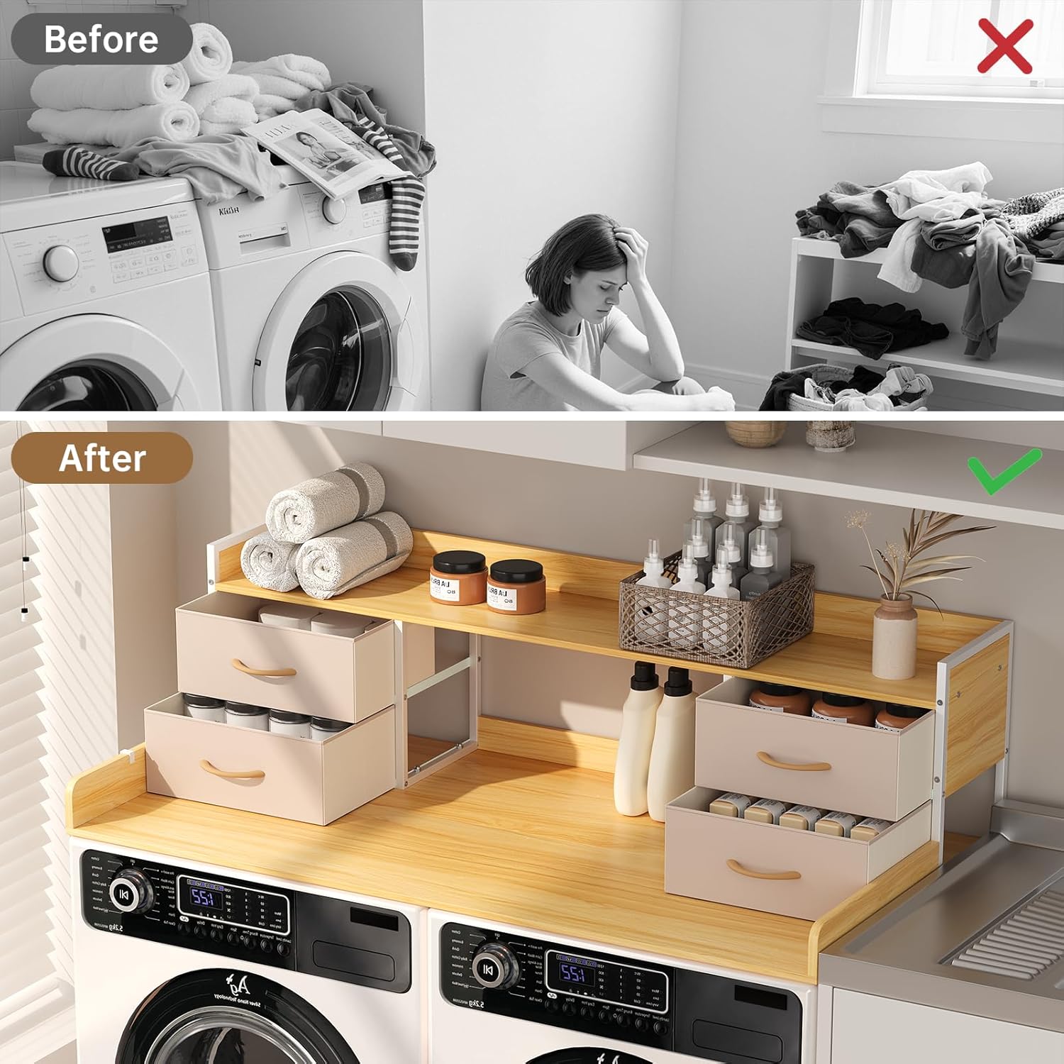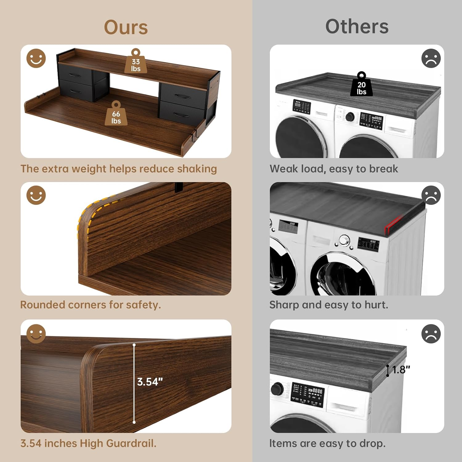 Laundry Hamper, Laundry Sorter with 4 Section, Rolling Basket with Wheels, 2 Shelves, 4 14.5 Gal, Pull-Out and Removable Oxford Fabric Bags for Laundry Room, Black and Rustic Brown