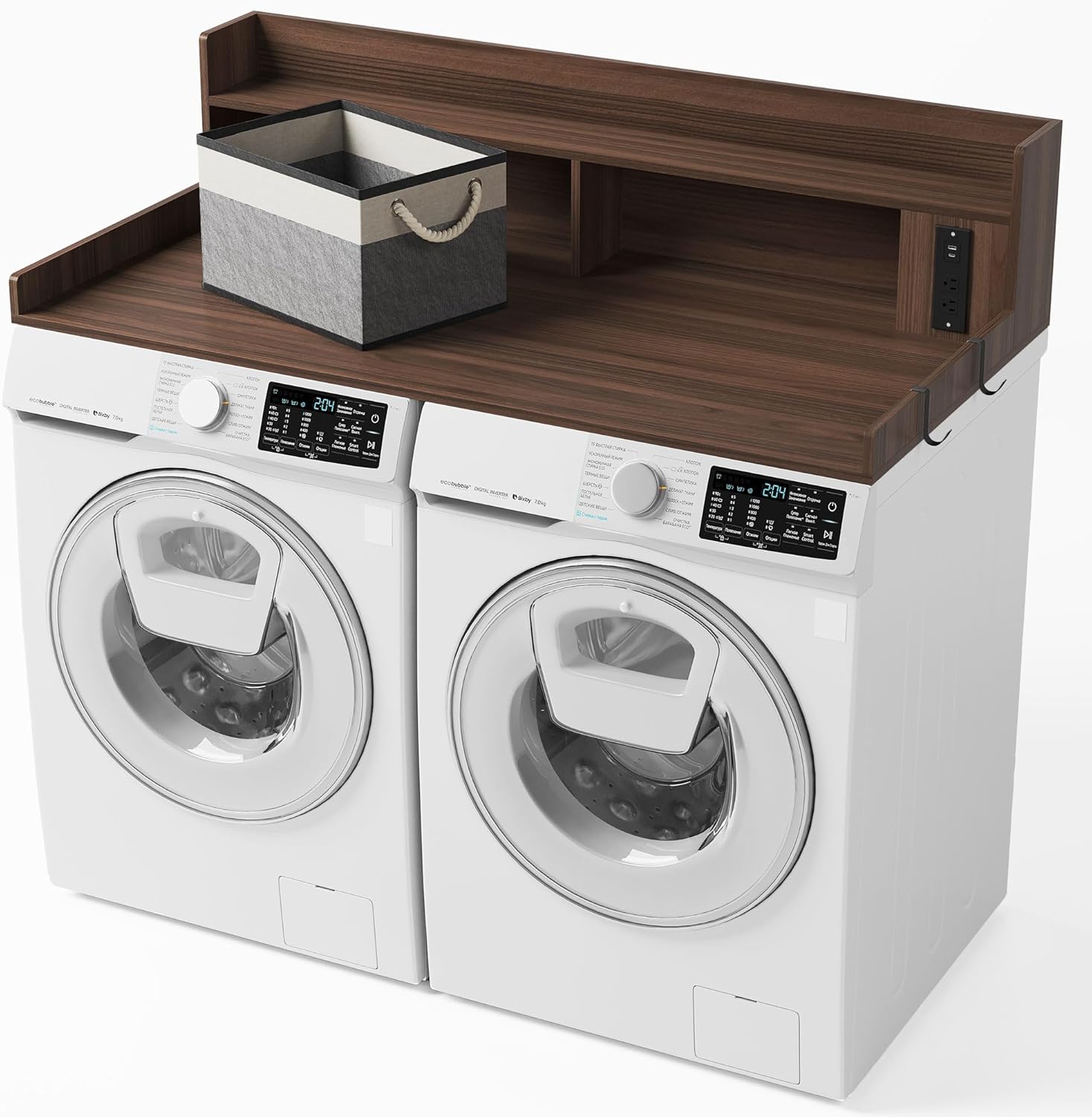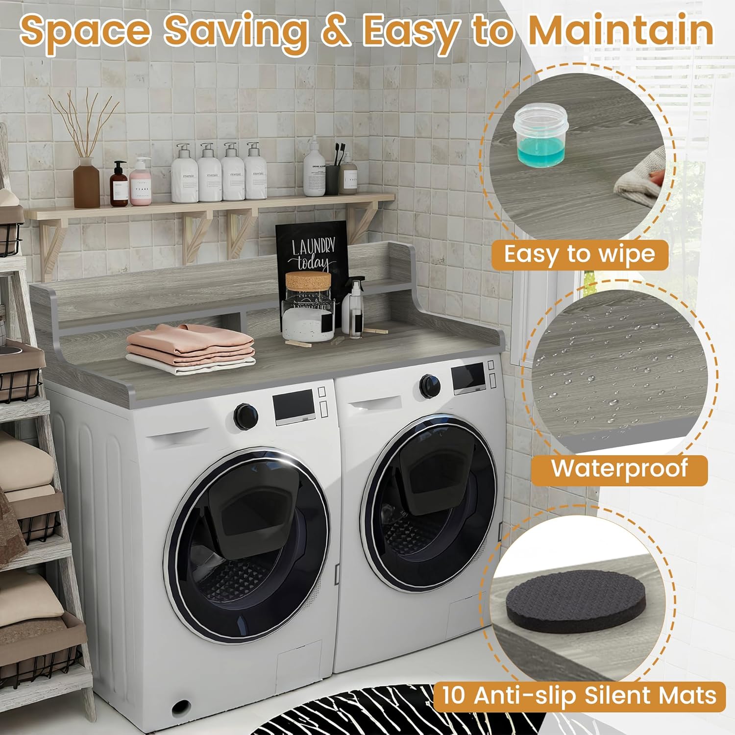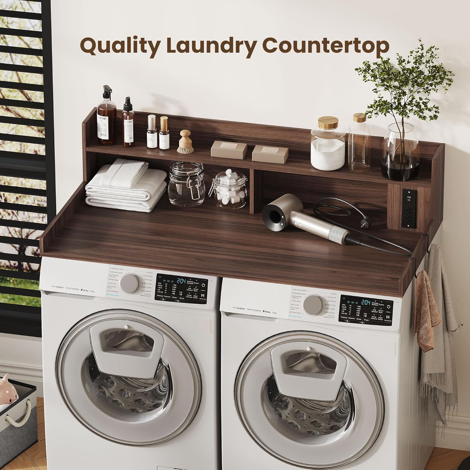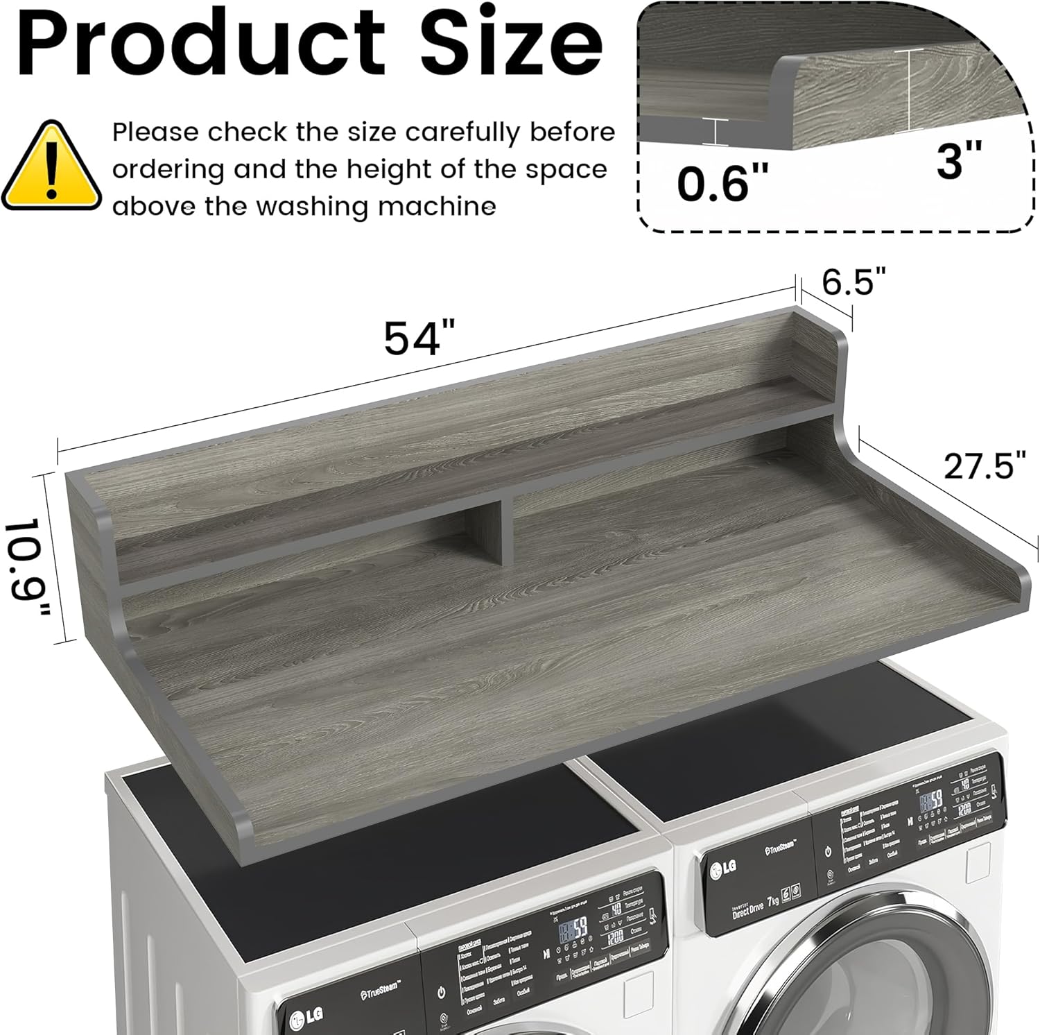 2-Tier Washer Dryer Countertop with 3" H Raised Edge, 54" W x 27.5" D Laundry Countertop Cover with Non-Slip Pad, Washer and Dryer Topper for All Front-loaded, Easy to Install(Walnut)