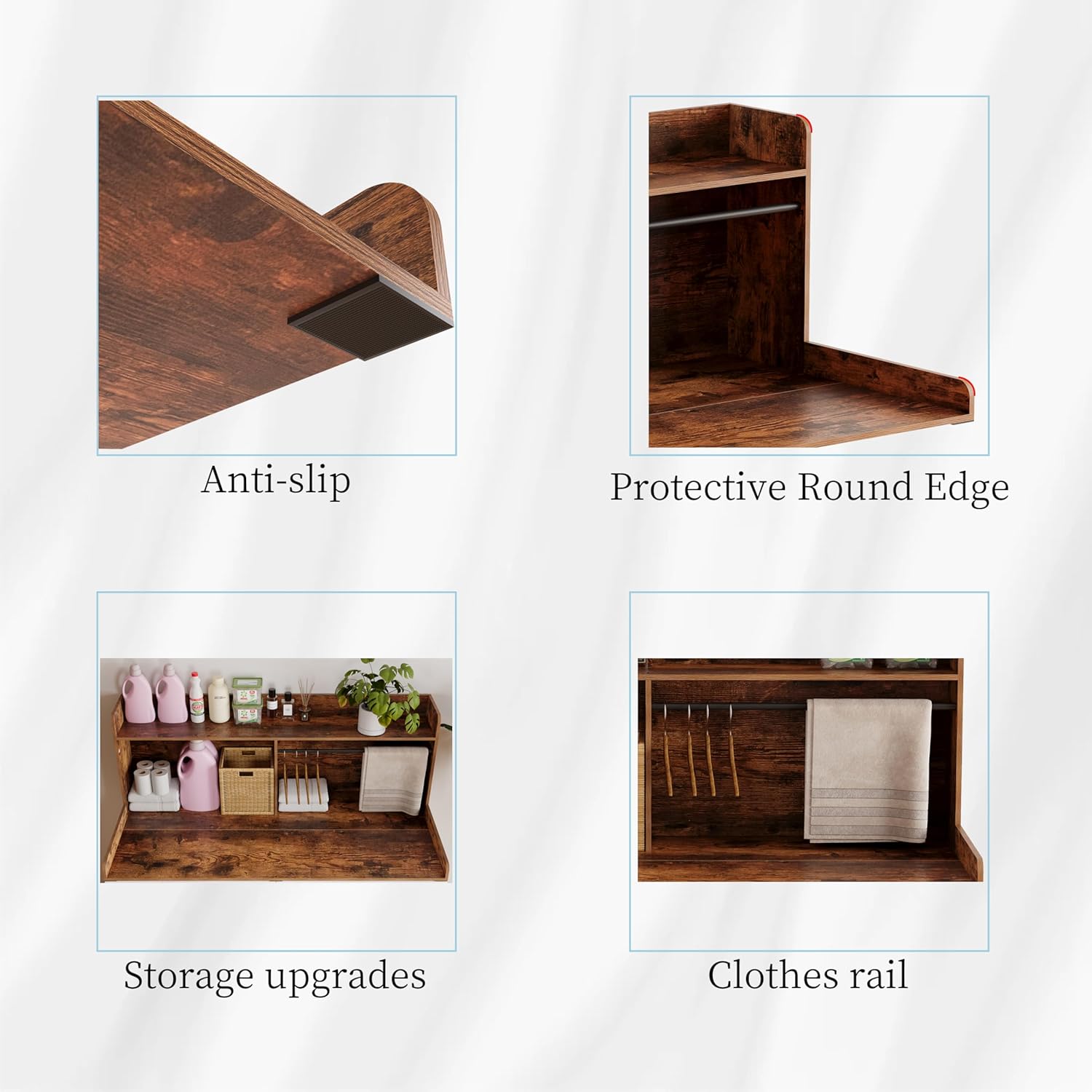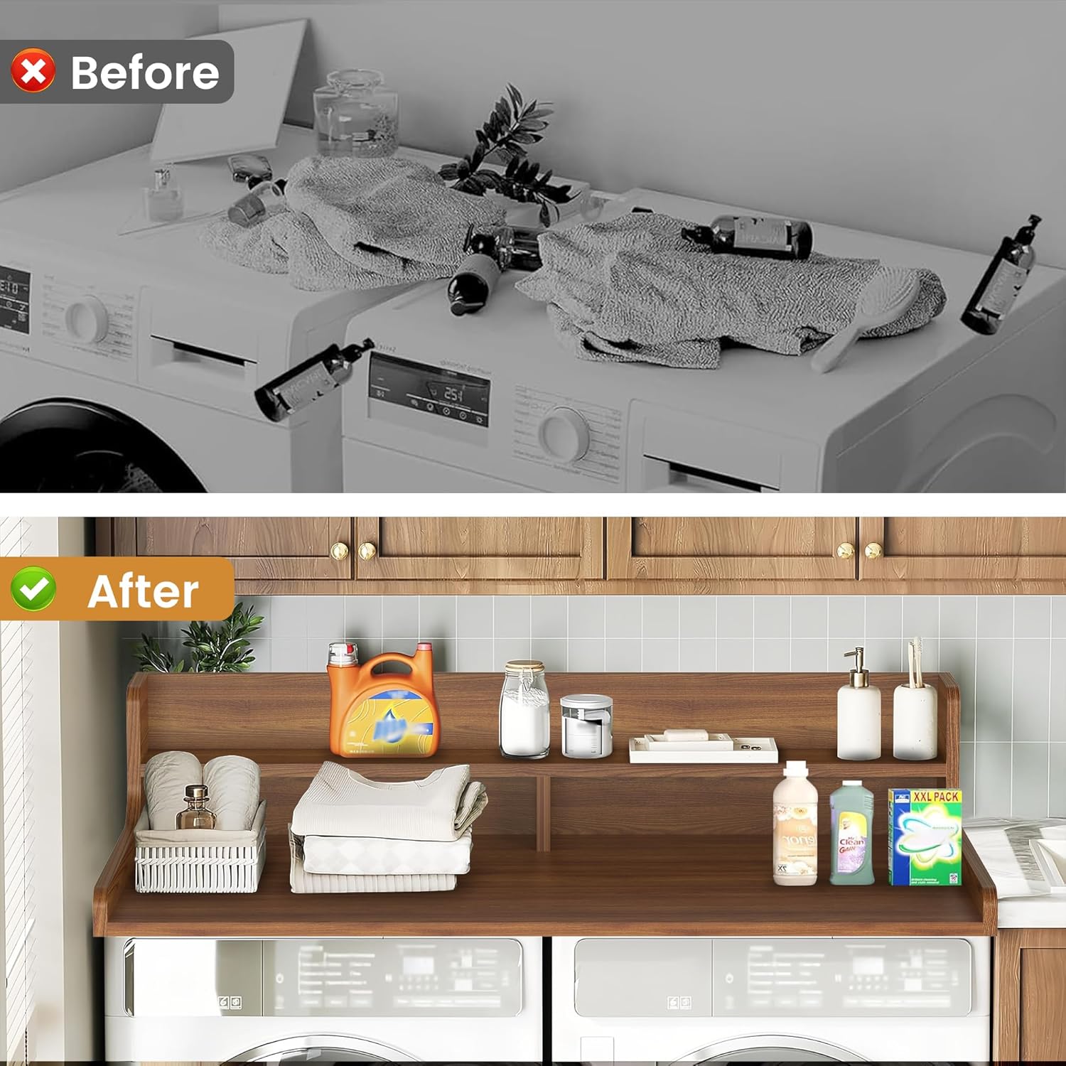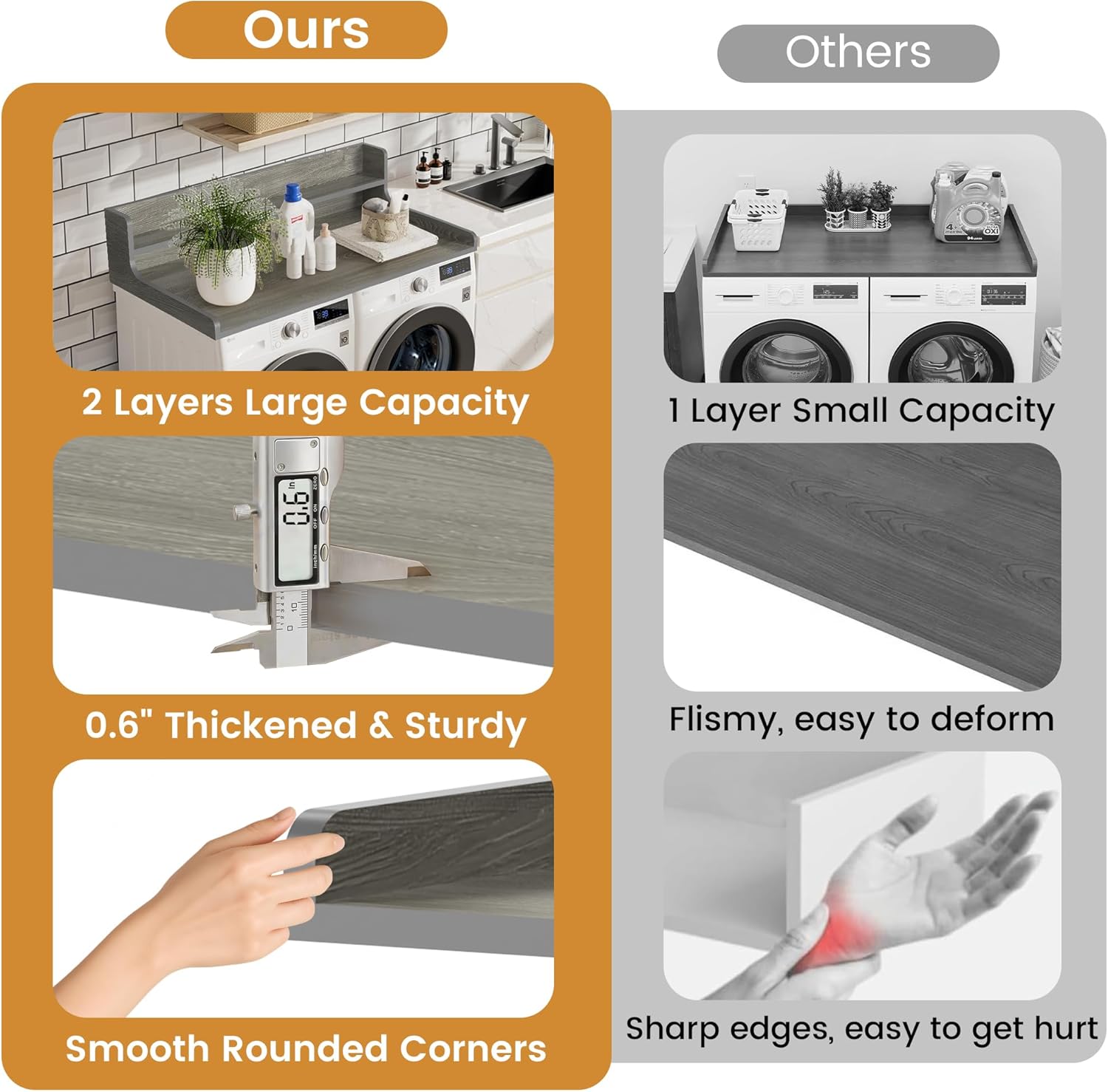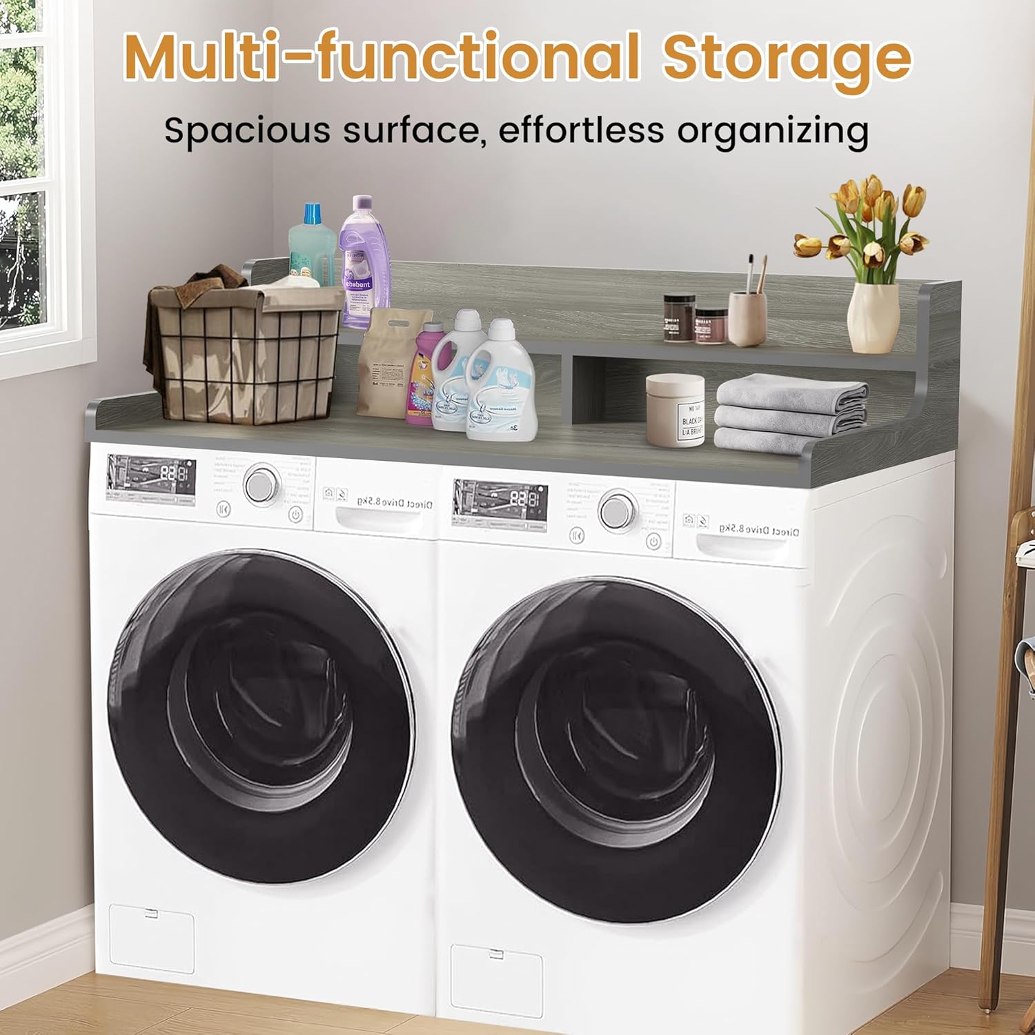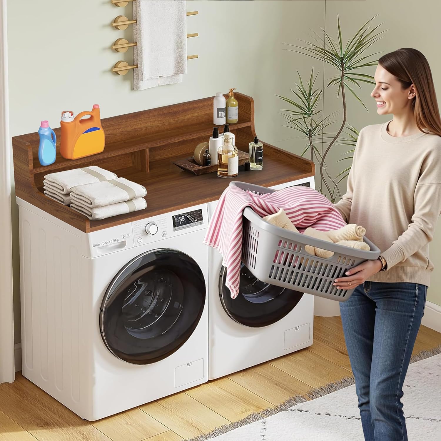 2-Tier Washer Dryer Countertop with 3" H Raised Edge, 54" W x 27.5" D Laundry Countertop Cover with Non-Slip Pad, Washer and Dryer Topper for All Front-loaded, Easy to Install(Walnut)