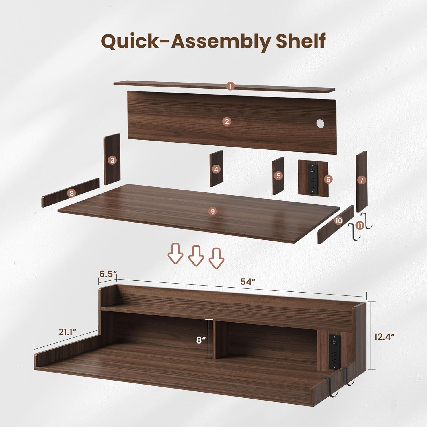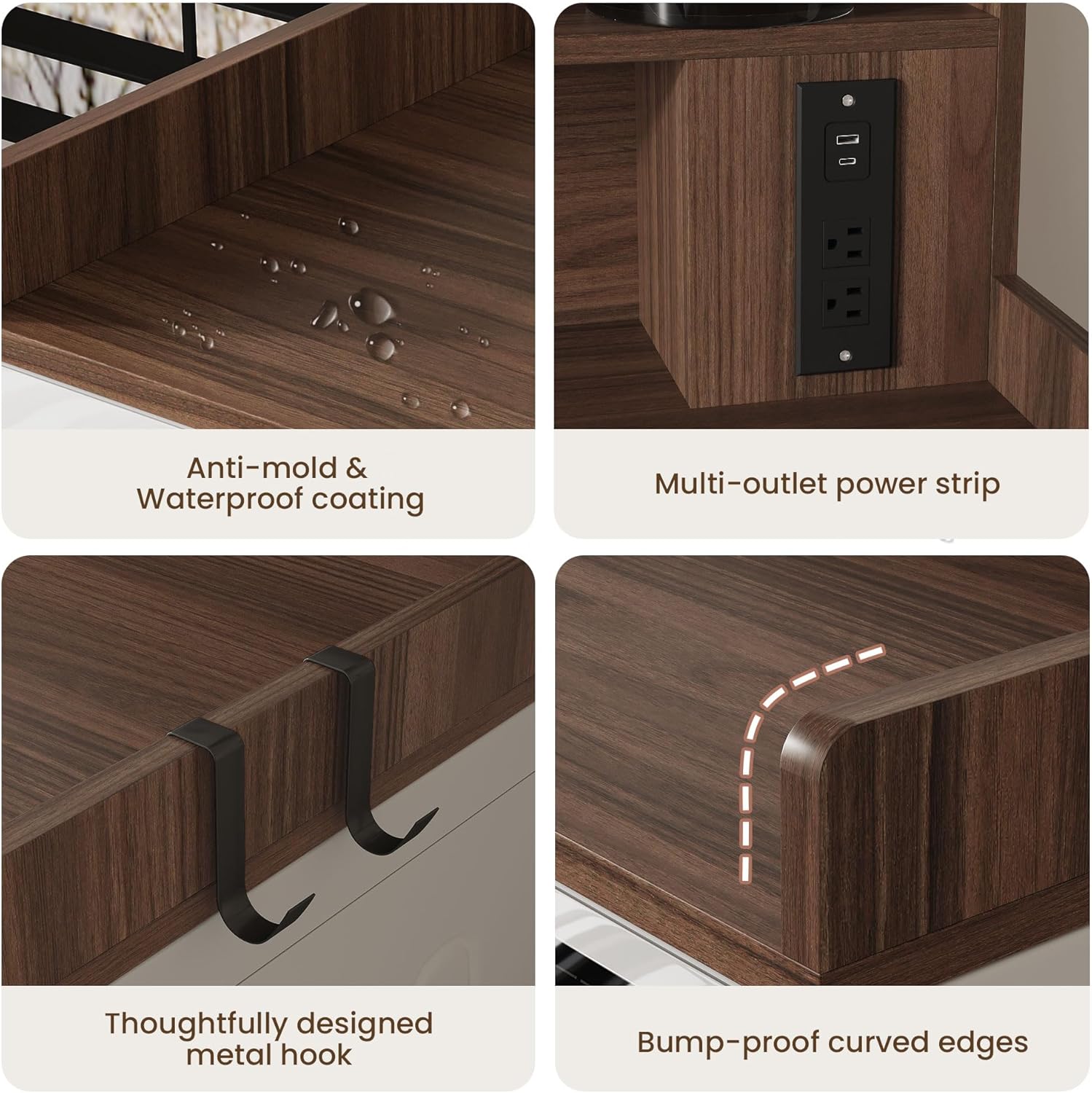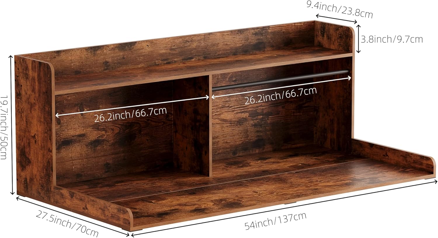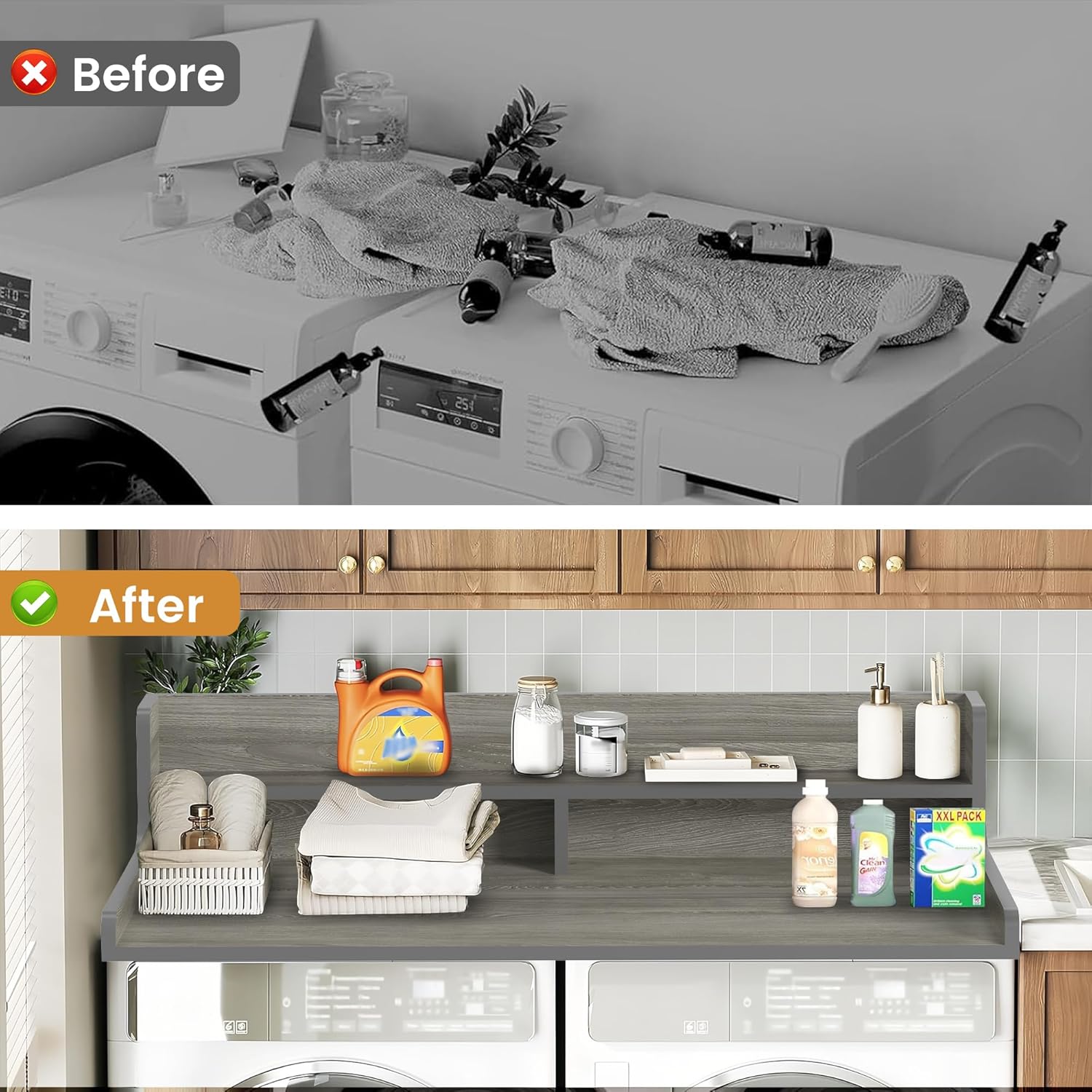 2-Tier Washer Dryer Countertop with 3" H Raised Edge, 54" W x 27.5" D Laundry Countertop Cover with Non-Slip Pad, Washer and Dryer Topper for All Front-loaded, Easy to Install(Walnut)