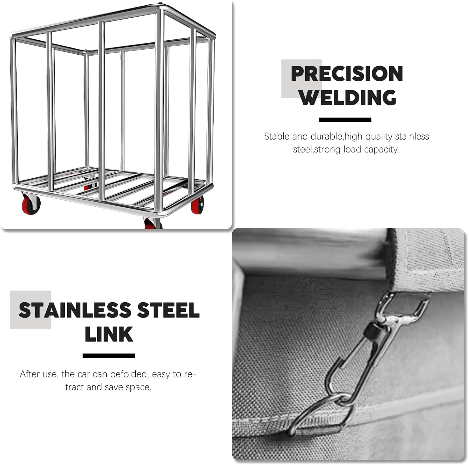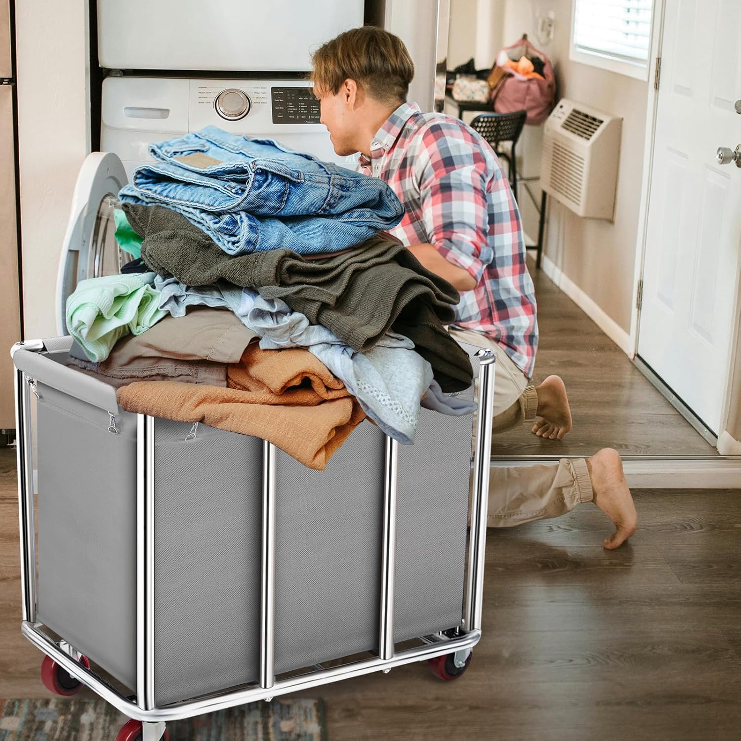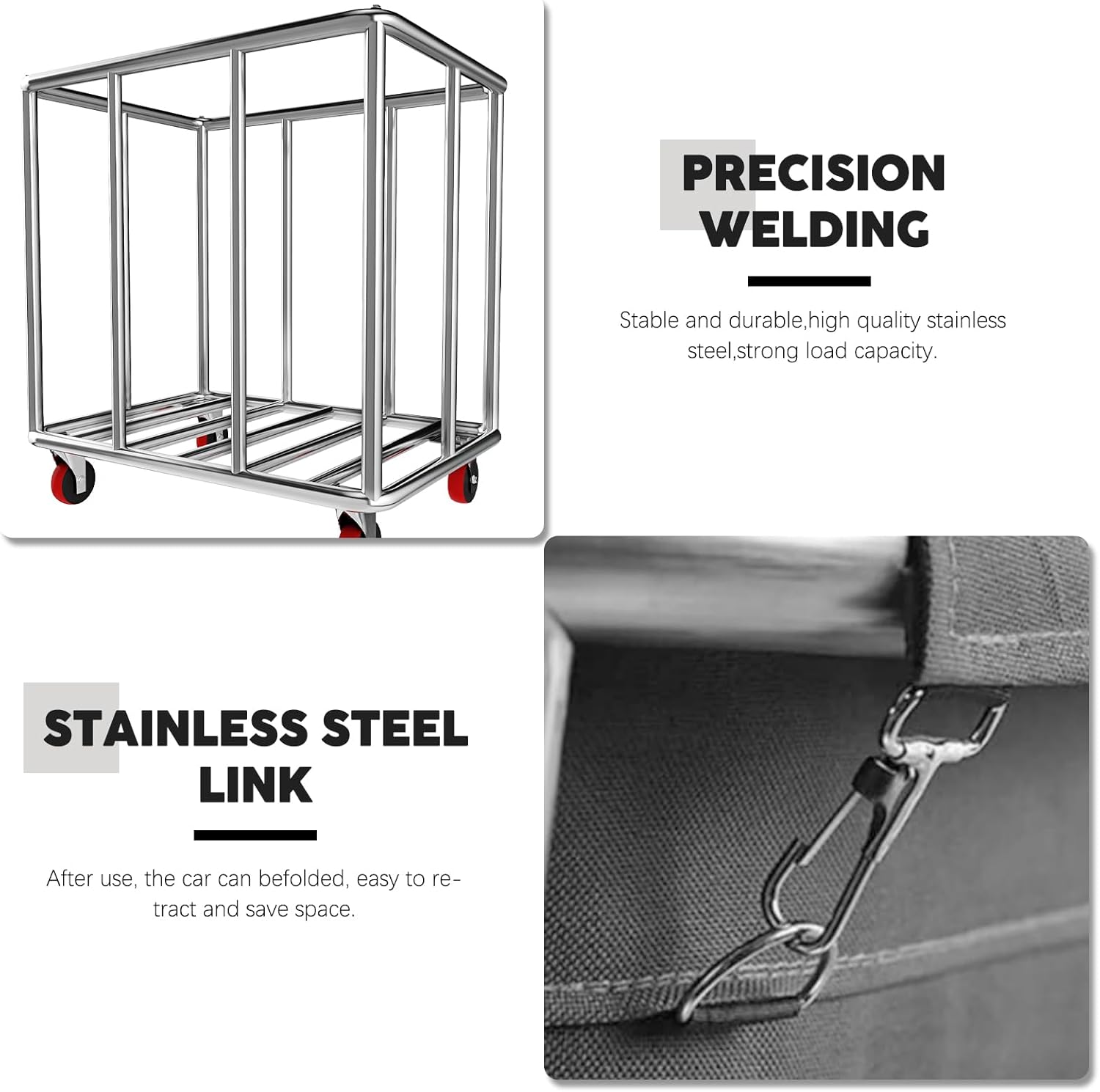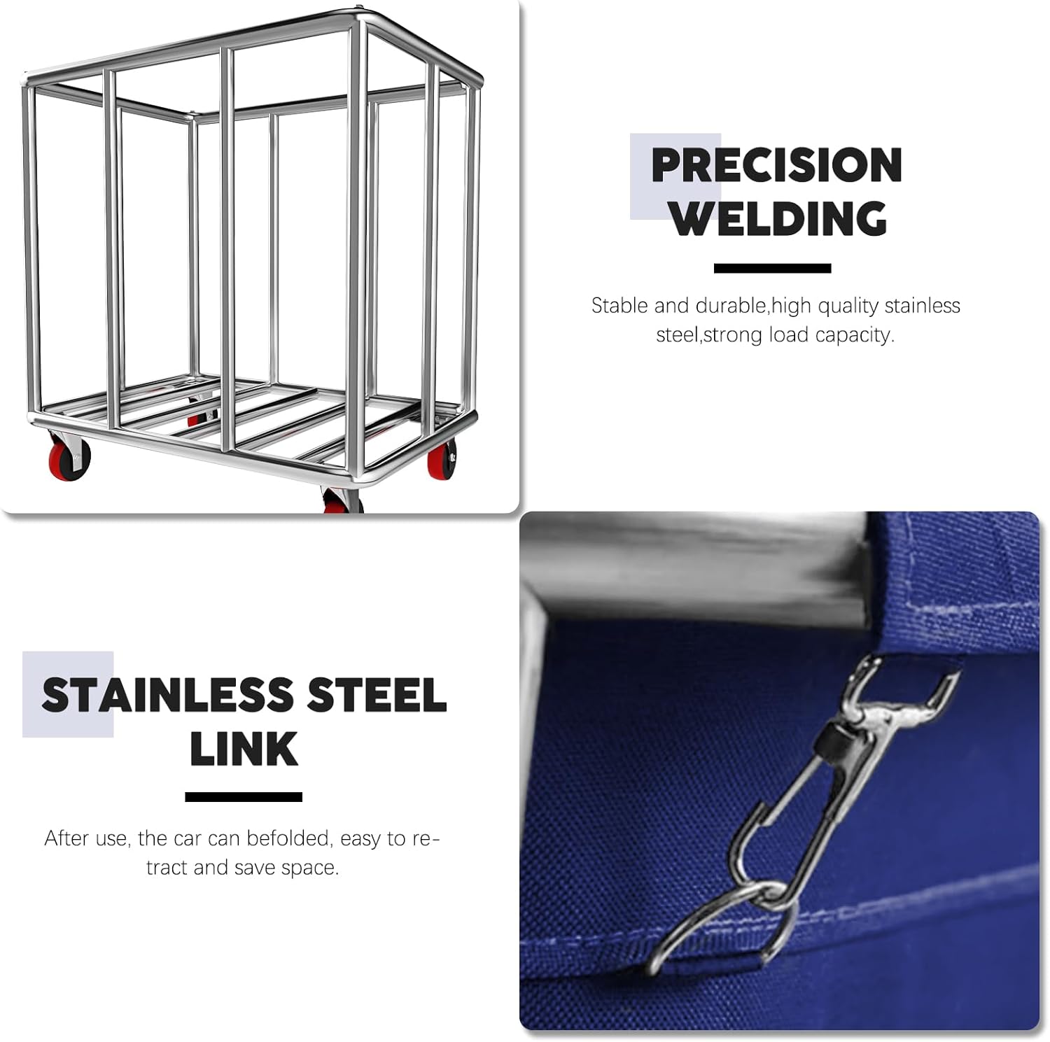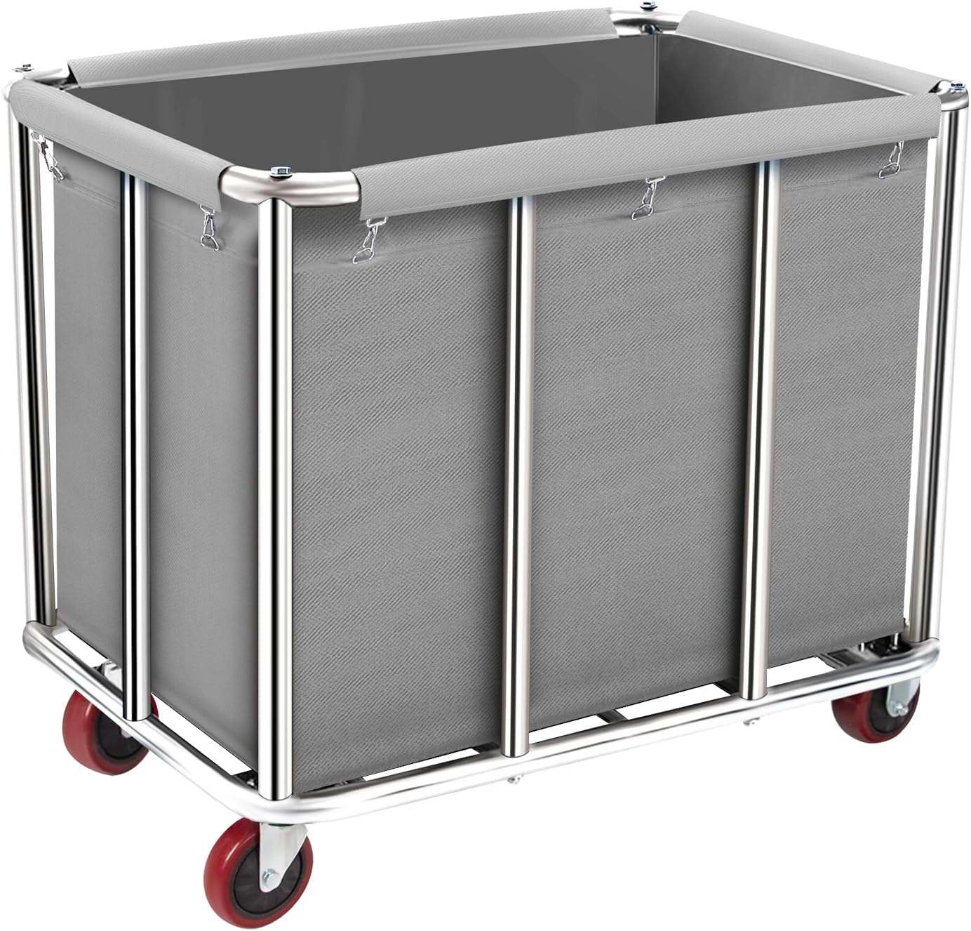 Commercial Laundry Cart with Wheels, 11.35 Bushel Large Laundry Tumbler with Removable Waterproof Canvas Lined Basket, Heavy Duty Stainless Steel Laundry Basket for Hotels and Hospitals