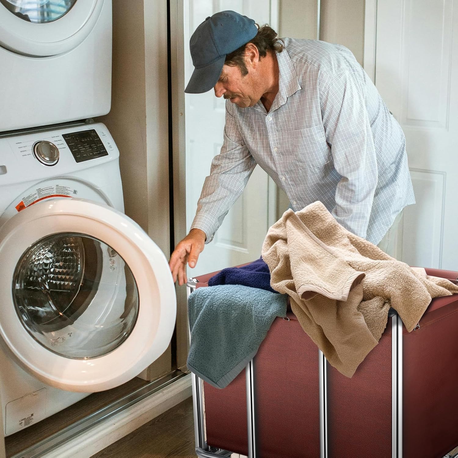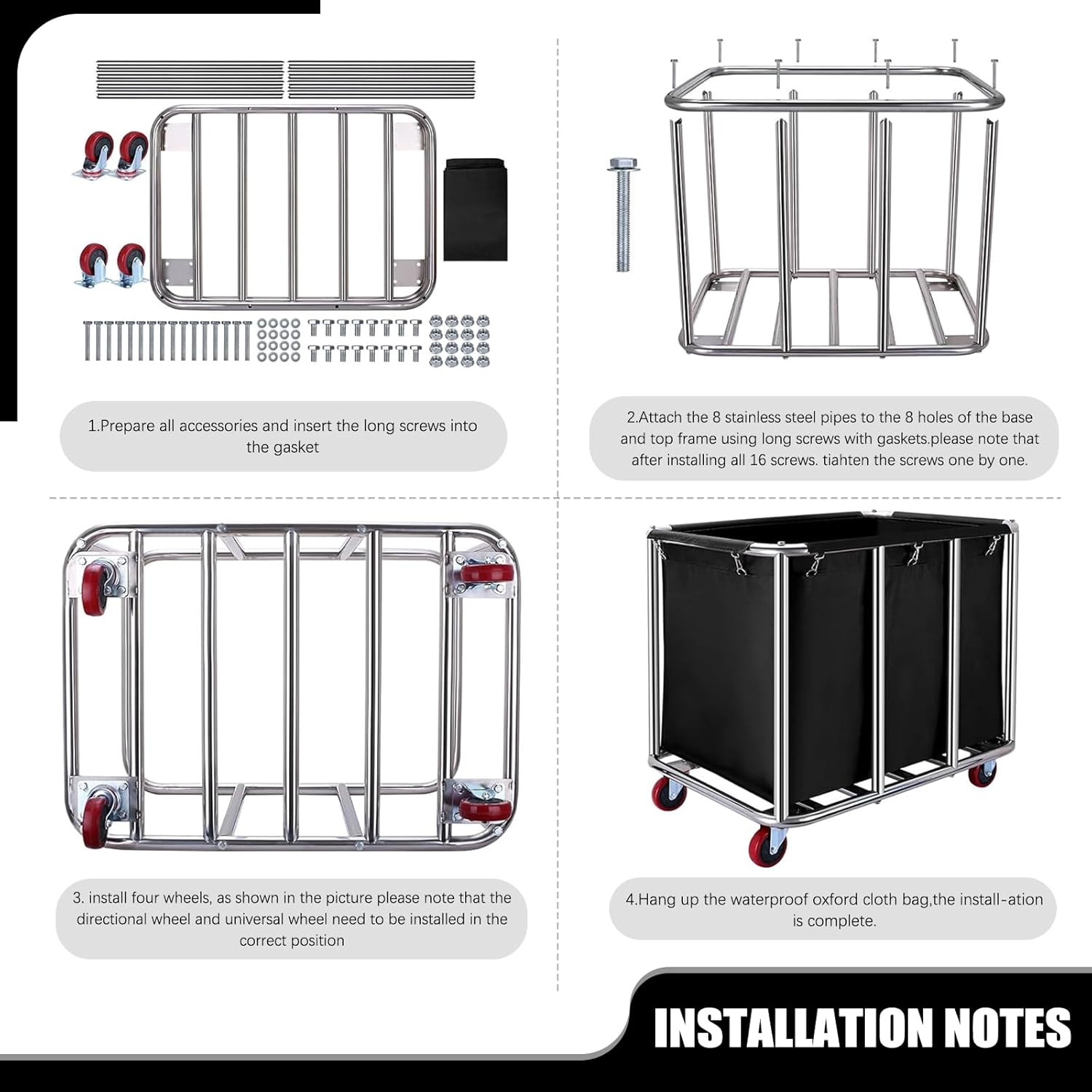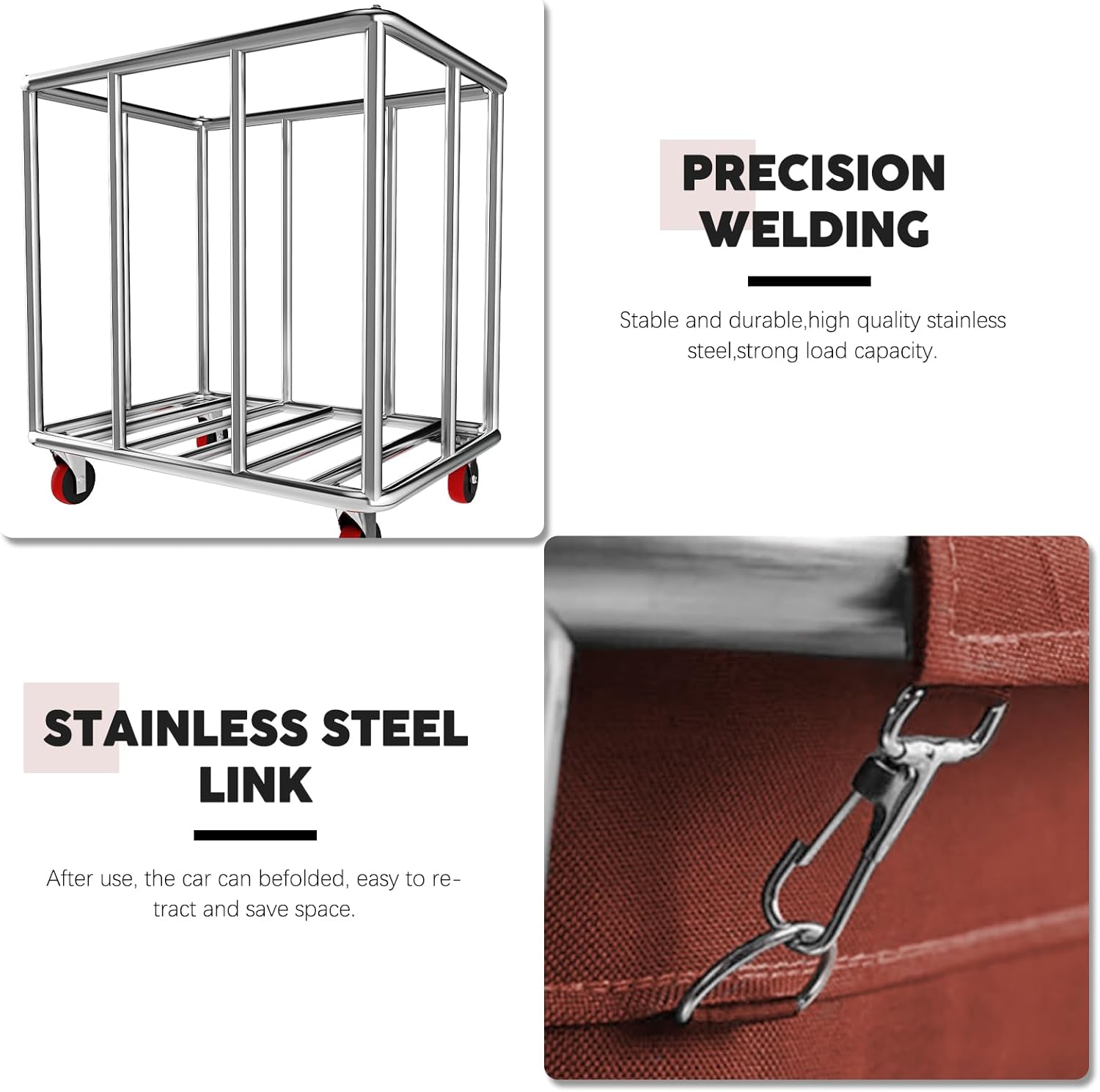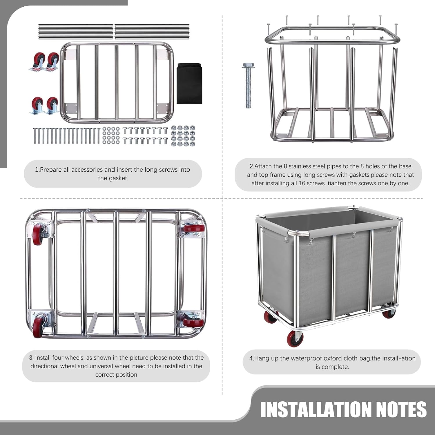Commercial Laundry Cart with Wheels, 11.35 Bushel Large Laundry Tumbler with Removable Waterproof Canvas Lined Basket, Heavy Duty Stainless Steel Laundry Basket for Hotels and Hospitals