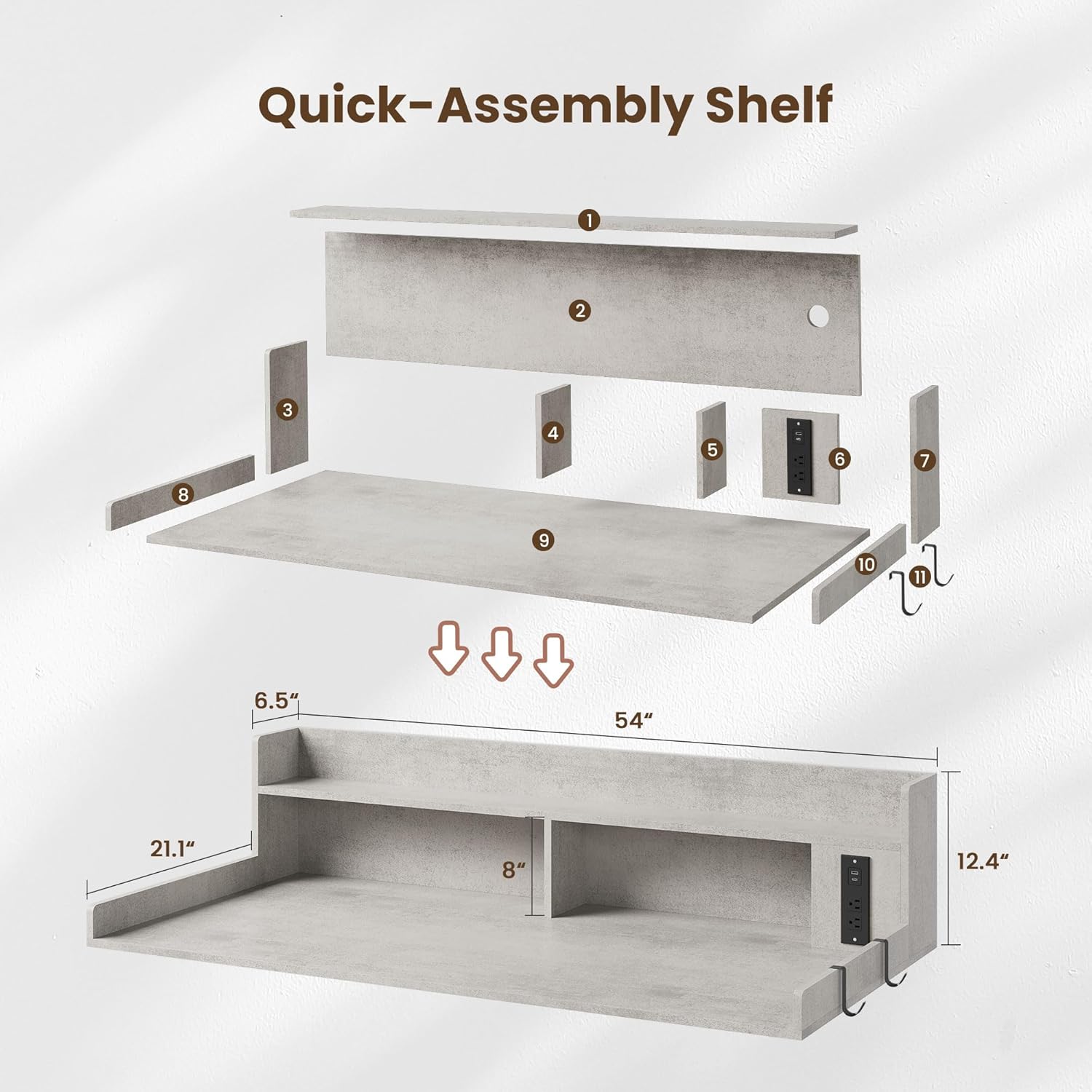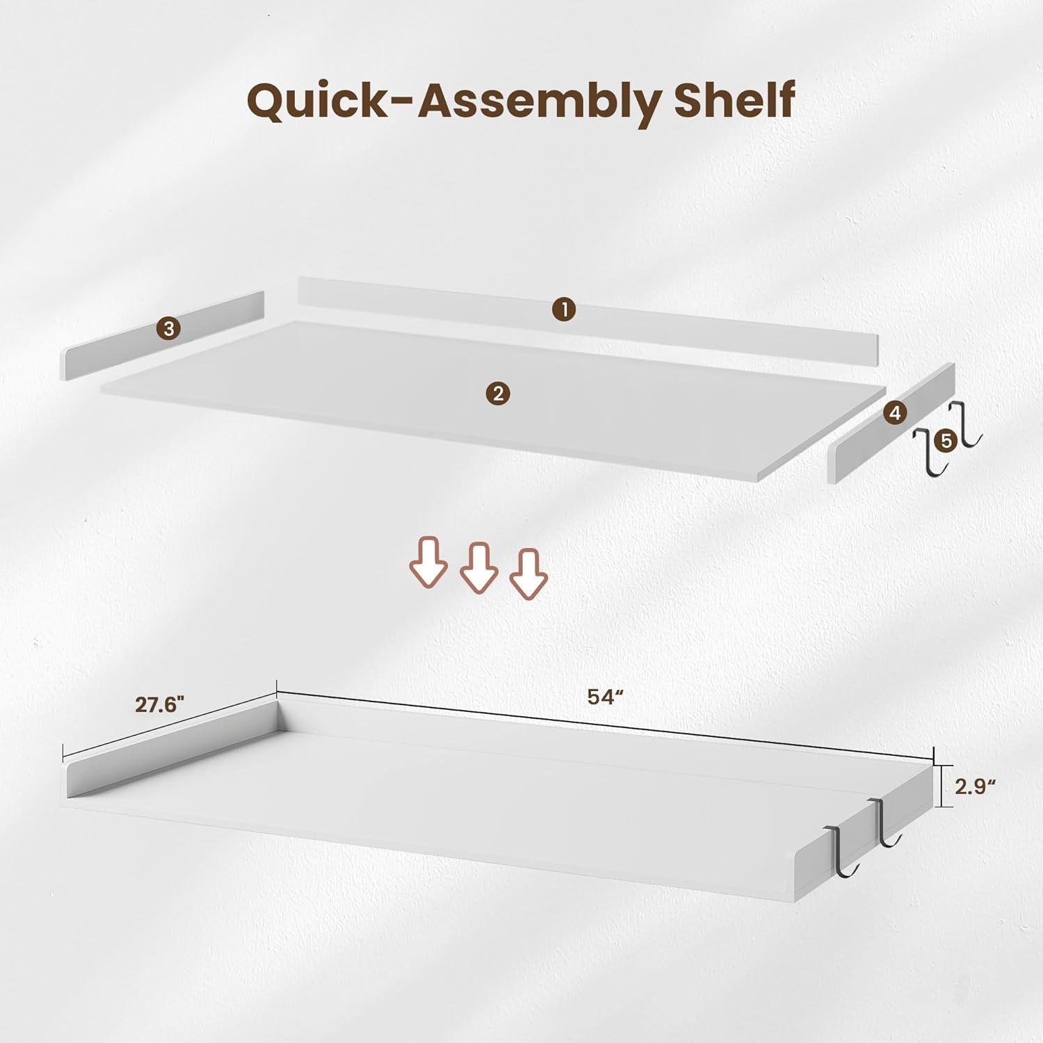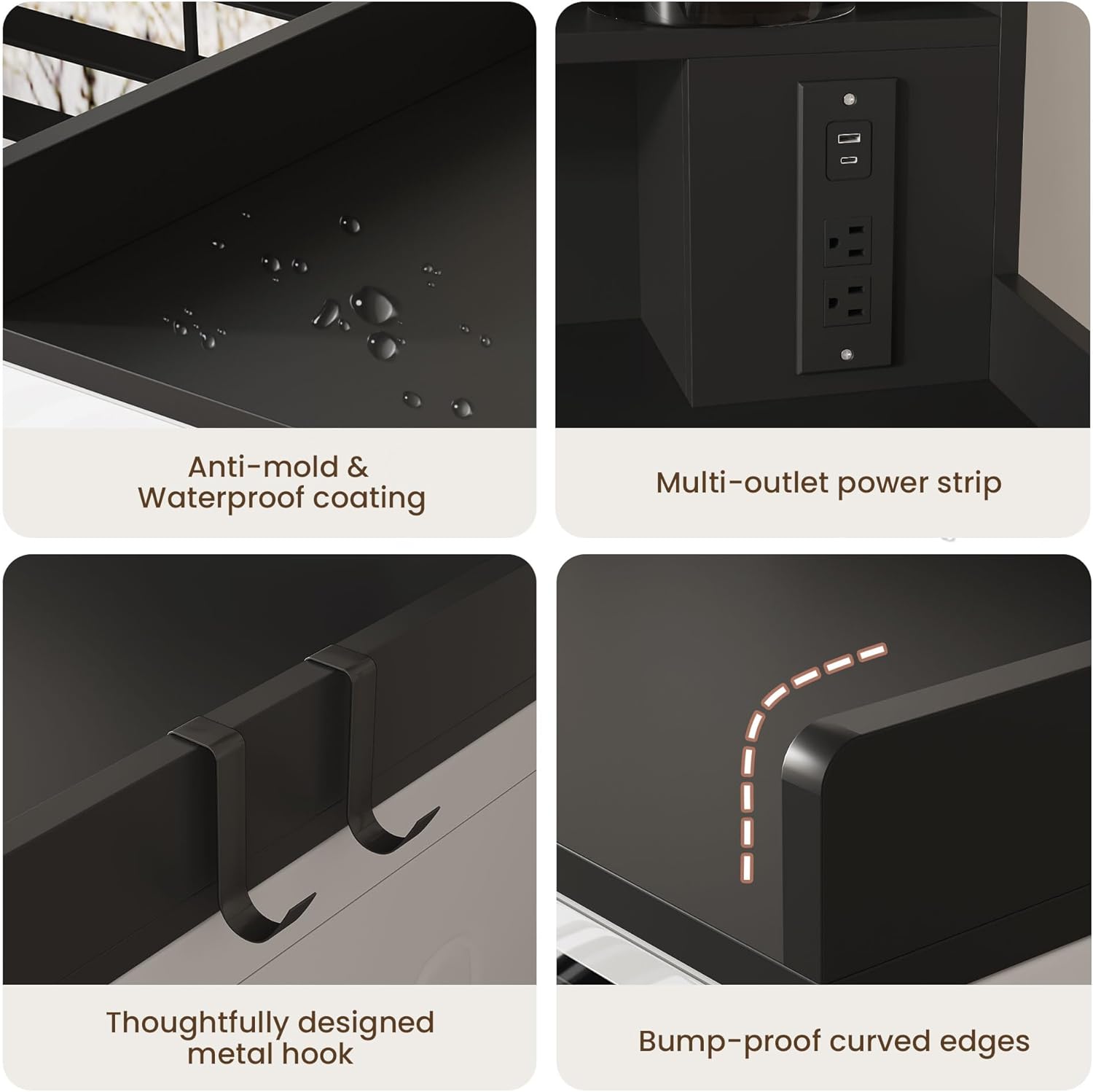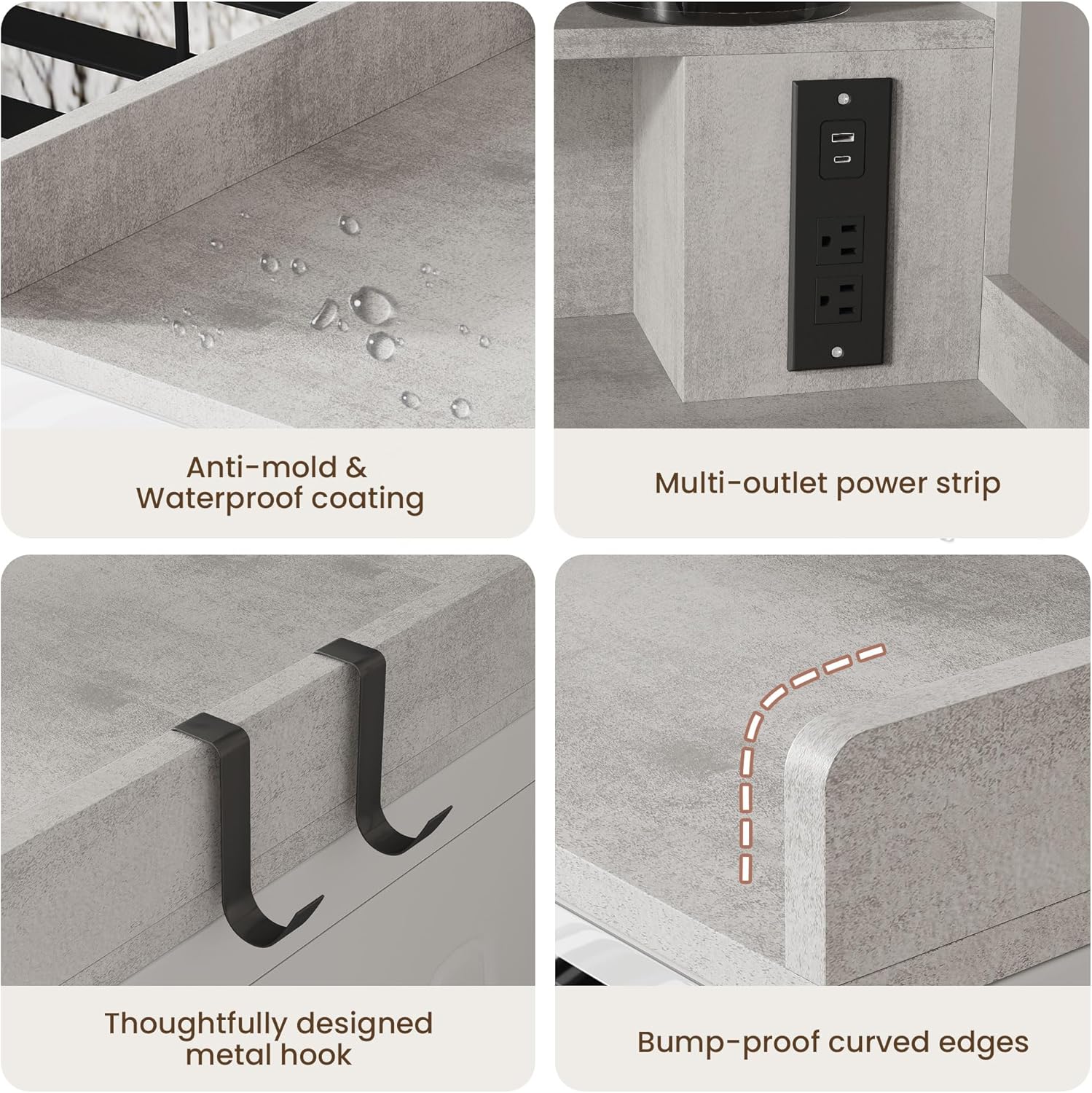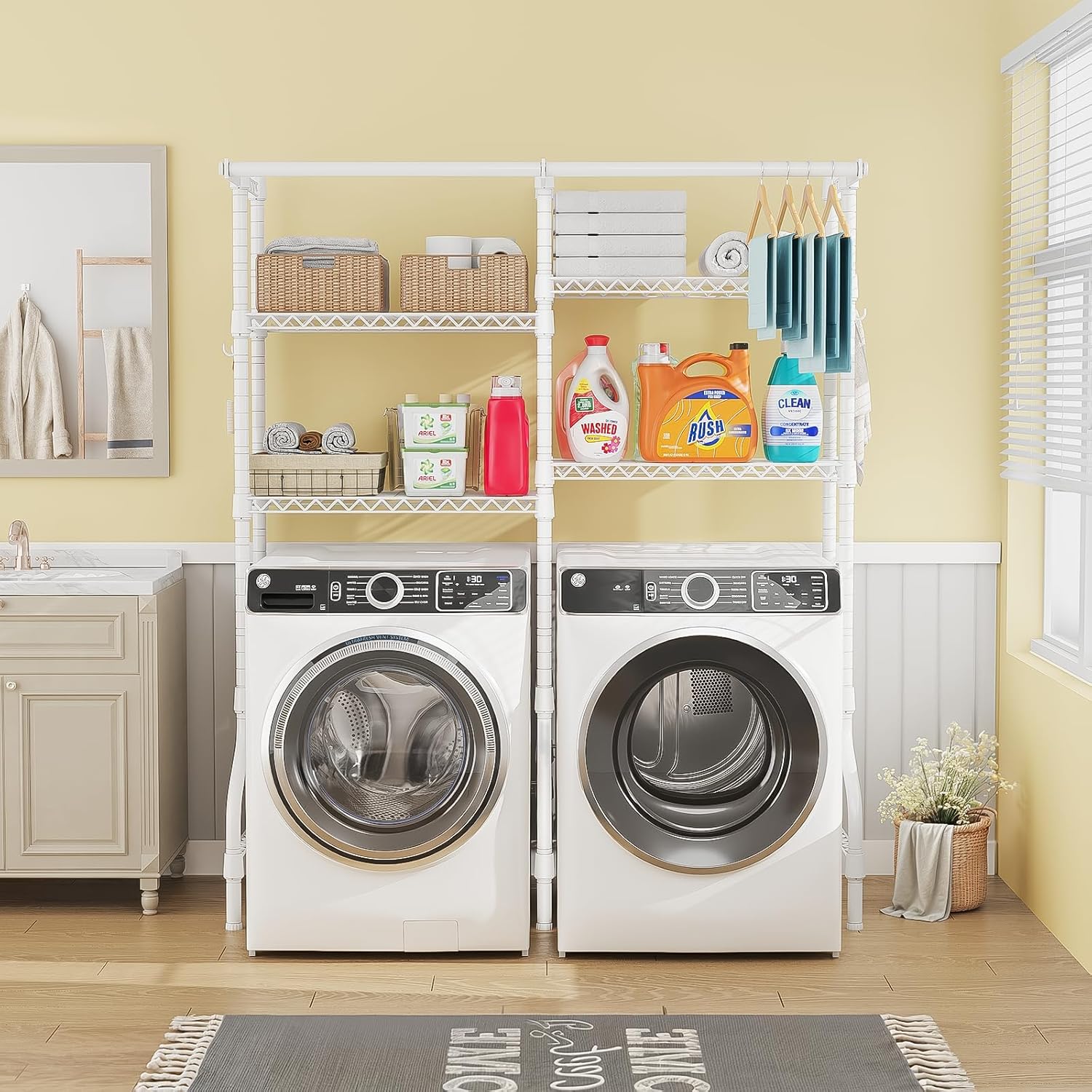 Upgraded 2-Tier Washer and Dryer Countertop with Power Outlet,54" W x 27.6" D Large Laundry Countertop for Fold Clothes, Laundry Topper with Non-Slip Pads & Metal Hooks and Storage Basket