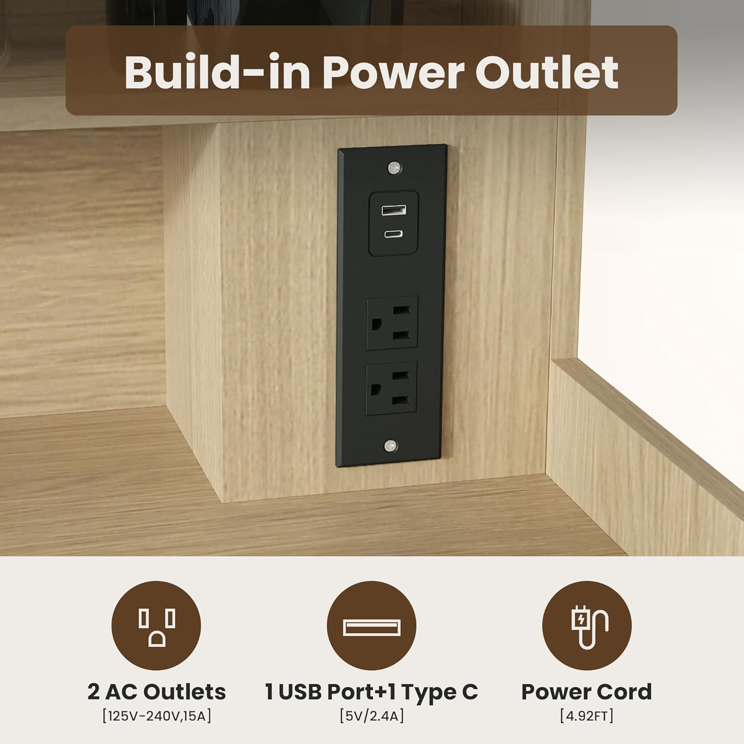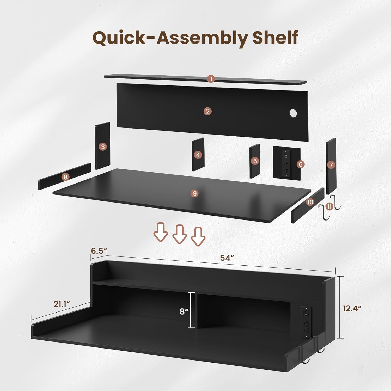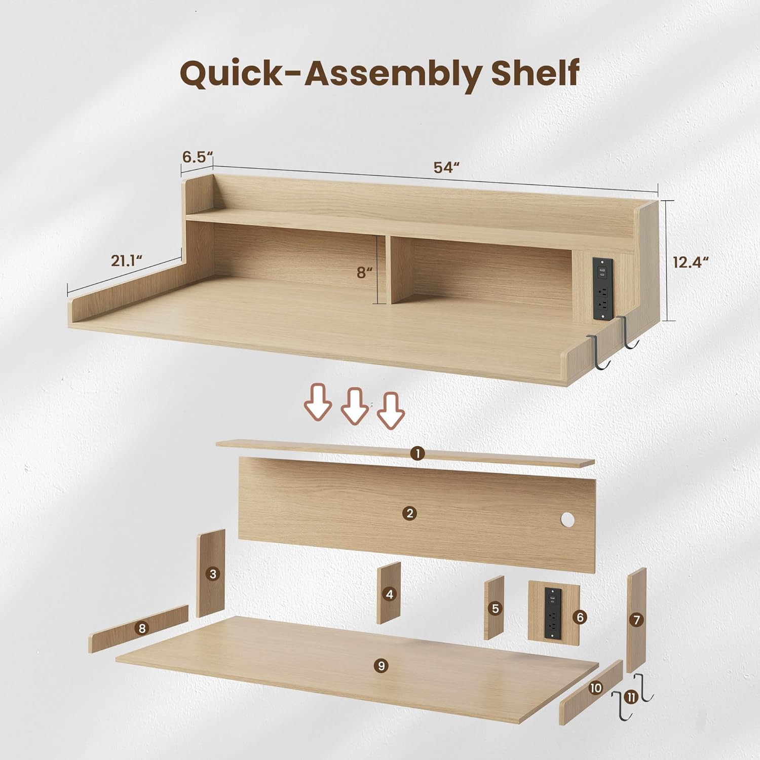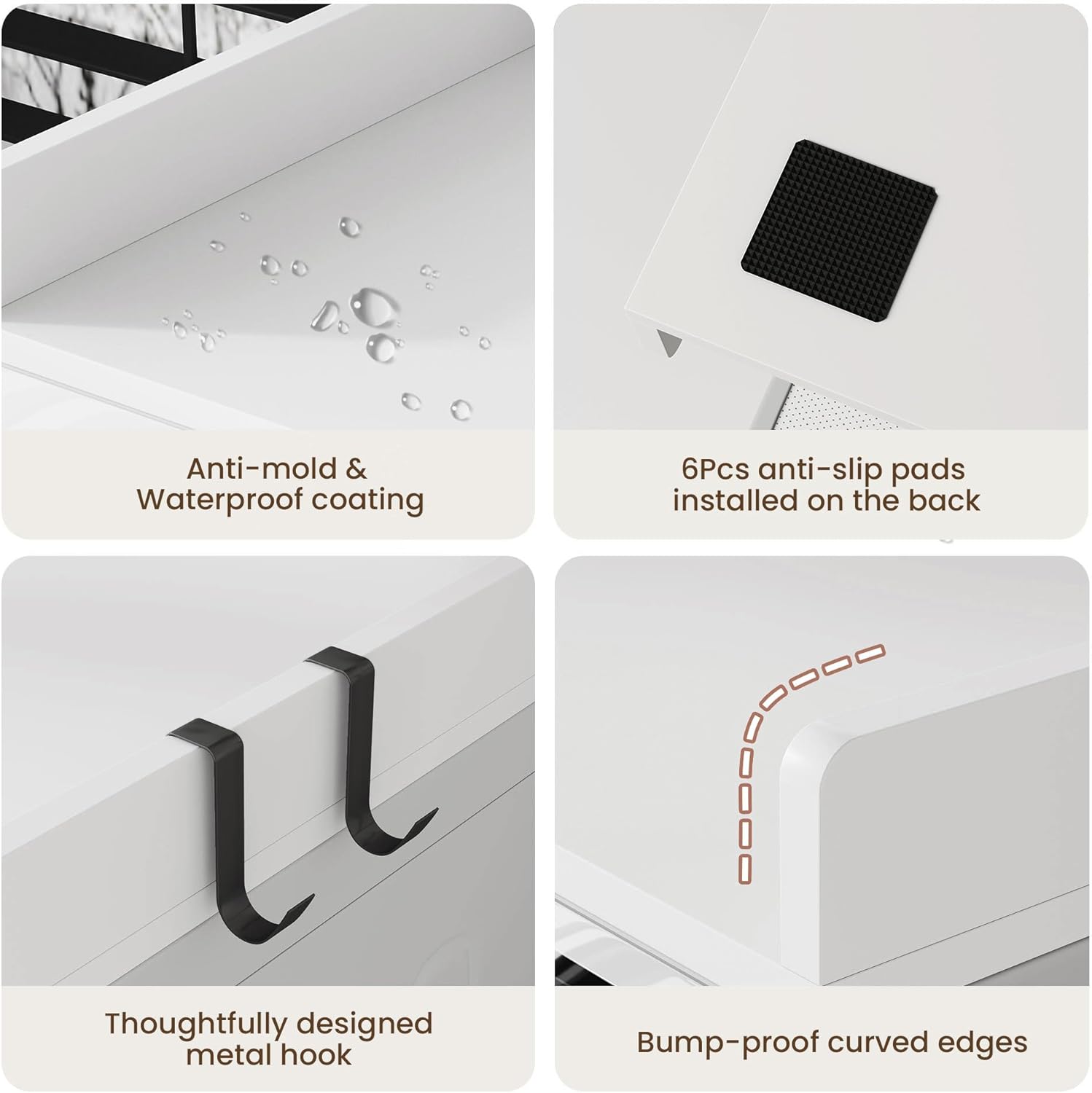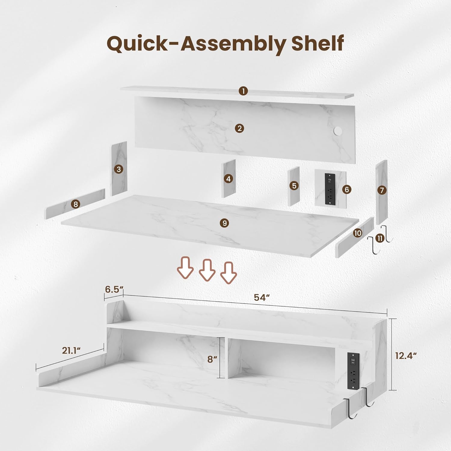 Upgraded 2-Tier Washer and Dryer Countertop with Power Outlet,54" W x 27.6" D Large Laundry Countertop for Fold Clothes, Laundry Topper with Non-Slip Pads & Metal Hooks and Storage Basket