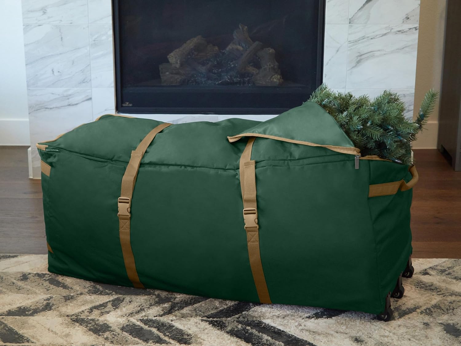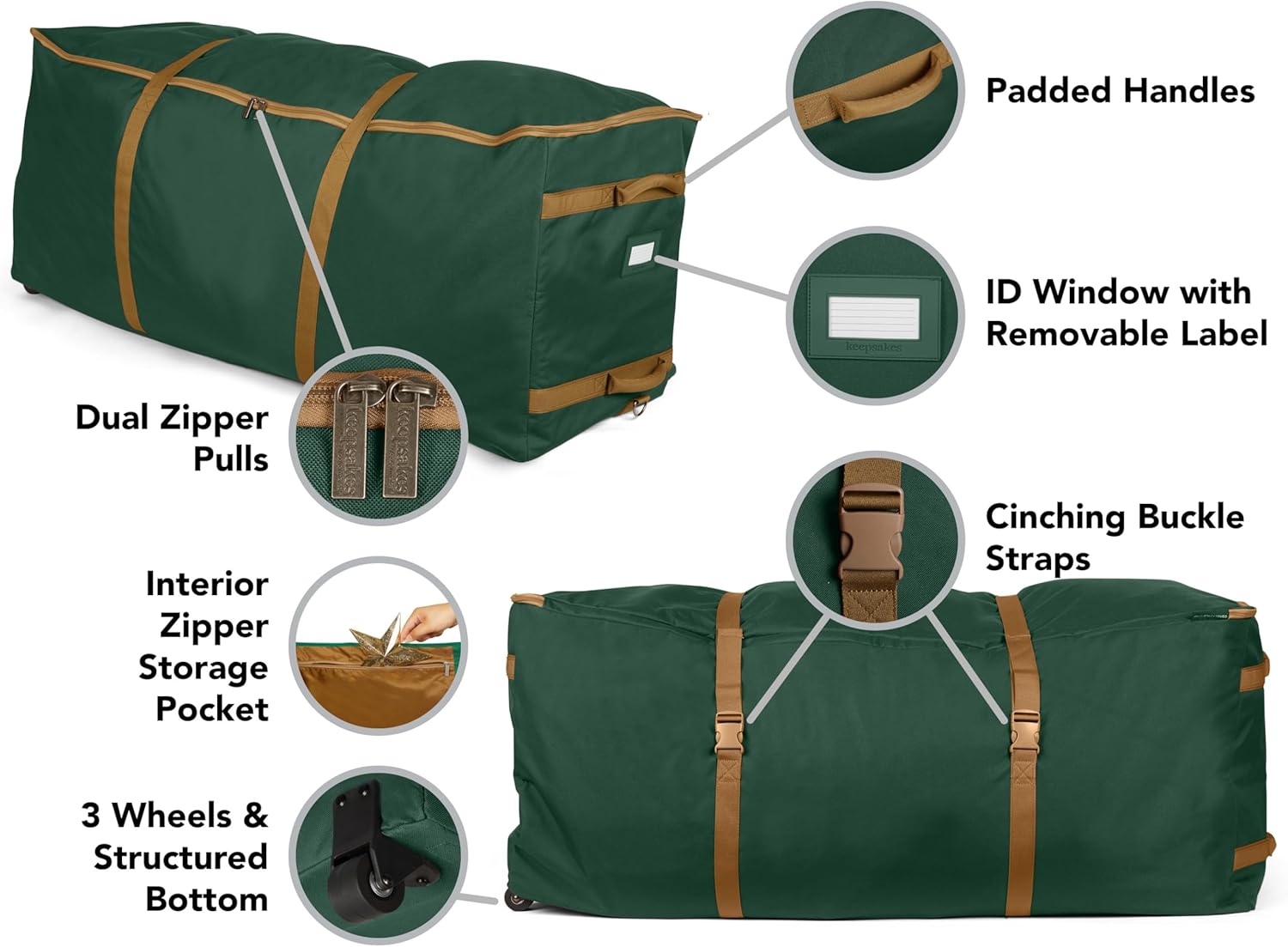 Covermates Keepsakes Christmas Tree Rolling Cinch Bag - Superior Protection - Padded Handles - Holiday Storage, Green