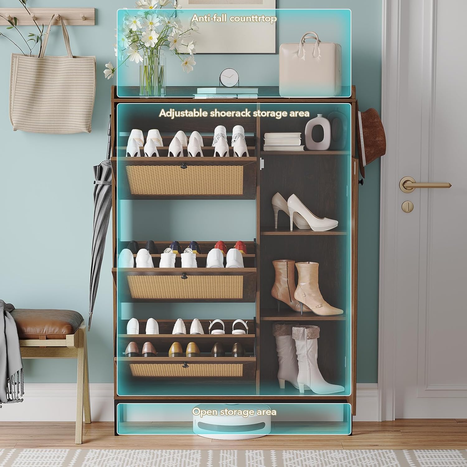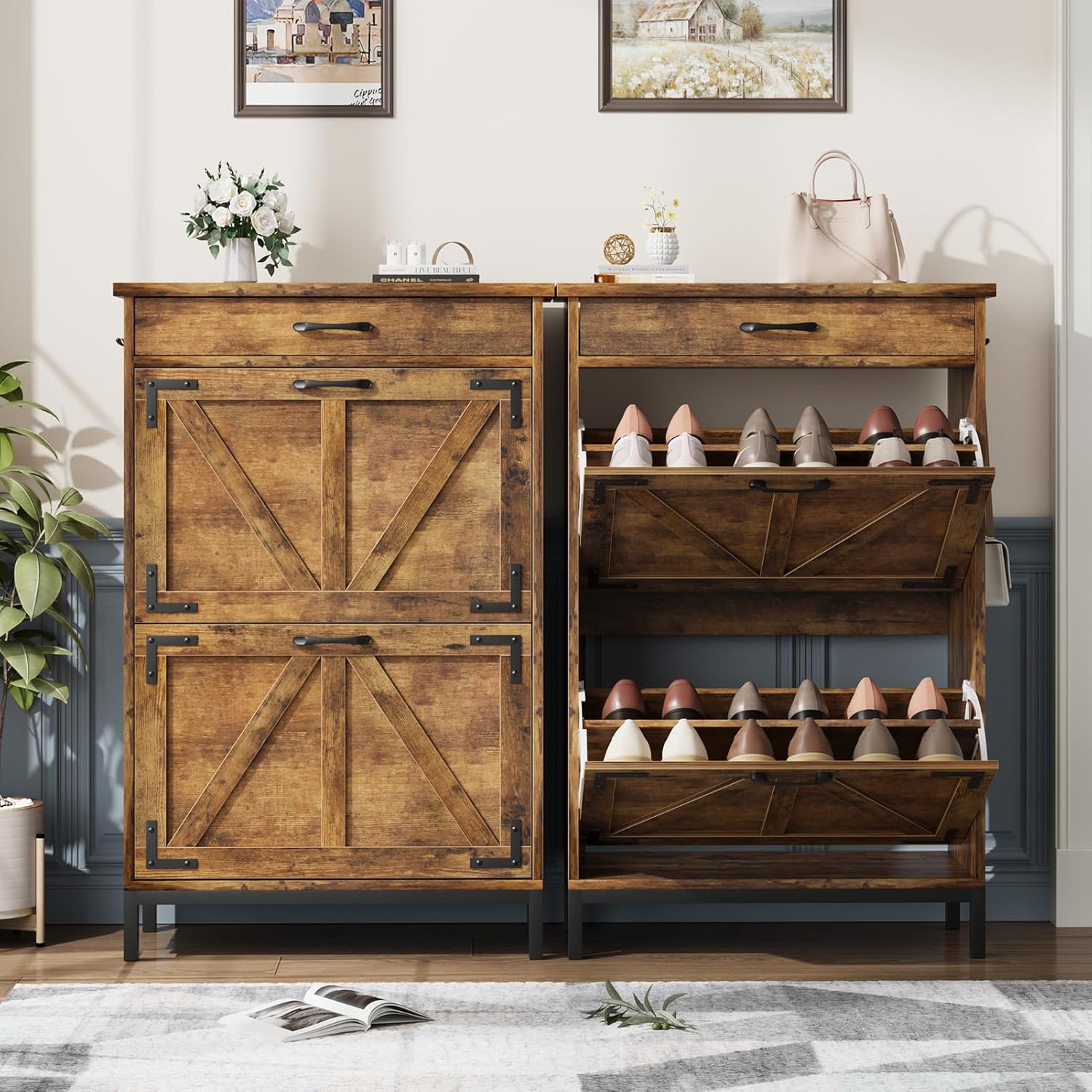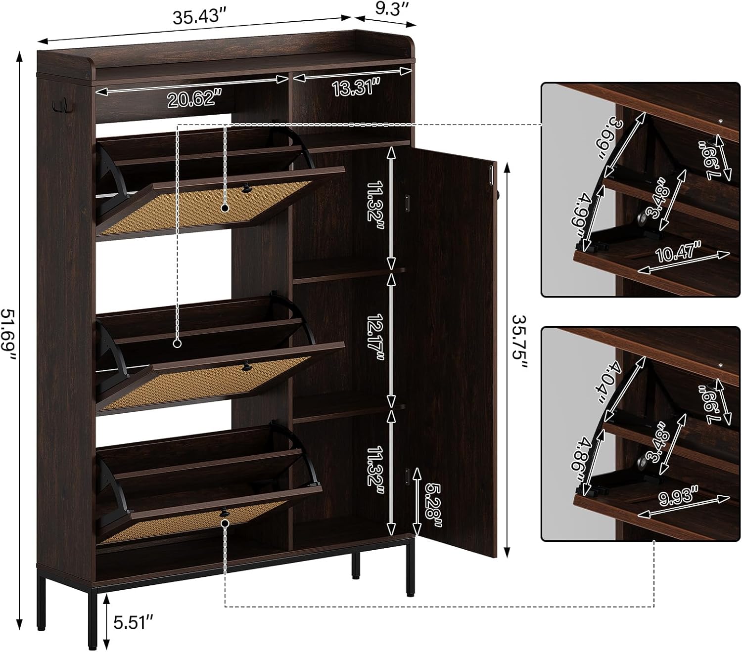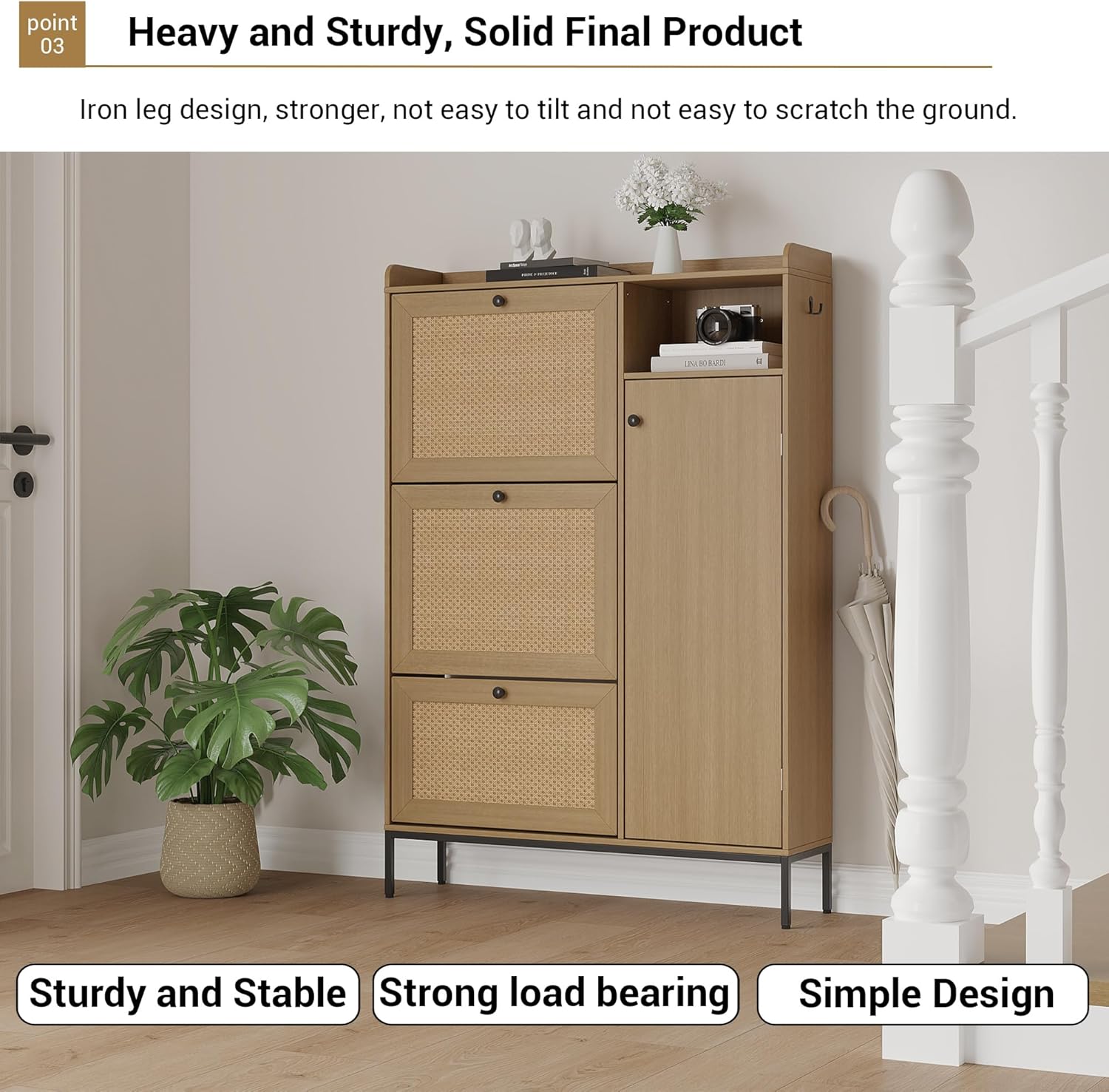 Shoe Storage Cabinet with 3 Flip Drawer, Farmhouse Narrow Shoe Cabinet with Metal Legs and Pull Out Drawer, 57.1'' H Freestanding Hidden Shoes Storage Organizer for Entryway, Hallway