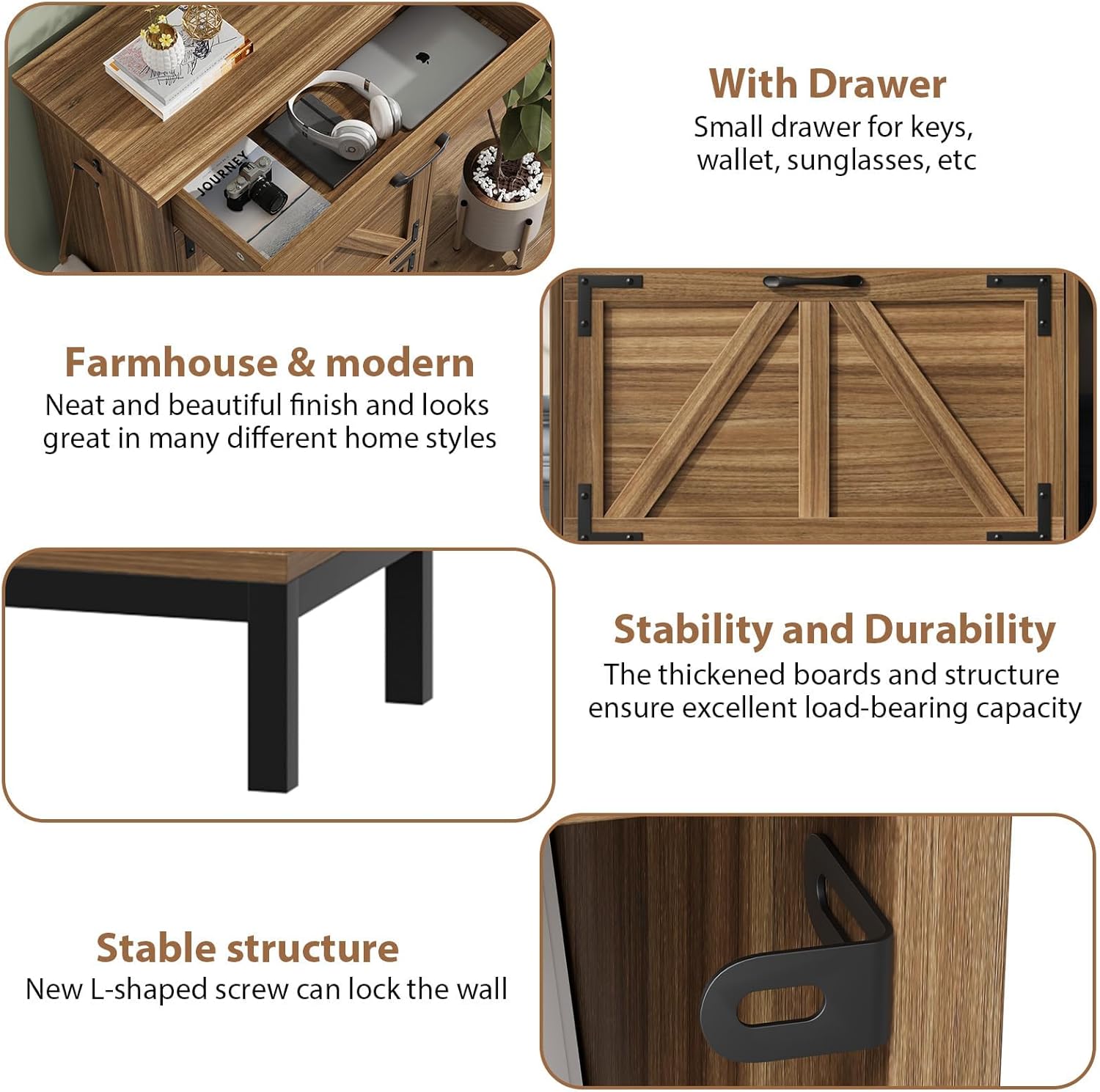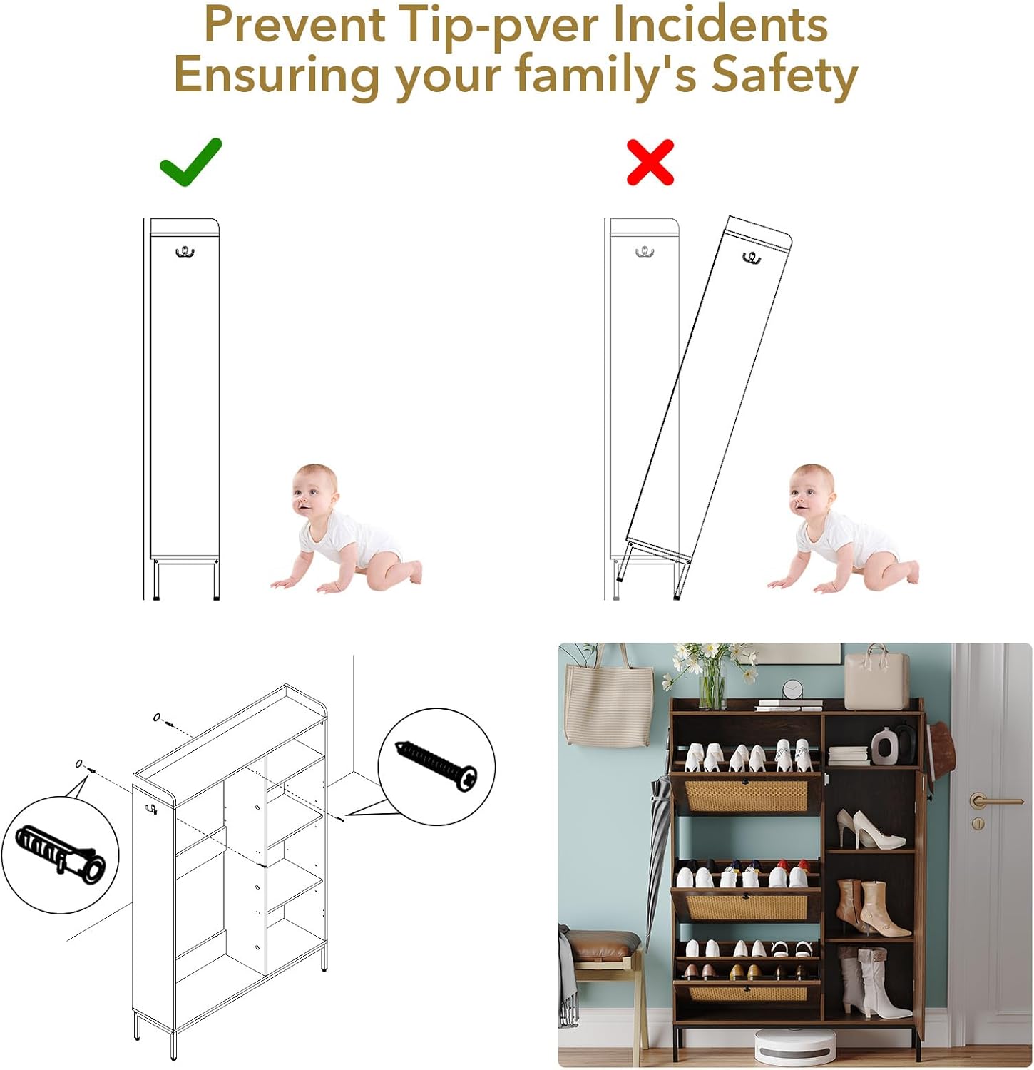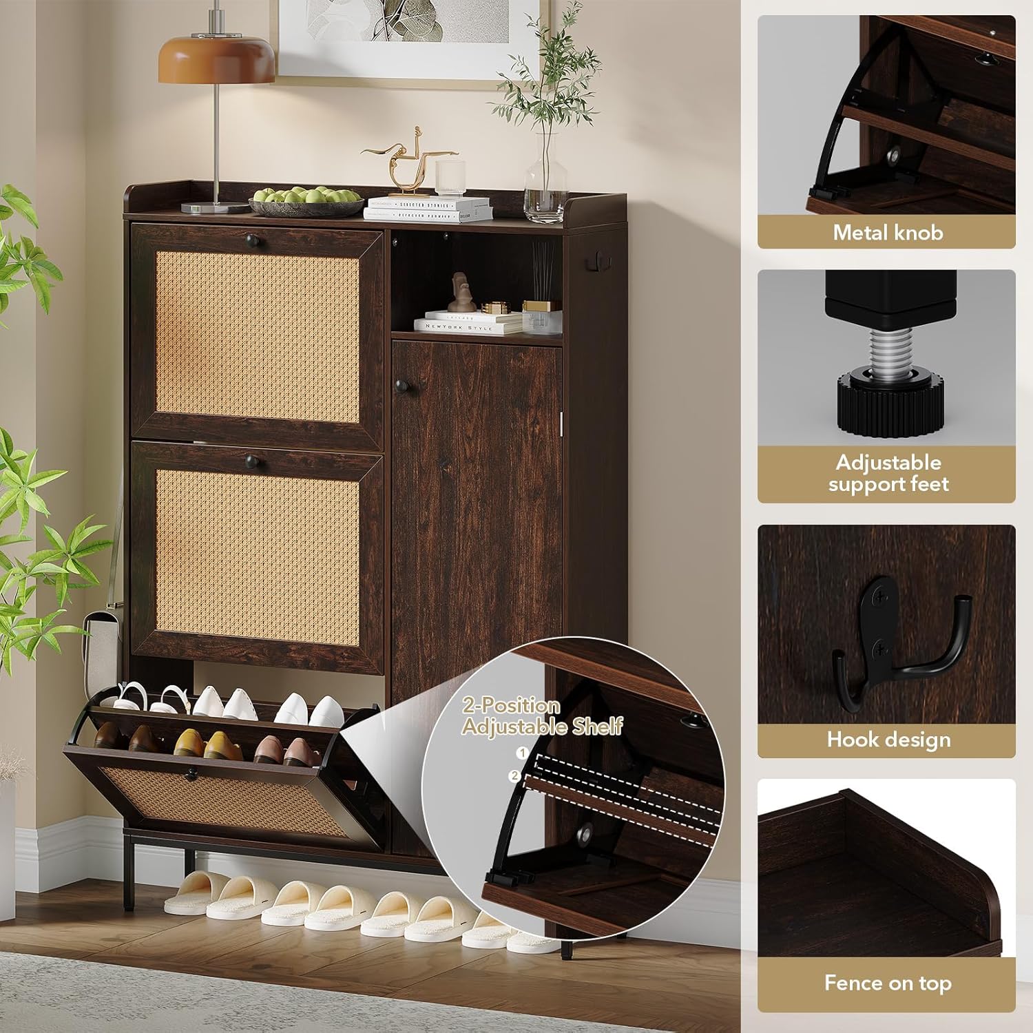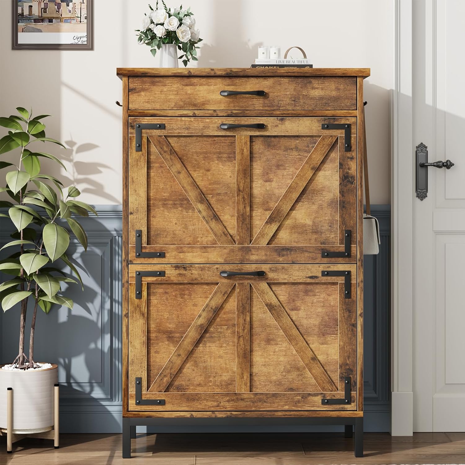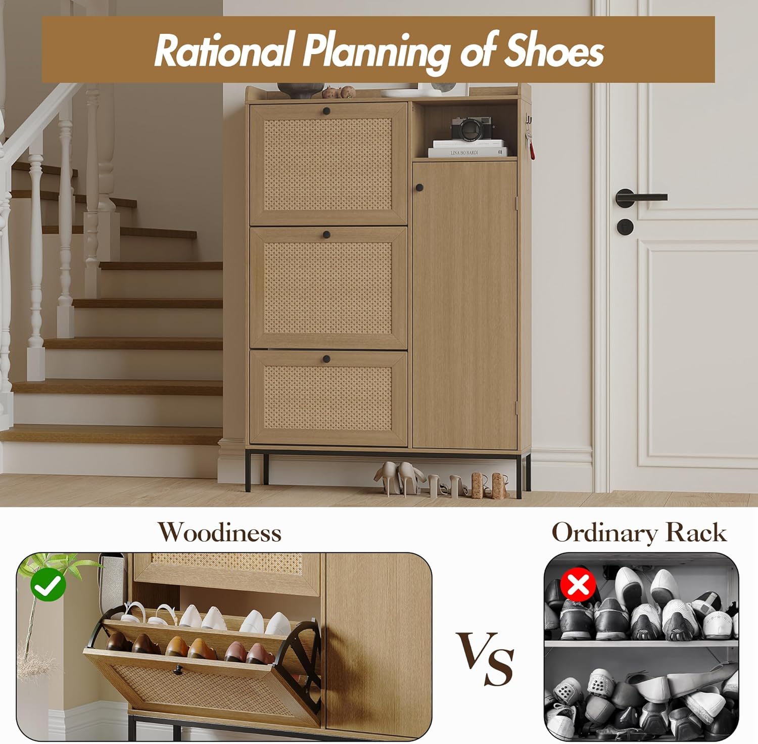 Shoe Storage Cabinet with 3 Flip Drawer, Farmhouse Narrow Shoe Cabinet with Metal Legs and Pull Out Drawer, 57.1'' H Freestanding Hidden Shoes Storage Organizer for Entryway, Hallway