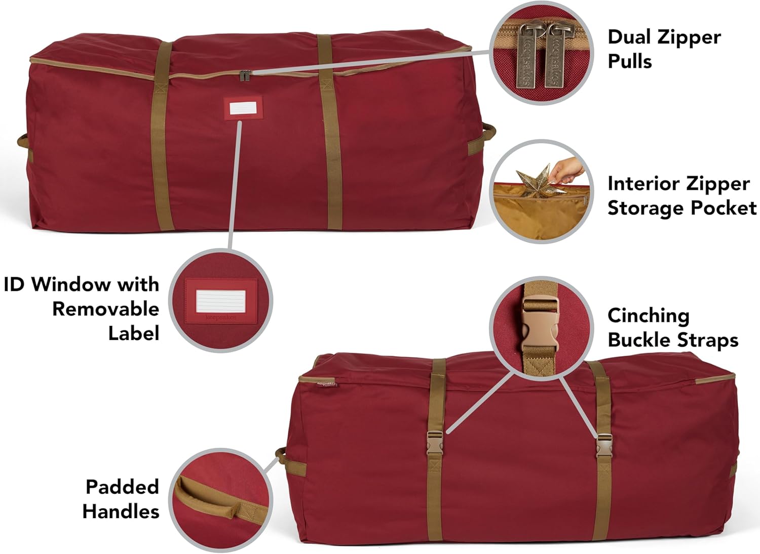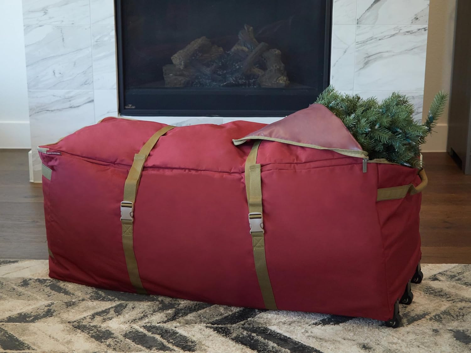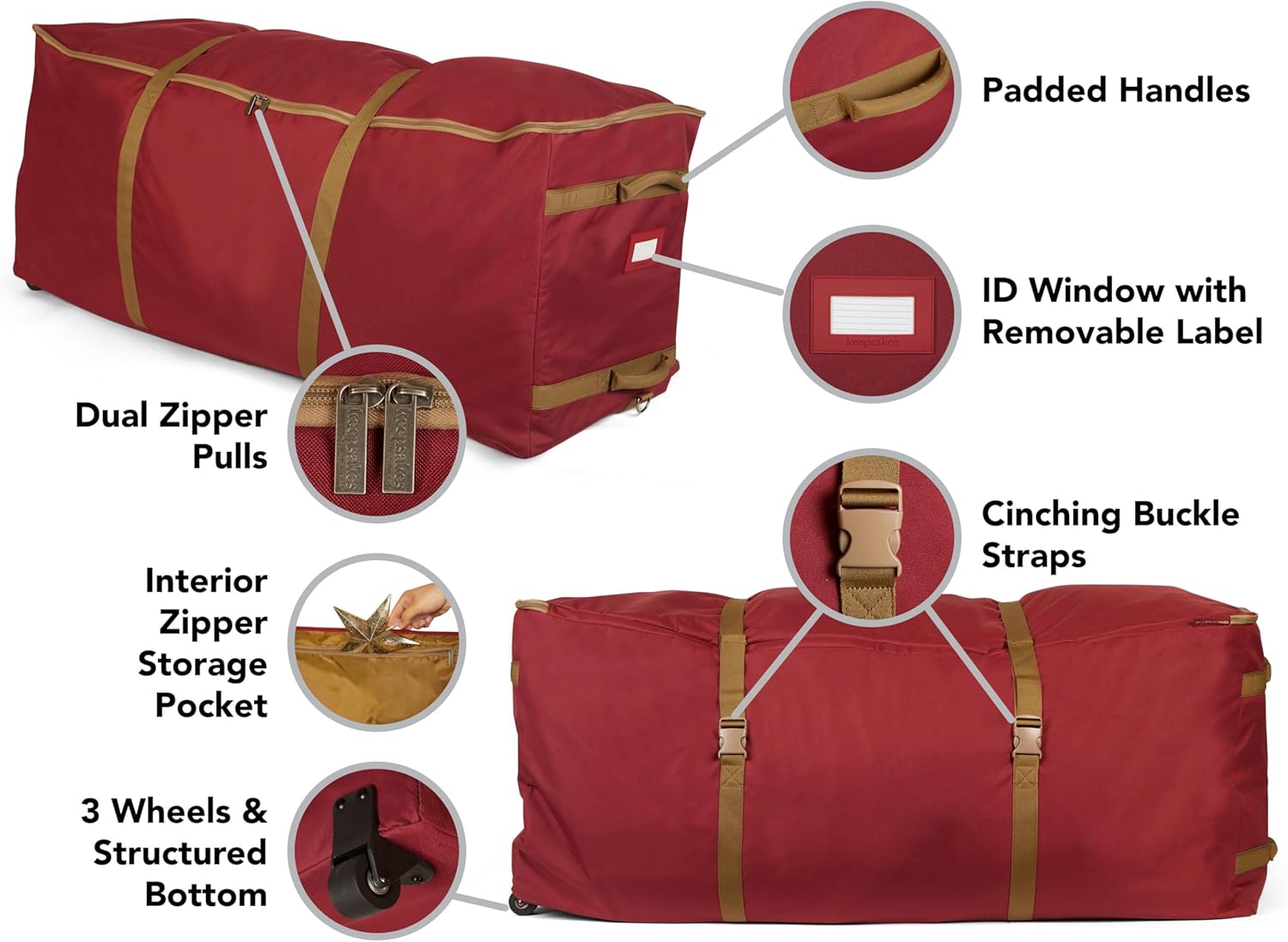 Covermates Keepsakes Christmas Tree Rolling Cinch Bag - Superior Protection - Padded Handles - Holiday Storage, Red