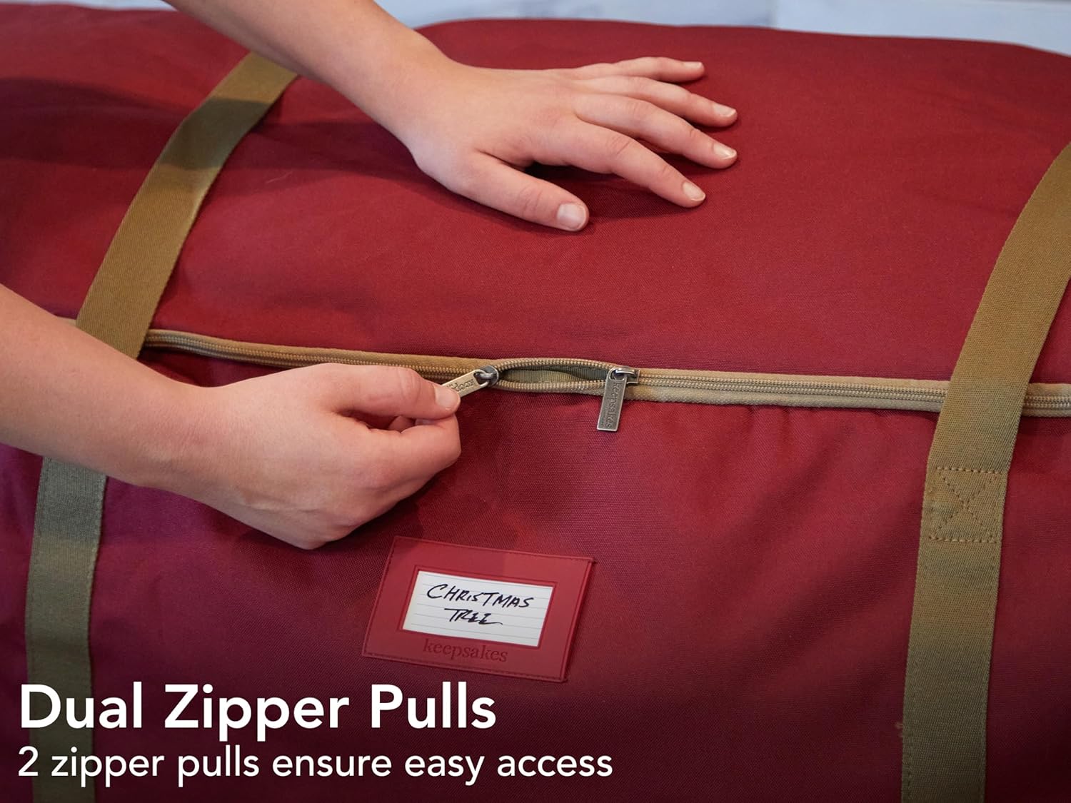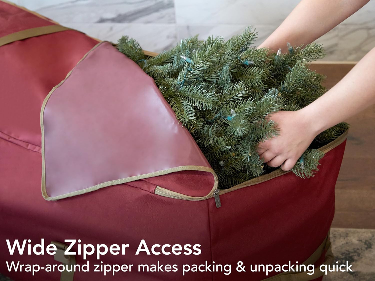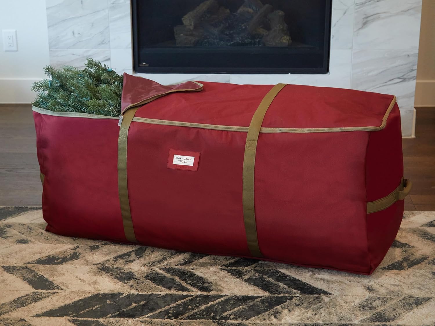 Covermates Keepsakes Christmas Tree Rolling Cinch Bag - Superior Protection - Padded Handles - Holiday Storage, Red