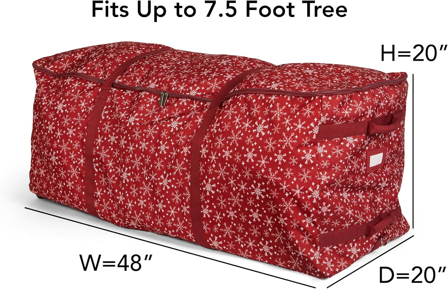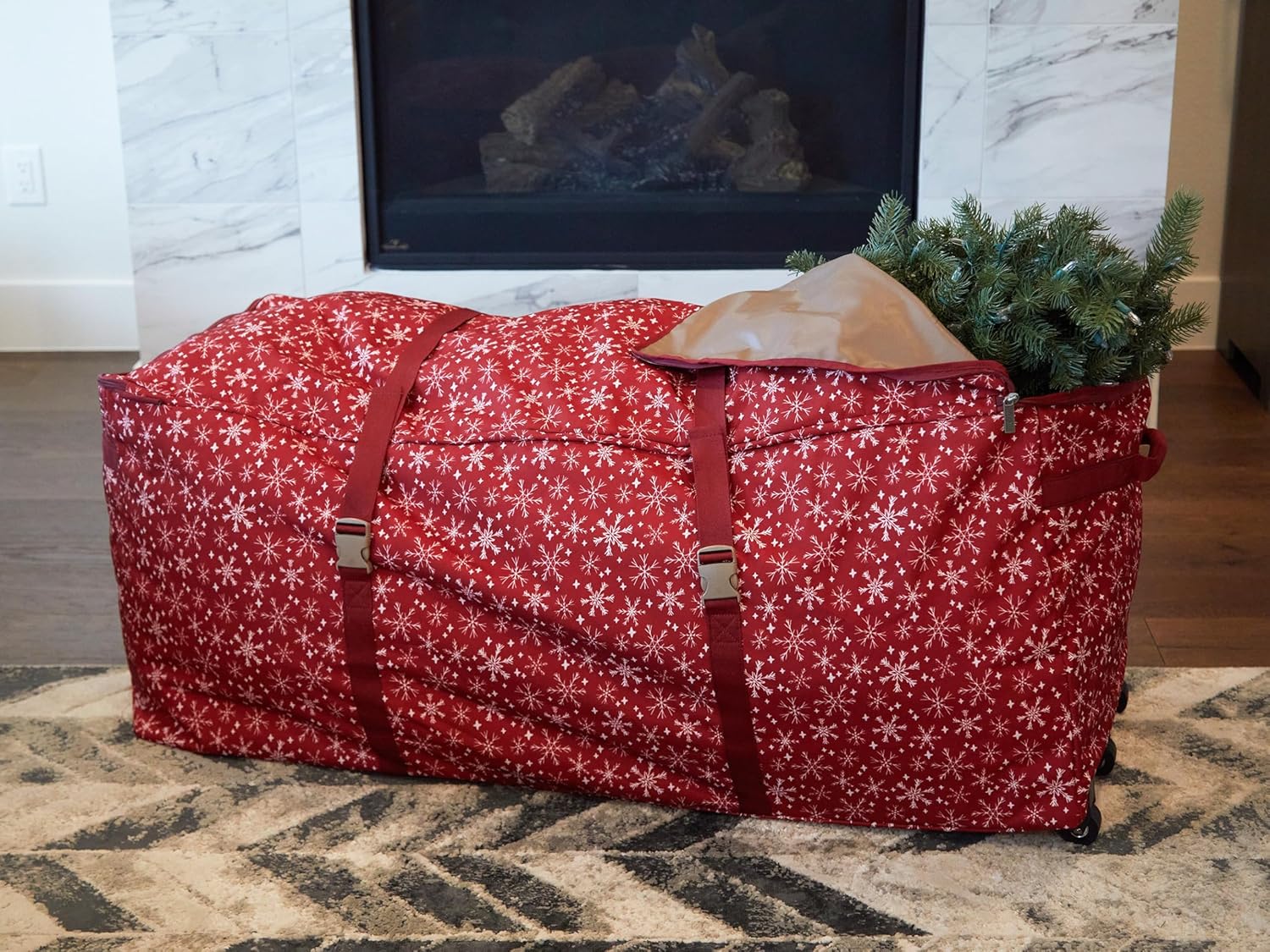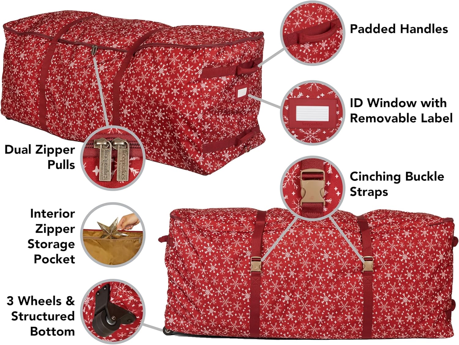 Covermates Keepsakes Christmas Tree Rolling Cinch Bag - Superior Protection - Padded Handles - Holiday Storage, Red Snowflake