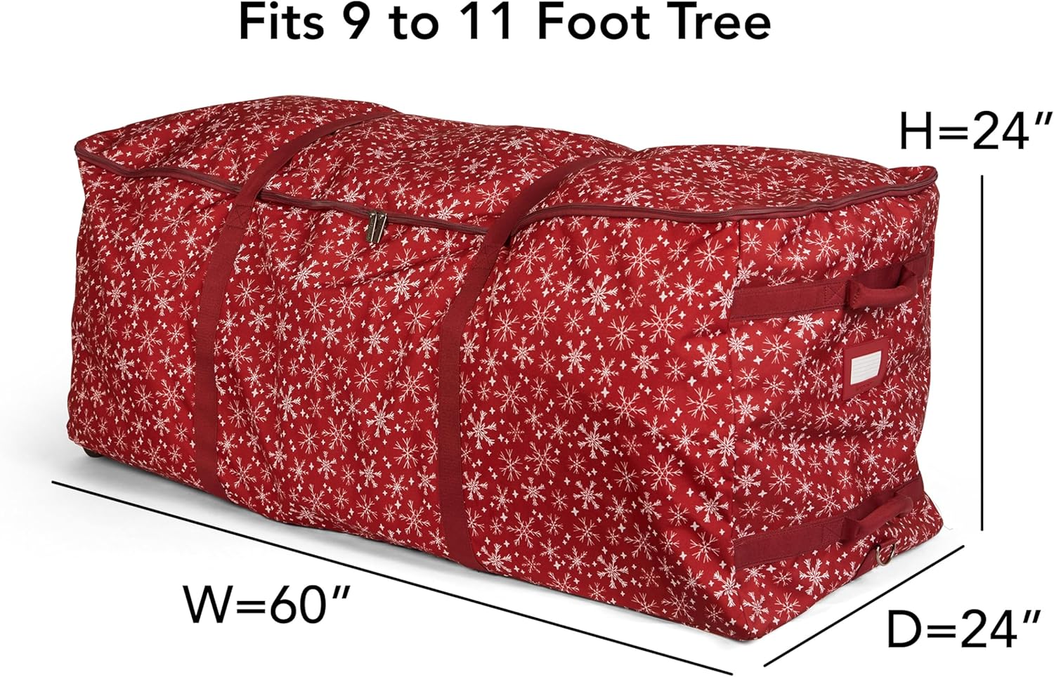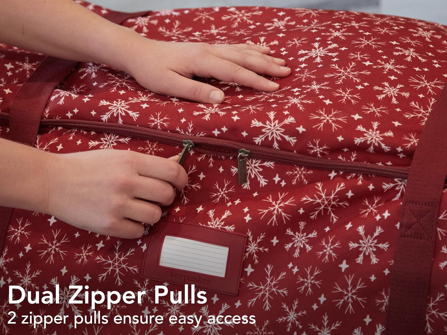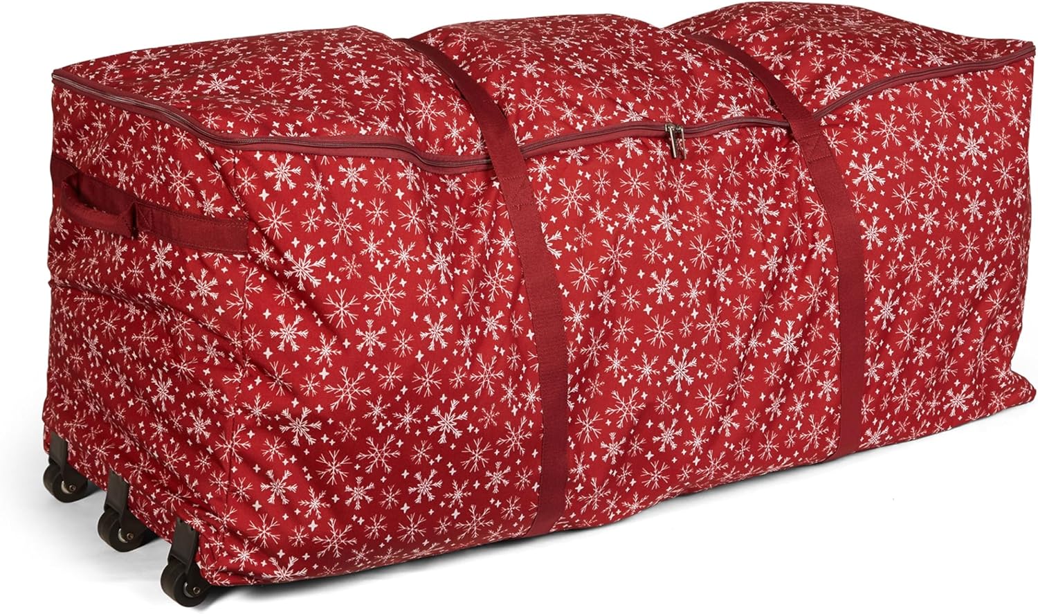 Covermates Keepsakes Christmas Tree Rolling Cinch Bag - Superior Protection - Padded Handles - Holiday Storage, Red Snowflake