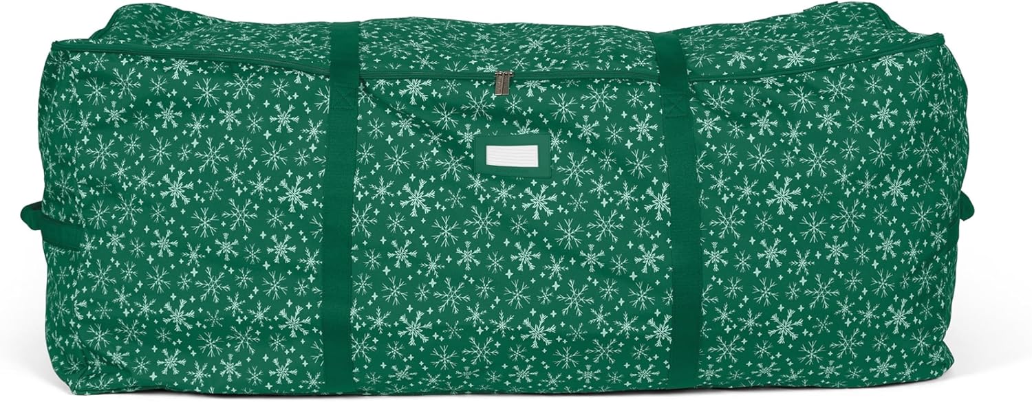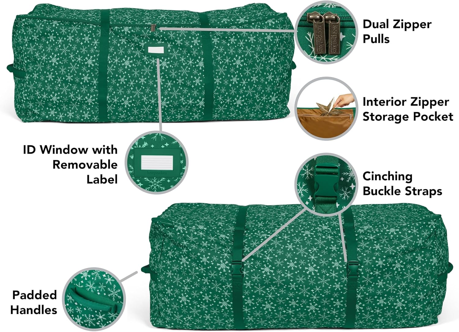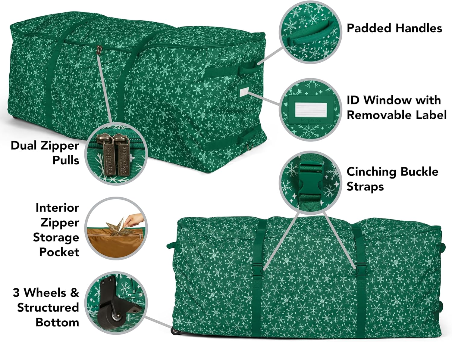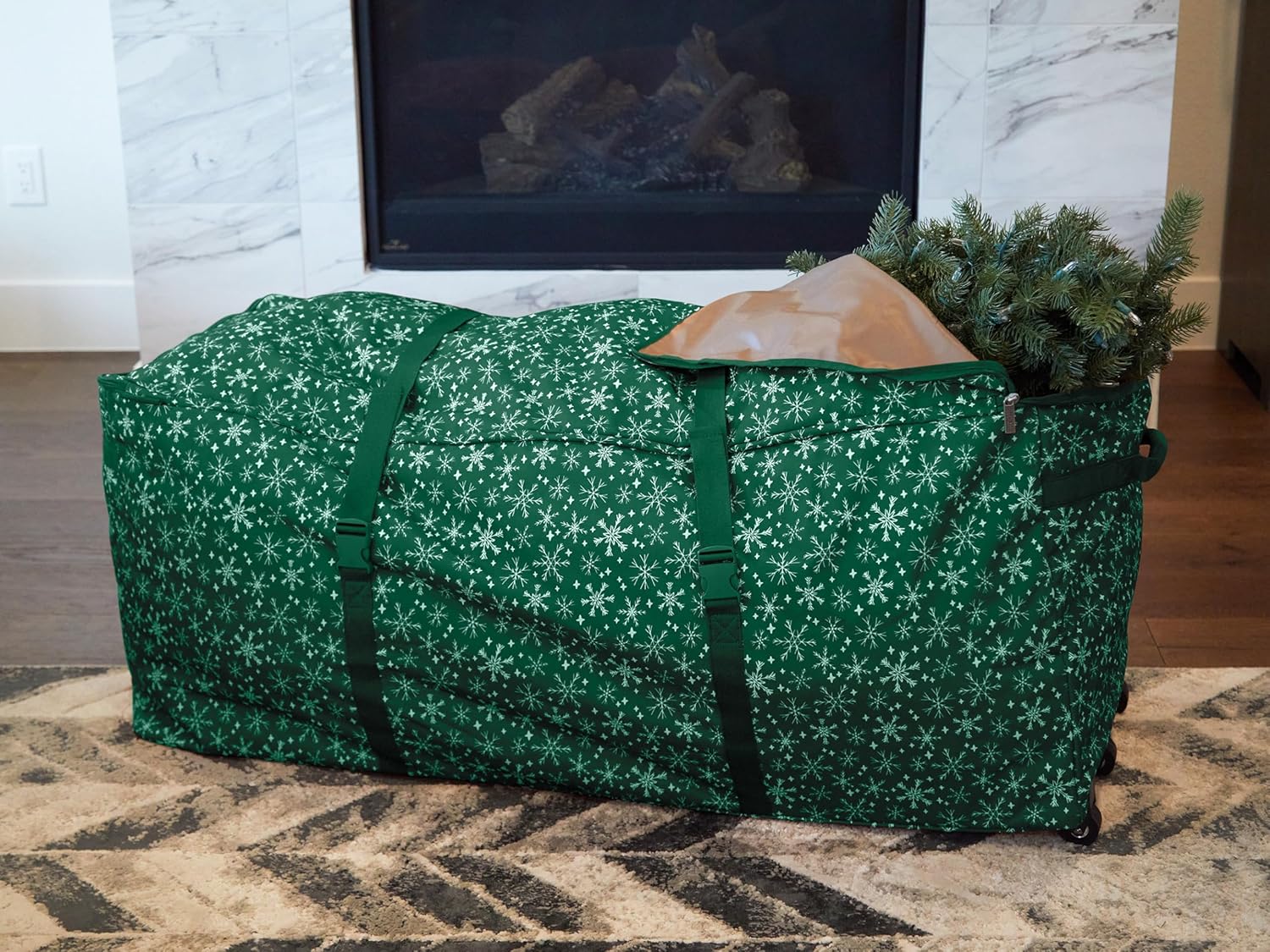 Covermates Keepsakes Christmas Tree Rolling Cinch Bag - Superior Protection - Padded Handles - Holiday Storage, Green Snowflake