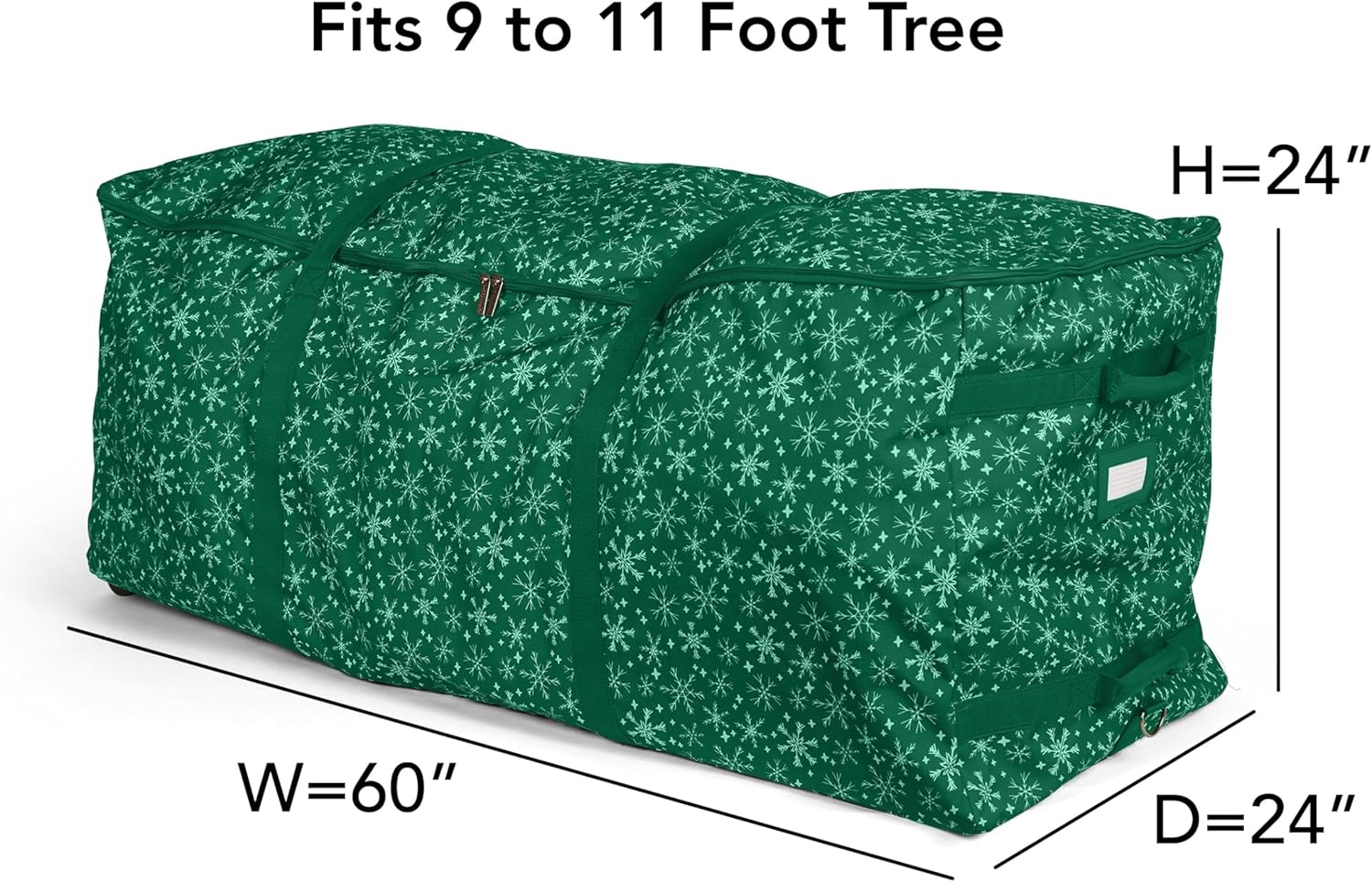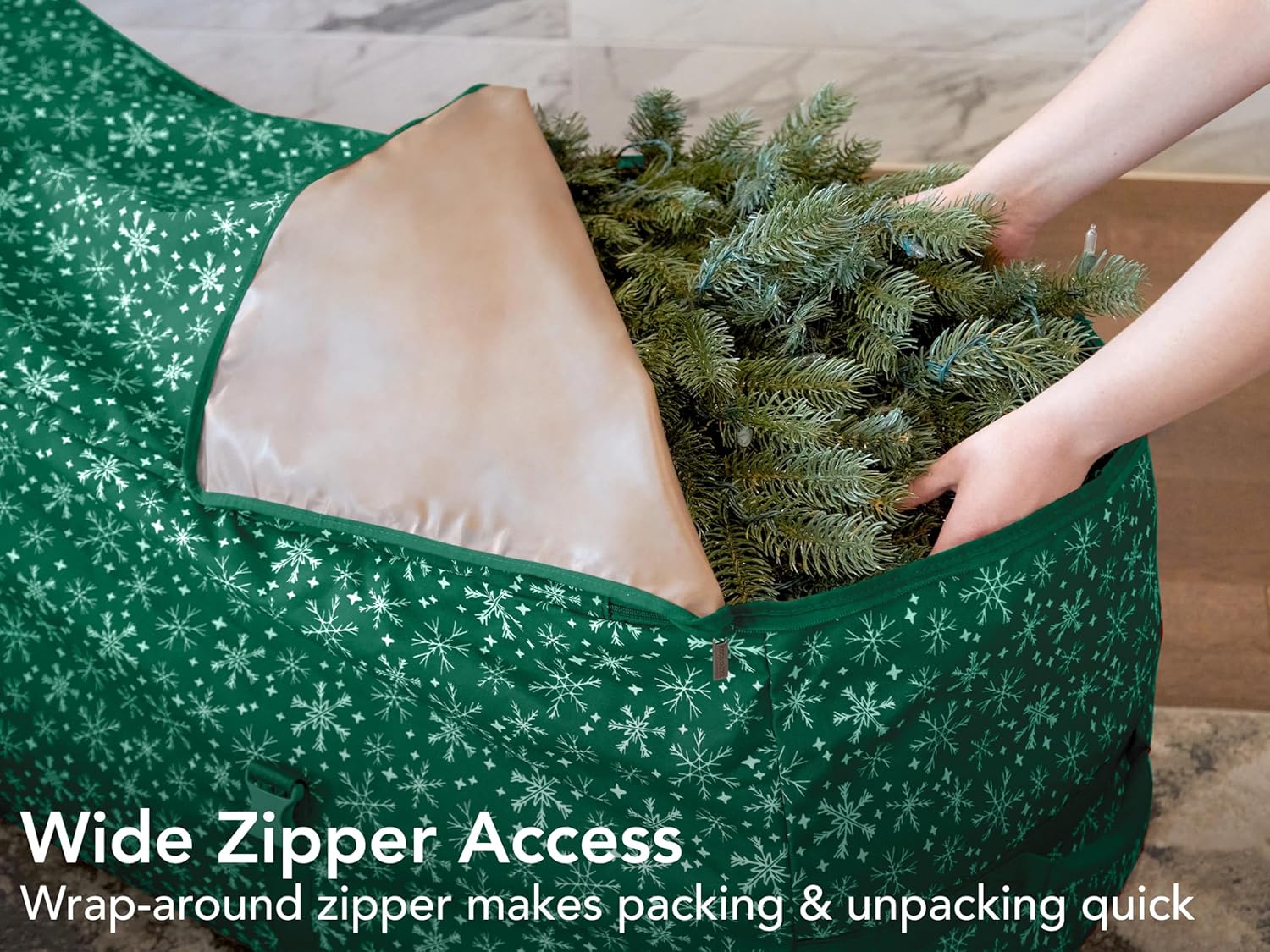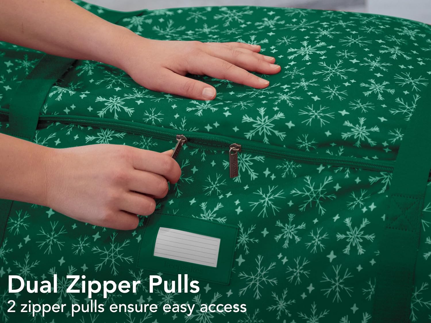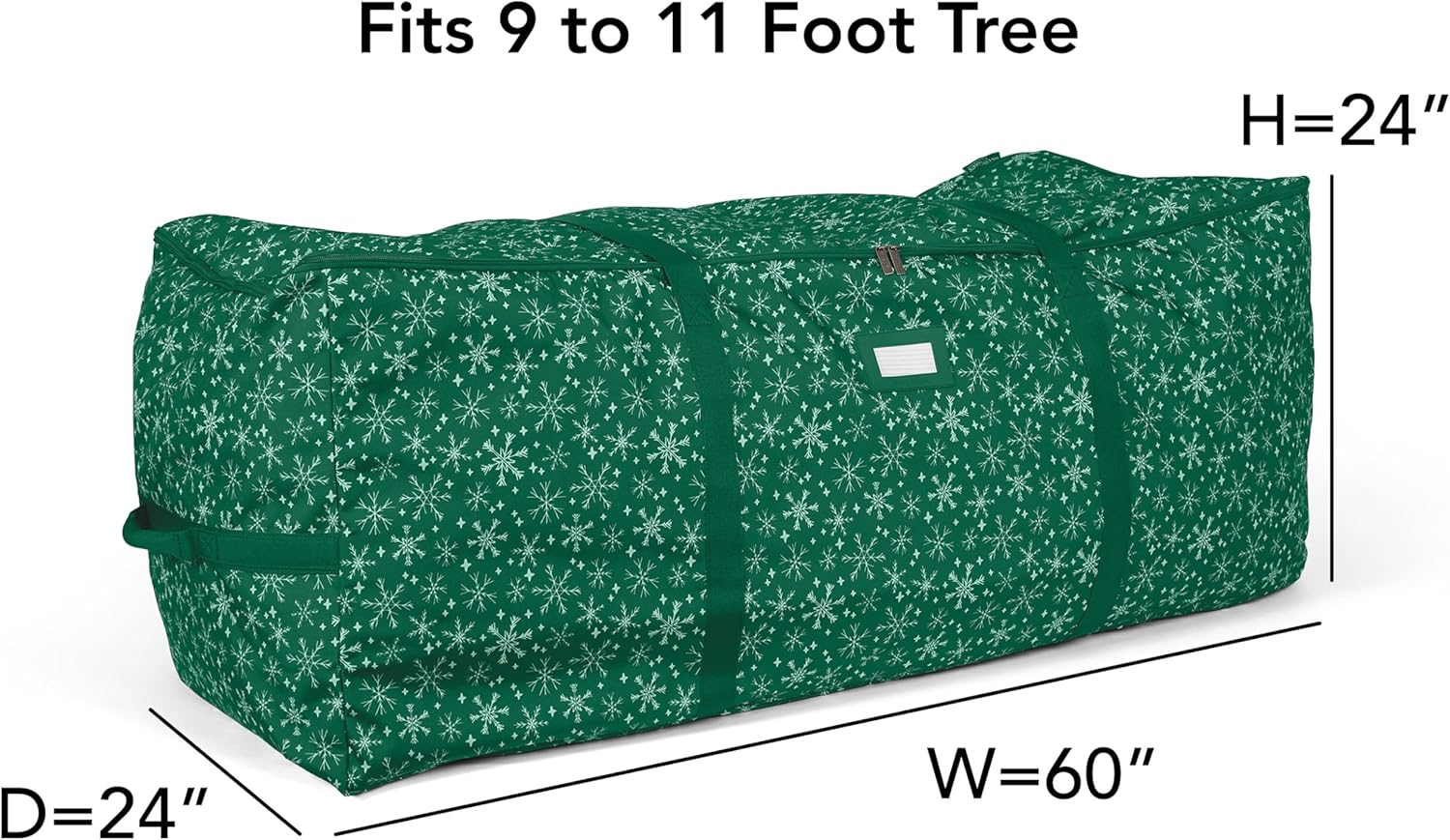 Covermates Keepsakes Christmas Tree Rolling Cinch Bag - Superior Protection - Padded Handles - Holiday Storage, Green Snowflake