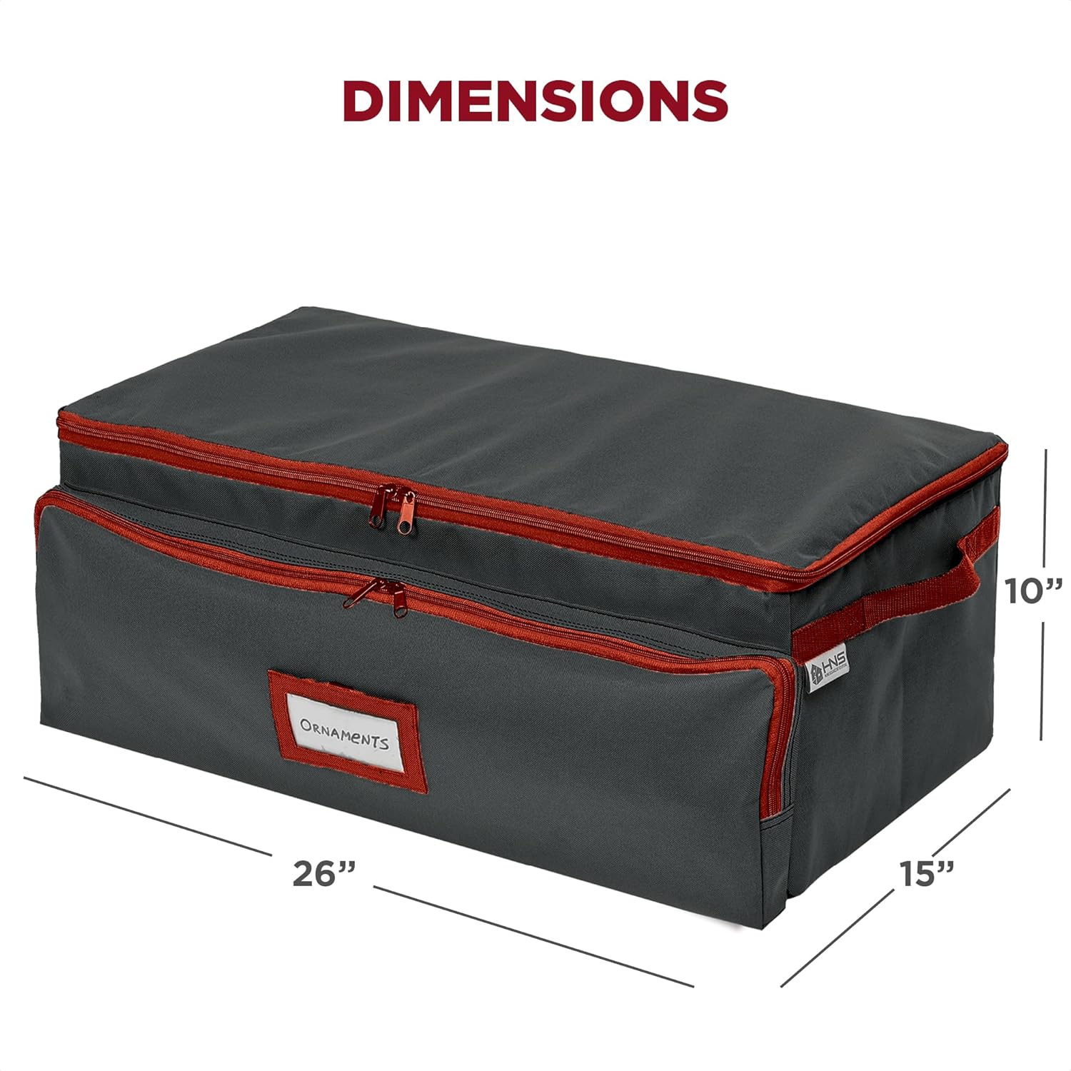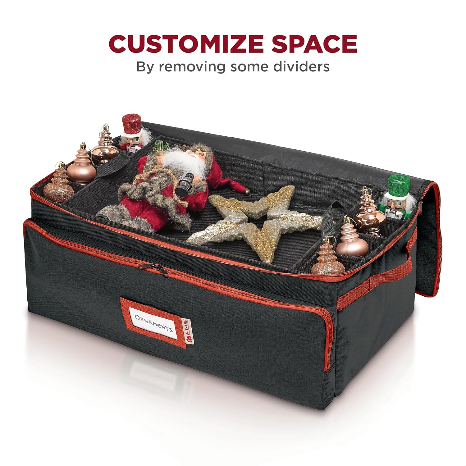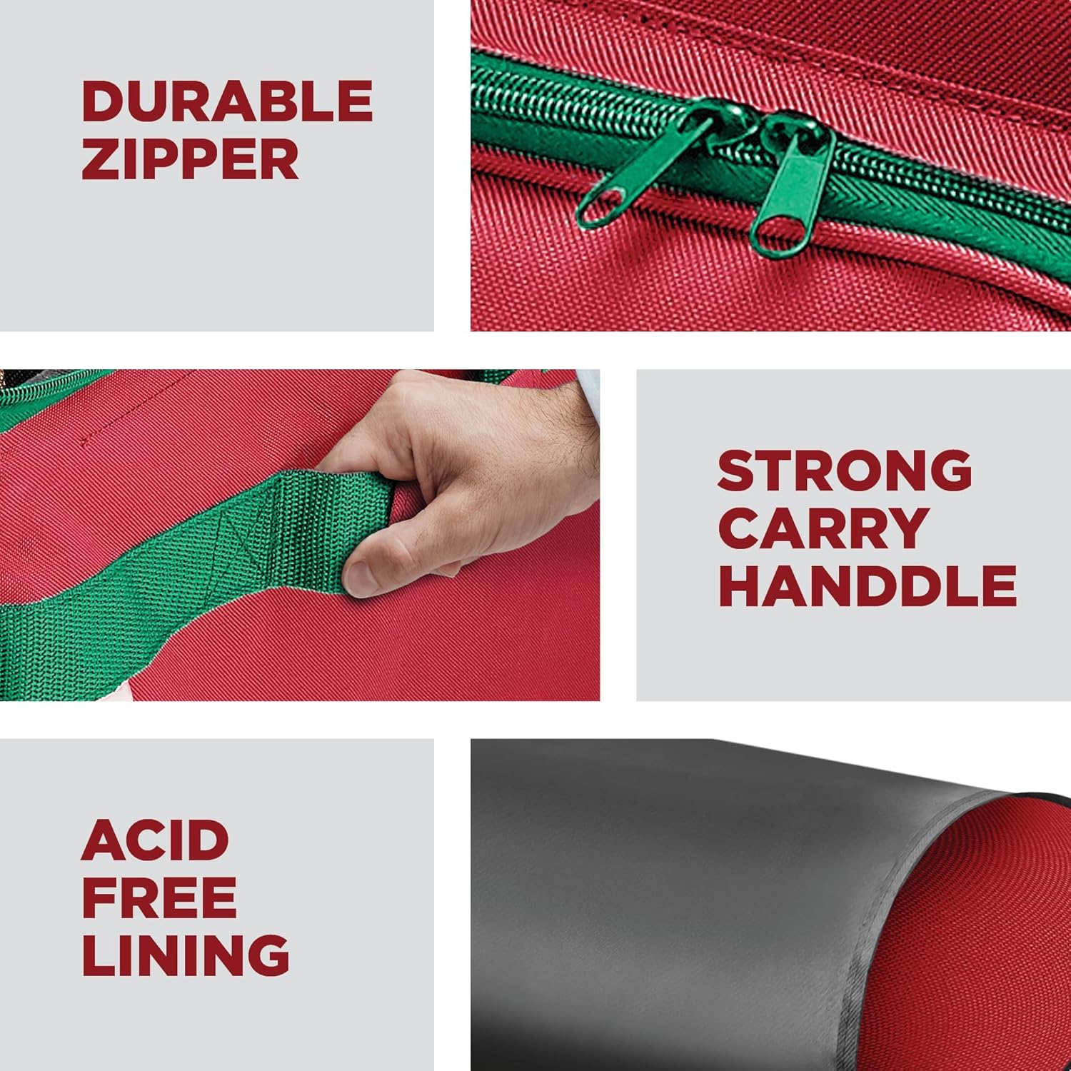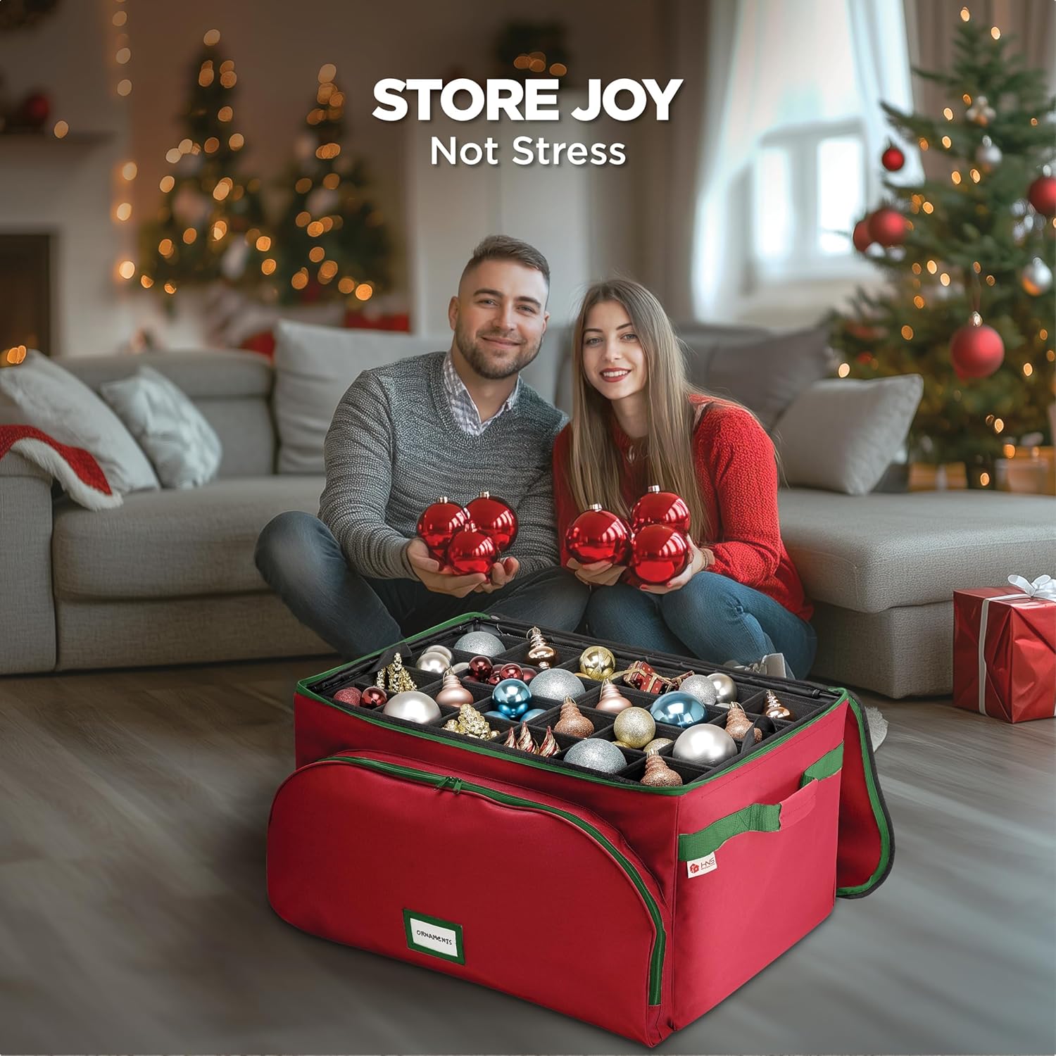 HOLDN’ STORAGE Premium Christmas Ornament Storage Container - Holds Up to 72-4” Ornaments Durable 600D Fabric - Adjustable Dividers - 3 Individual Trays - Metal Frame - Red