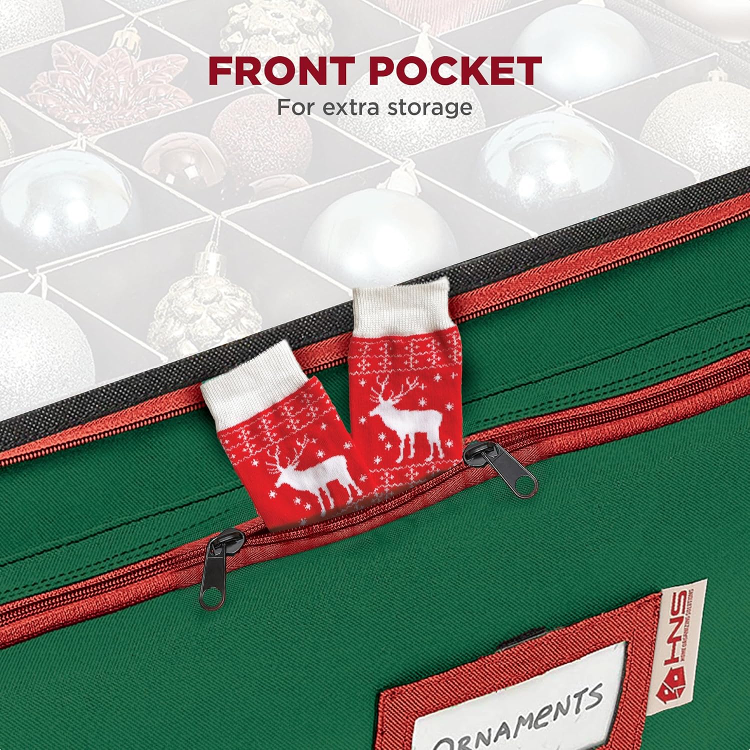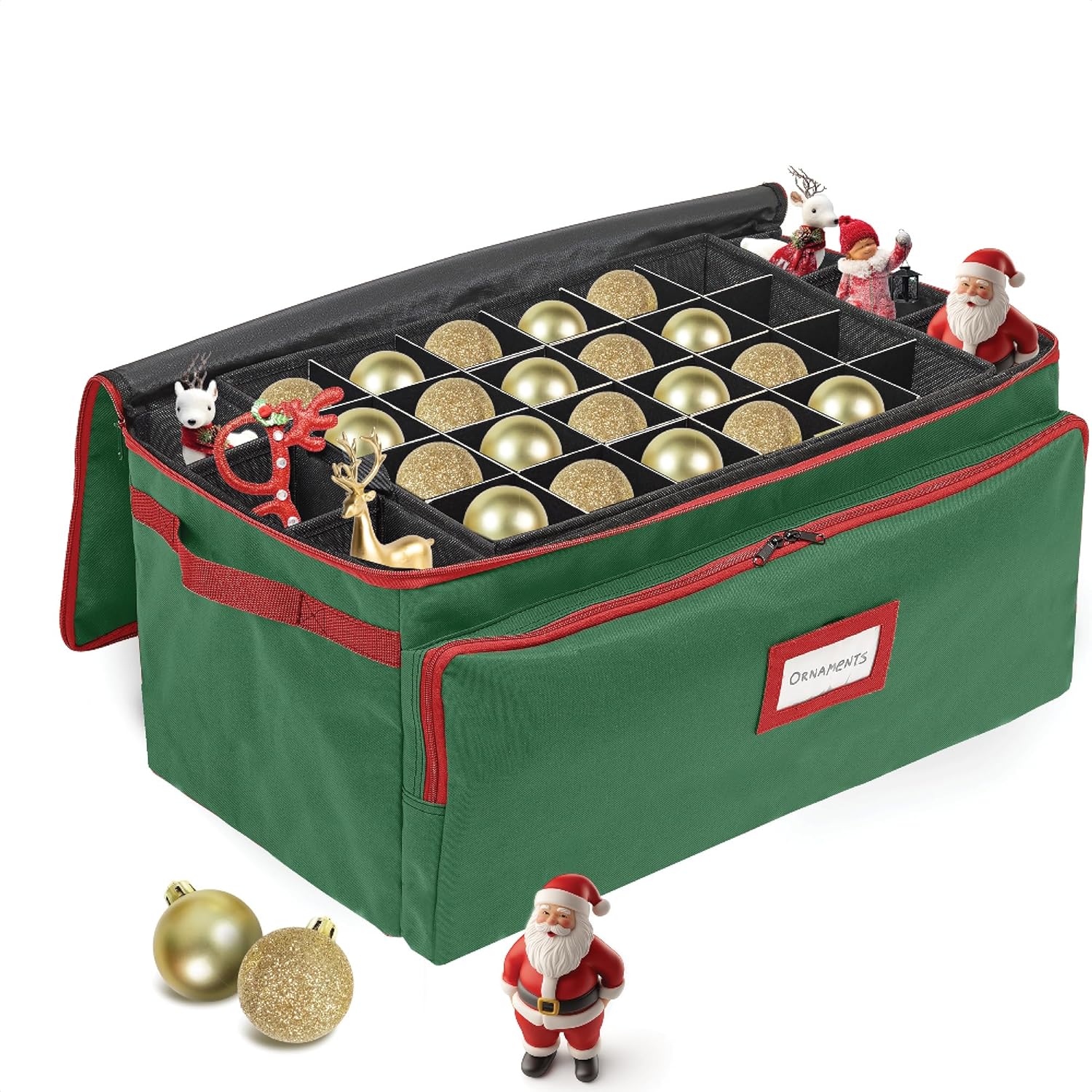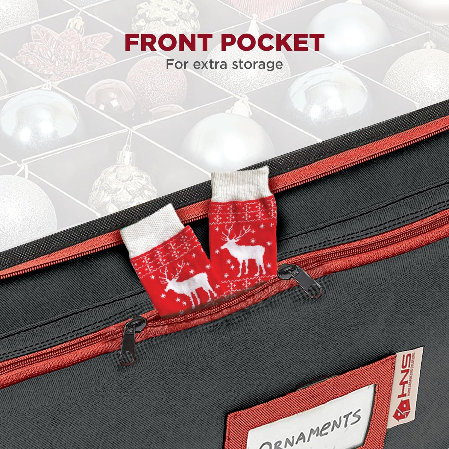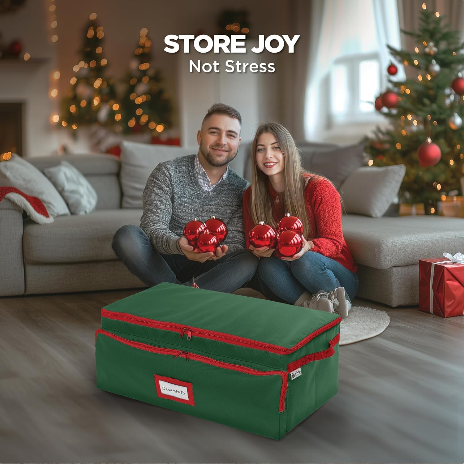 HOLDN’ STORAGE Premium Christmas Ornament Storage Container - Holds Up to 72-4” Ornaments Durable 600D Fabric - Adjustable Dividers - 3 Individual Trays - Metal Frame - Red