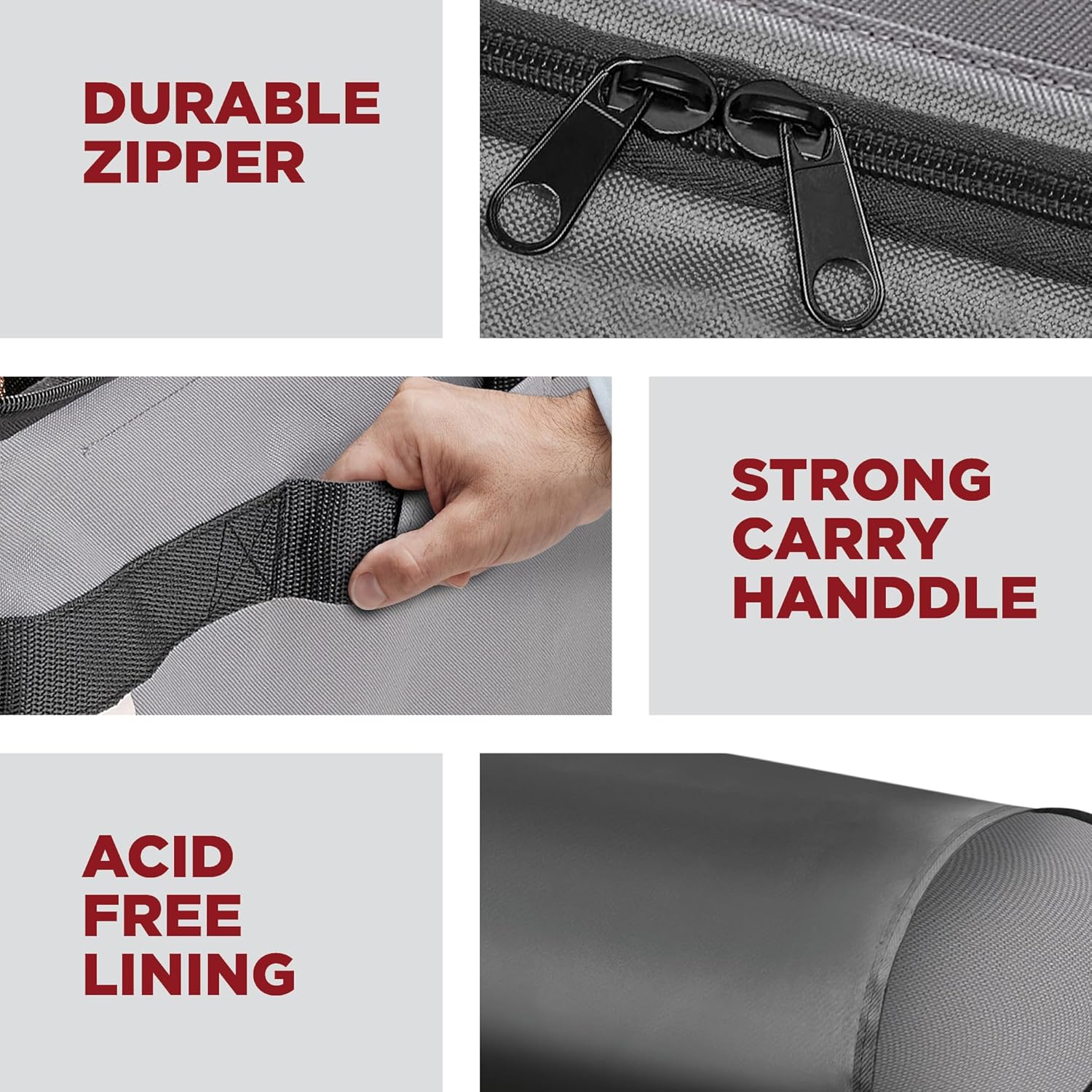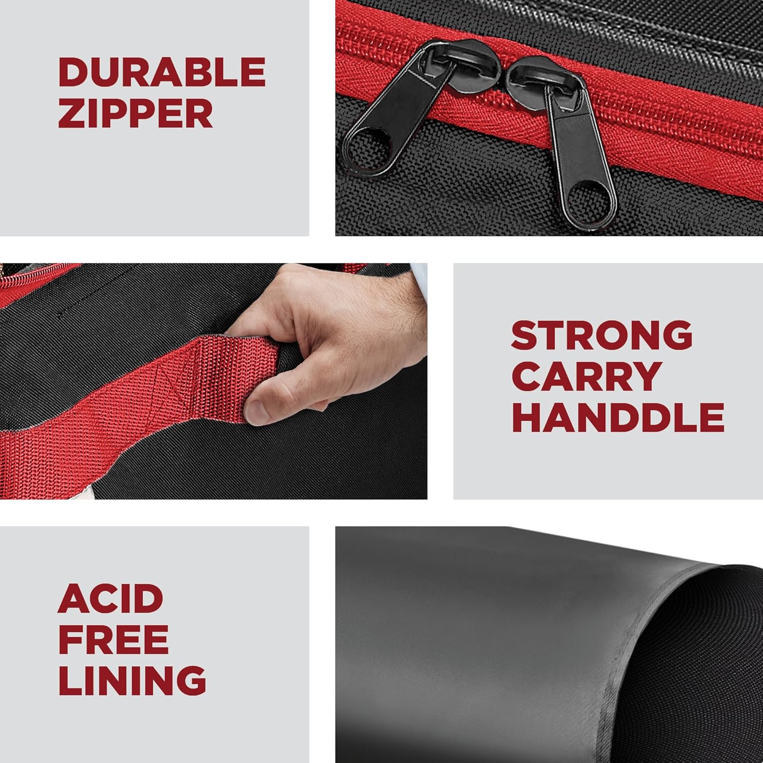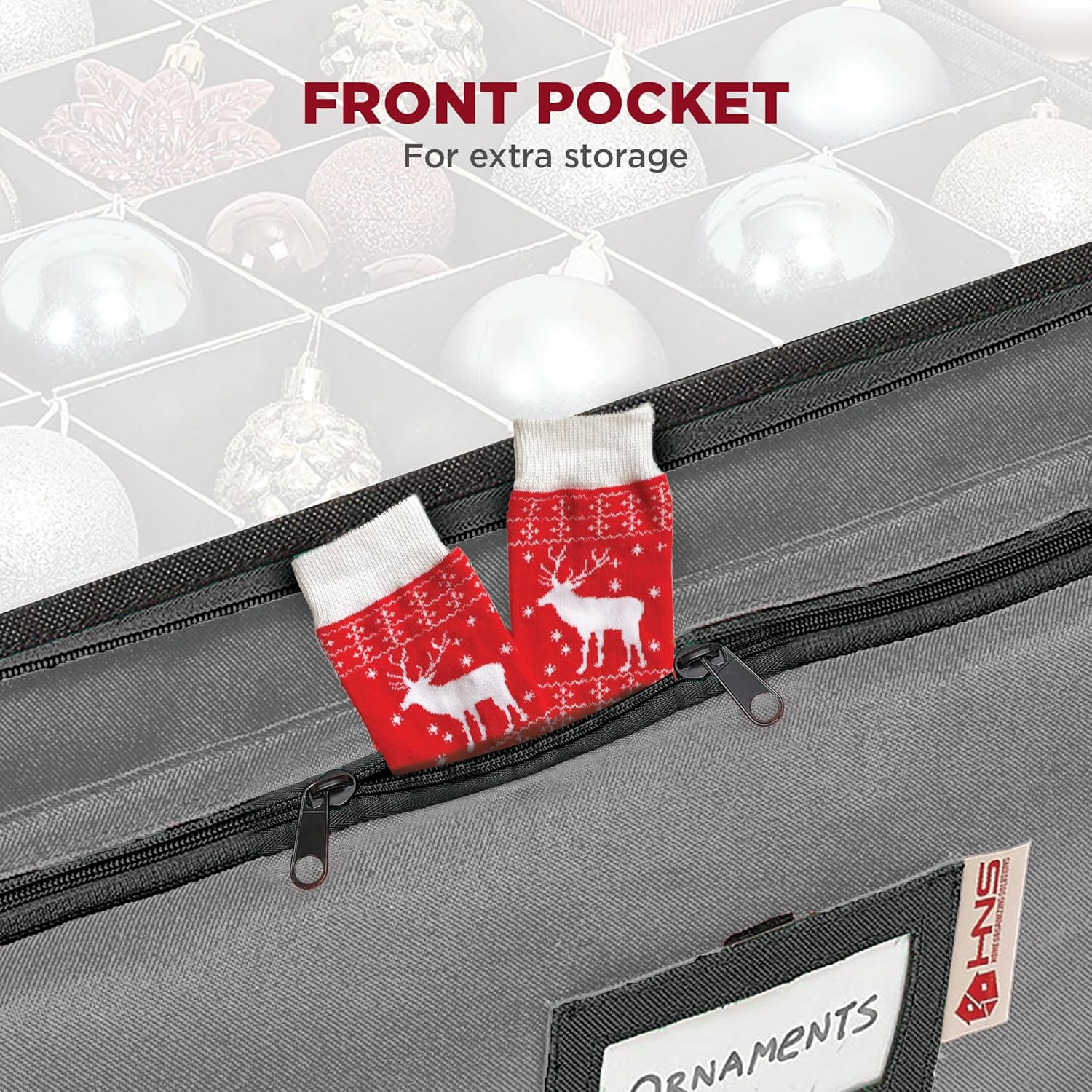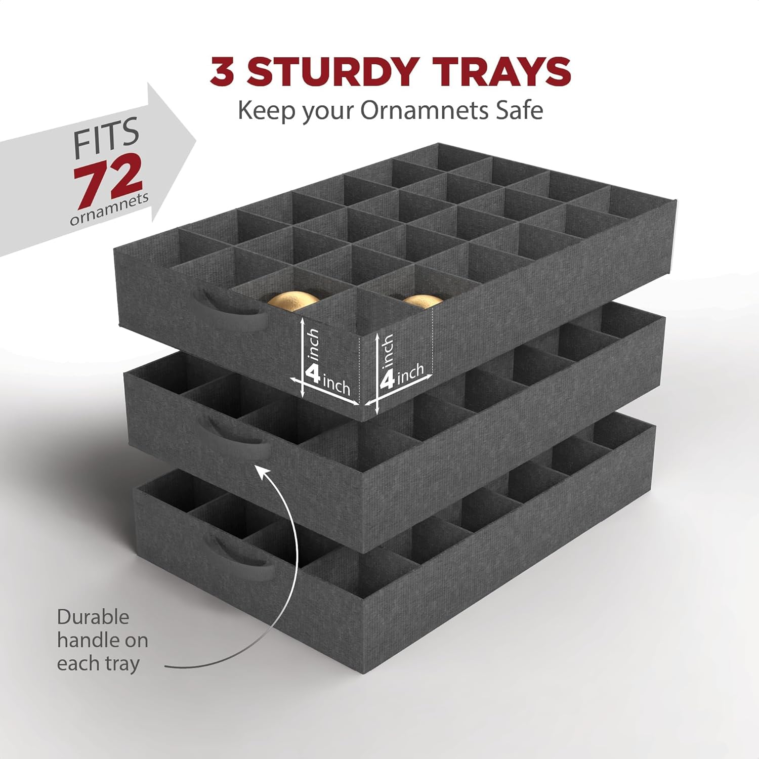 HOLDN’ STORAGE Premium Christmas Ornament Storage Container - Holds Up to 72-4” Ornaments Durable 600D Fabric - Adjustable Dividers - 3 Individual Trays - Metal Frame - Red