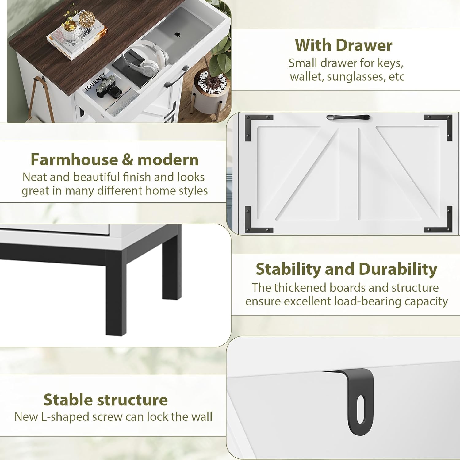 GDFStudio Kezlam 31.5 Inch Retro White Shoe Storage Cabinet, Mid-Century Vintage Freestanding Shoe Cabinet with 2 Flip Drawers, Adjustable Drawer, Suitable for Hallway and Entryway, Staircase Corner