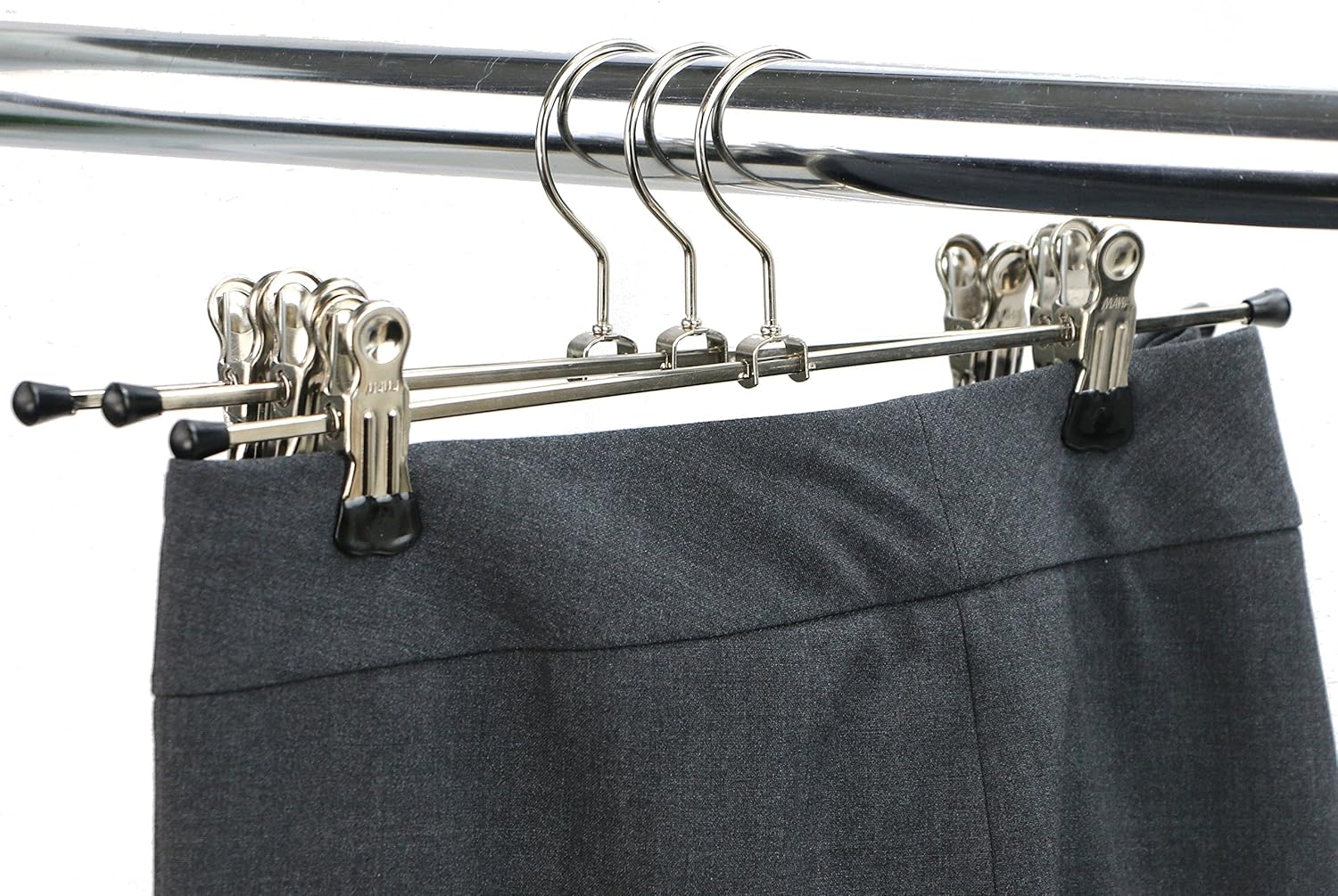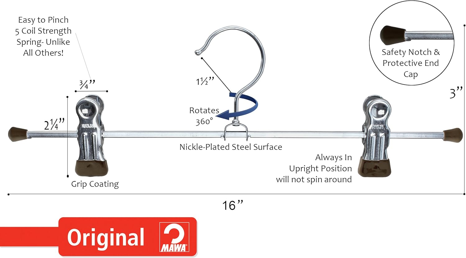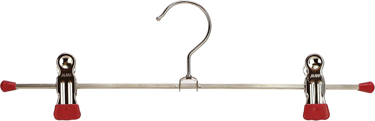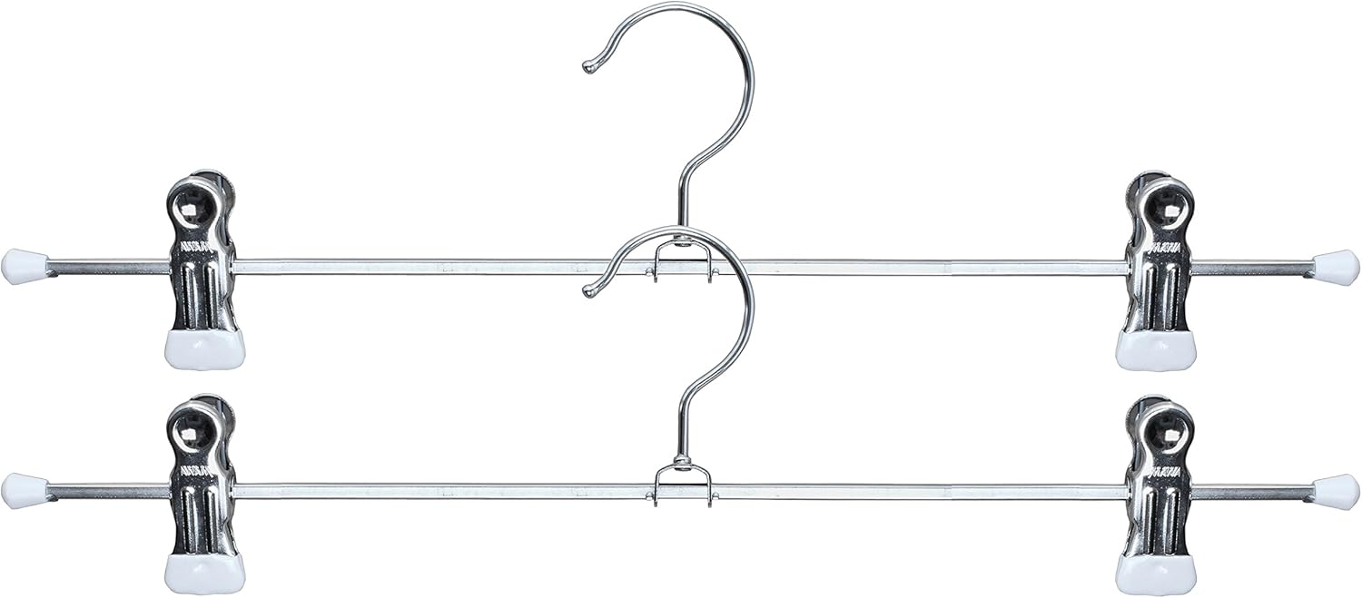 Mawa by Reston Lloyd Non-Slip Space-Saving Clothes Hanger for Pants & Skirts with Two Clips, Style K/40D, 15 3/4" L, White | (Pack of 50)