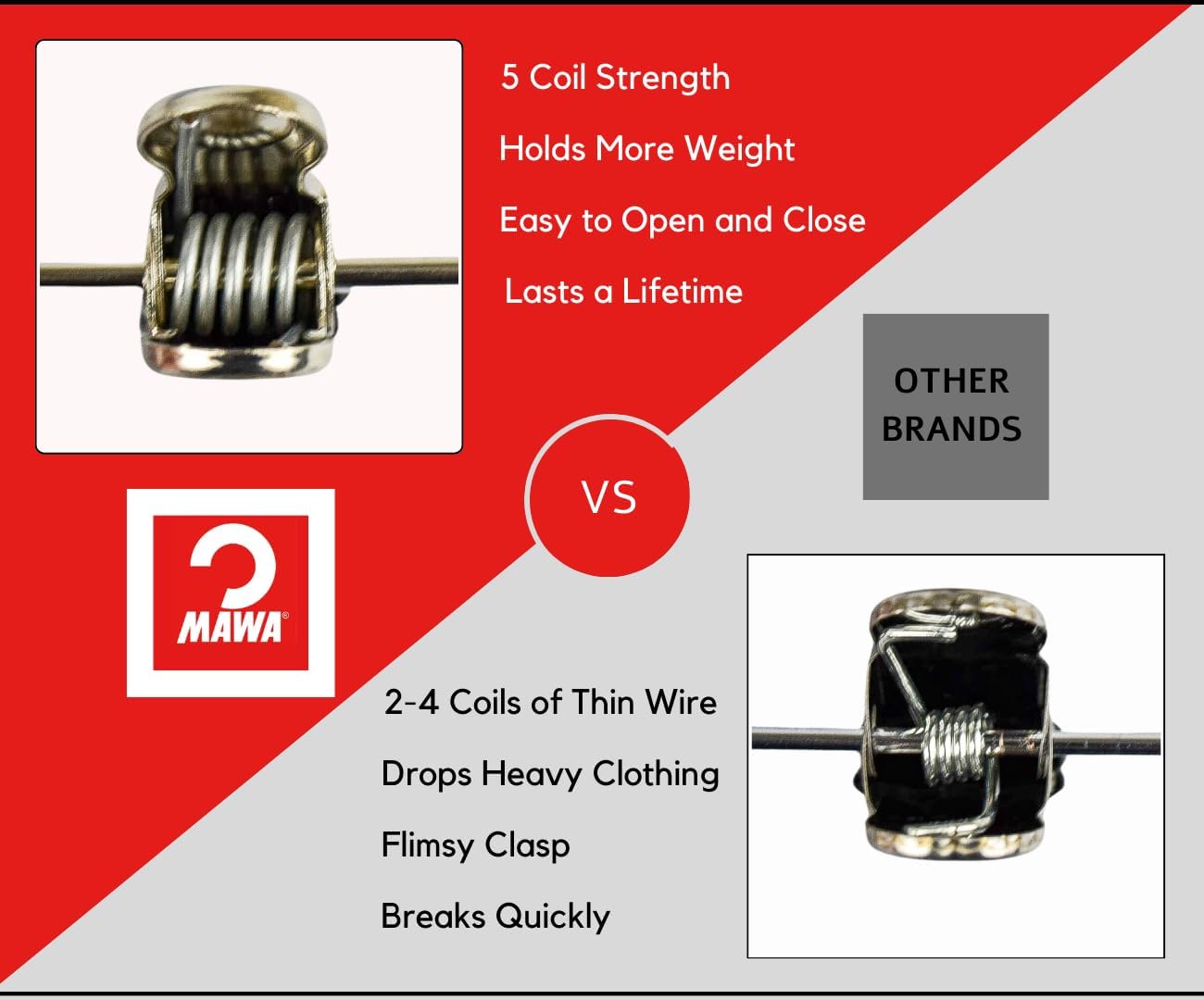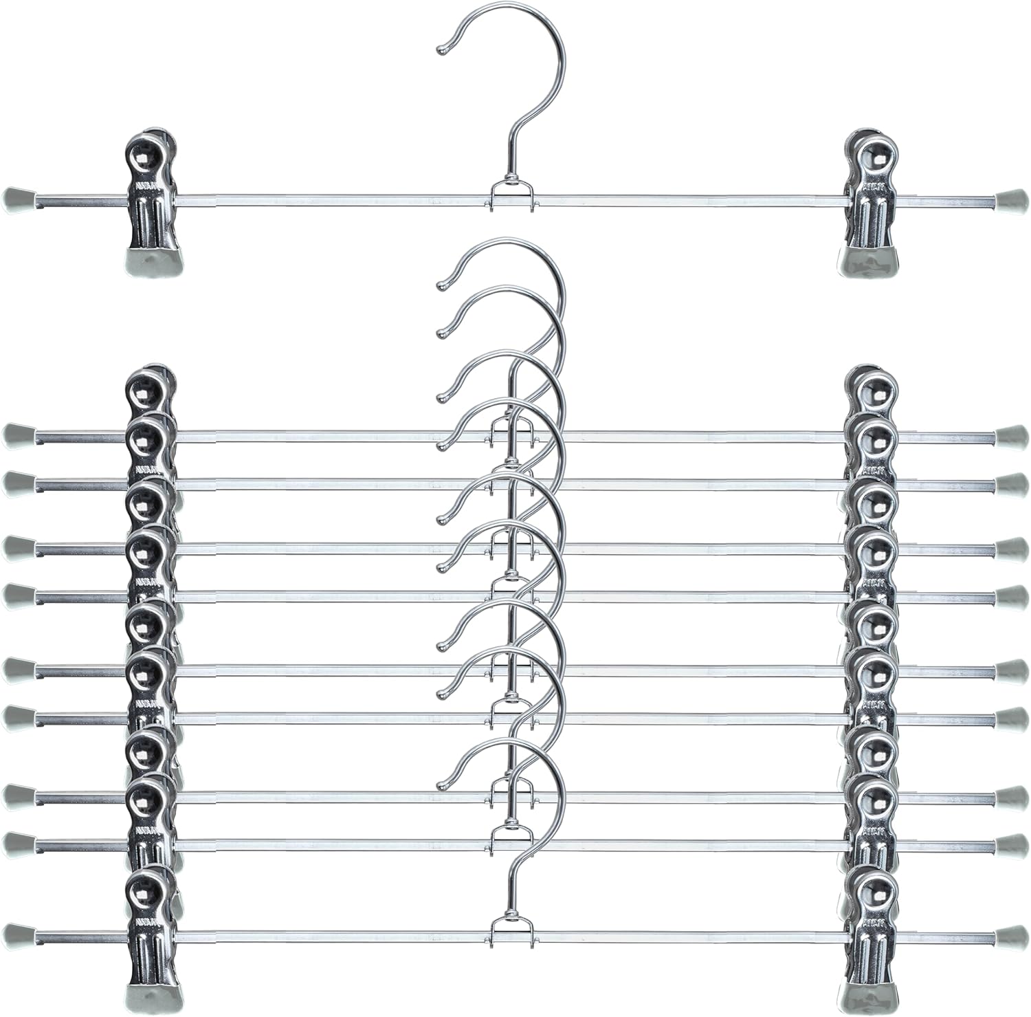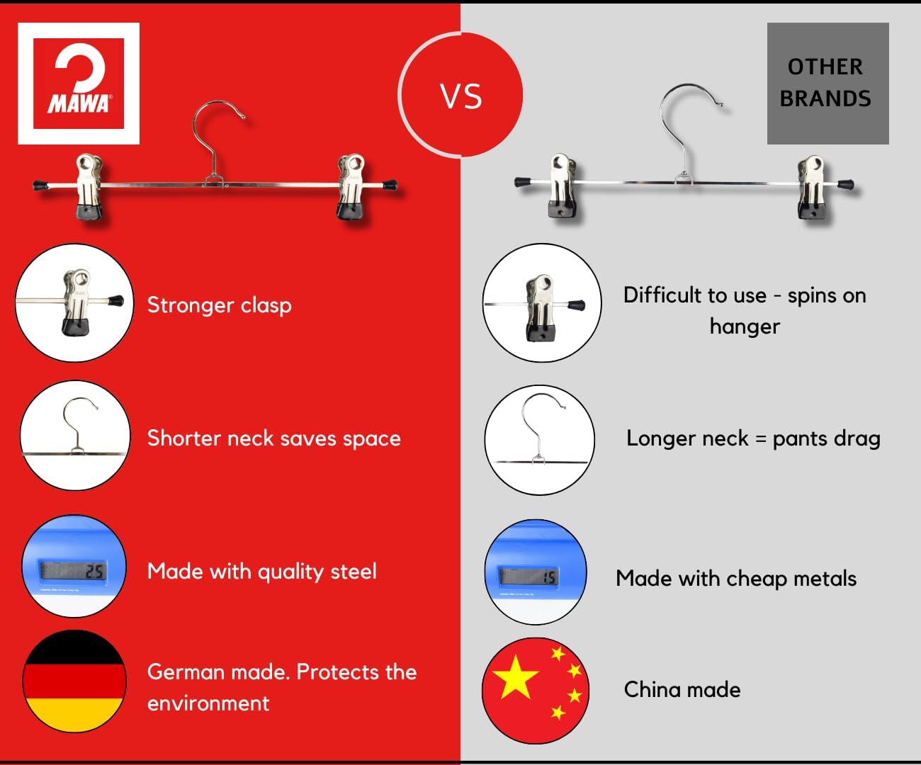 Mawa by Reston Lloyd Non-Slip Space-Saving Clothes Hanger for Pants & Skirts with Two Clips, Style K/40D, 15 3/4" L, White | (Pack of 50)