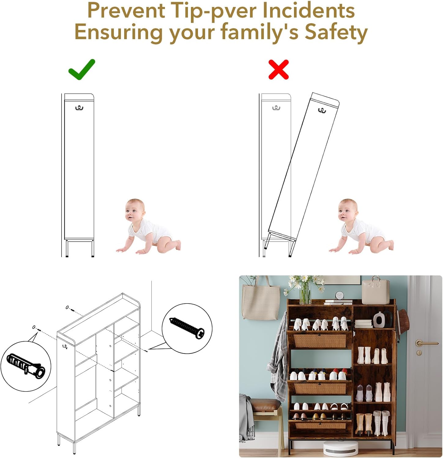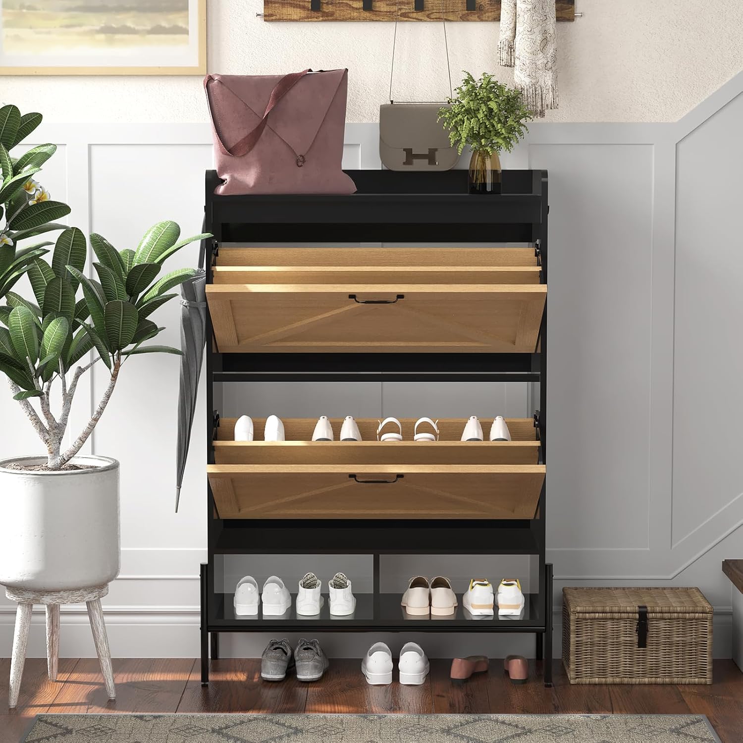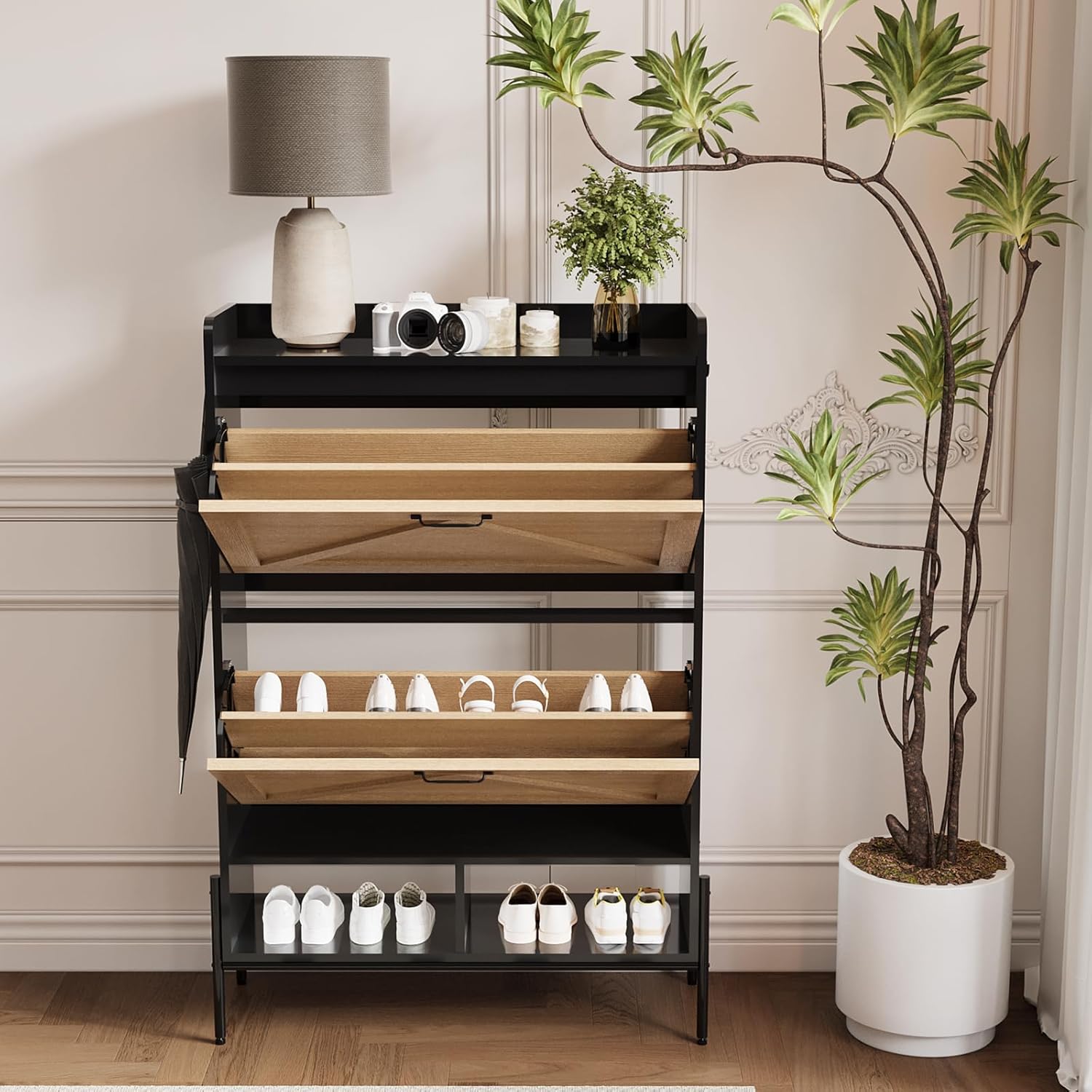Nicetree Shoe Cabinet Storage for Entryway, Narrow Slim Shoe Organizers with 4 Flip Drawers, Freestanding Large Shoe Rack with 3-Tier Adjustable Shelves for Hallway