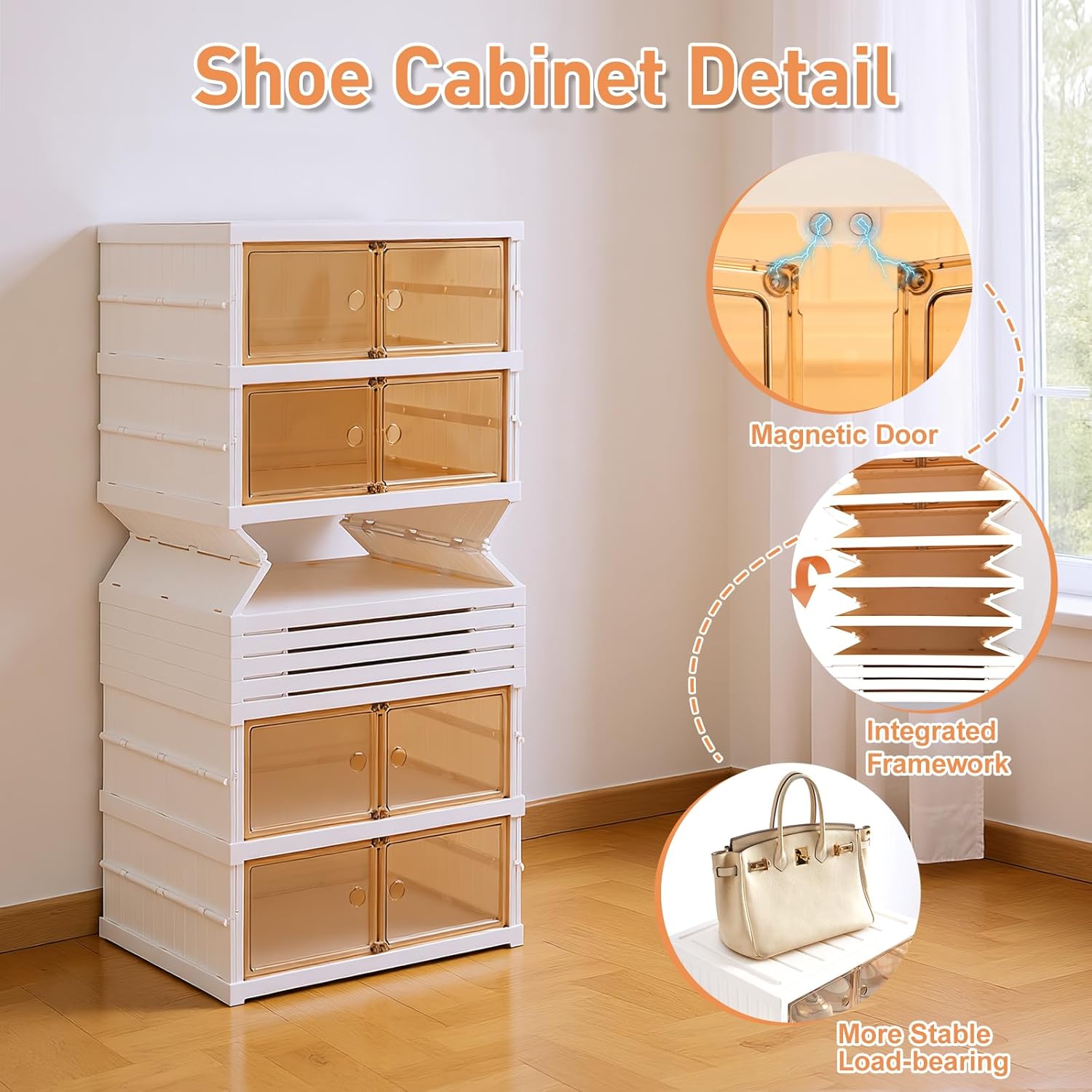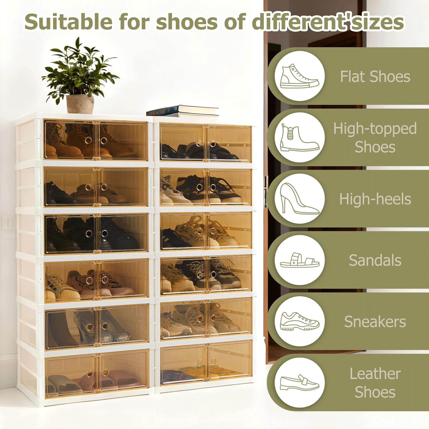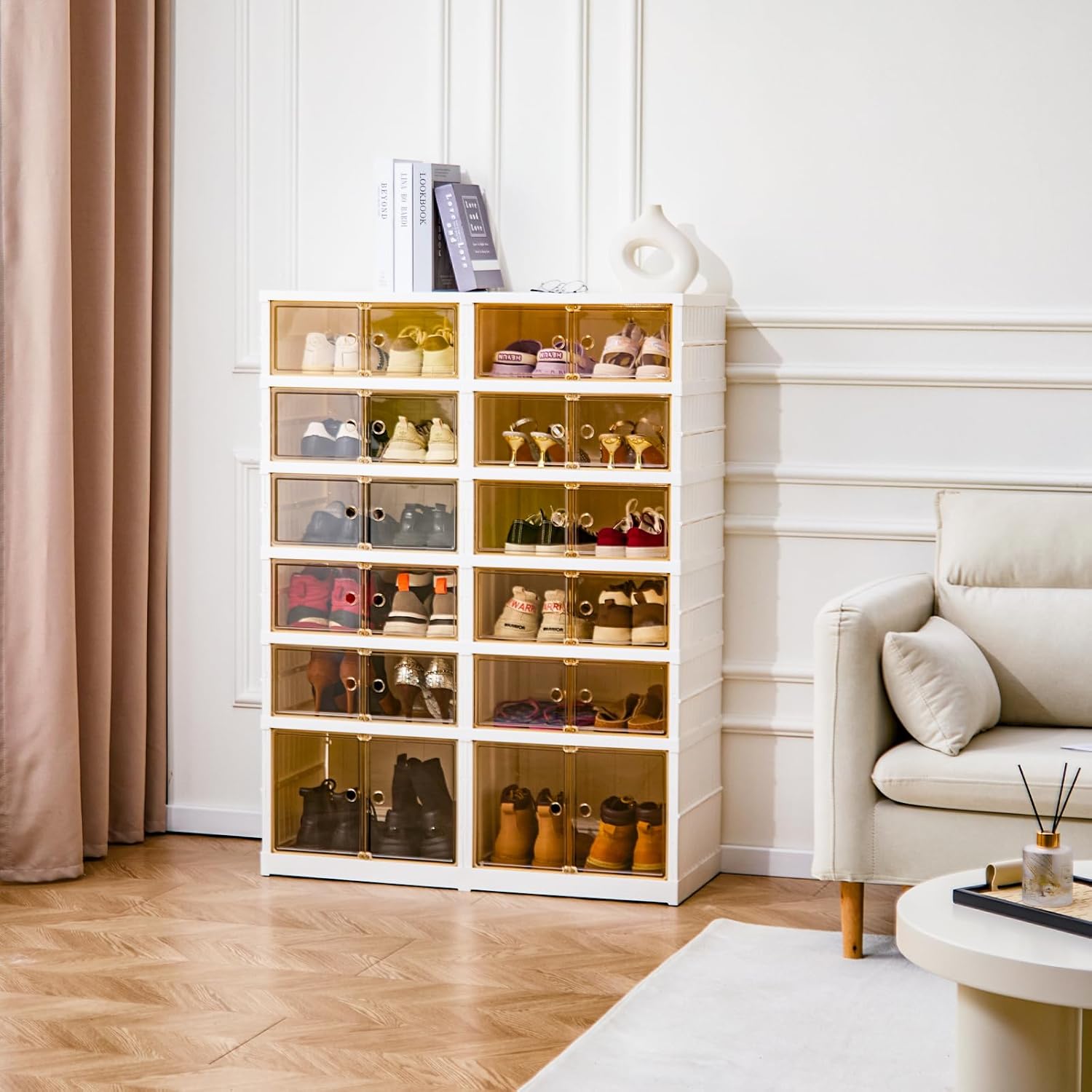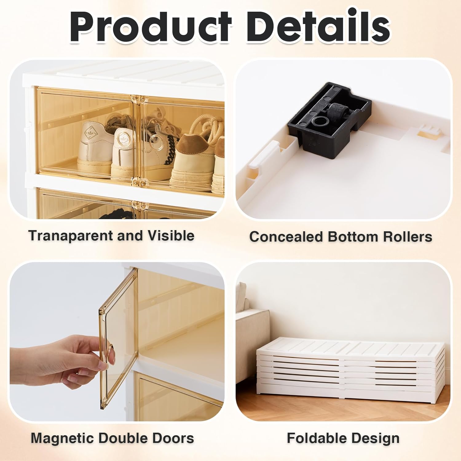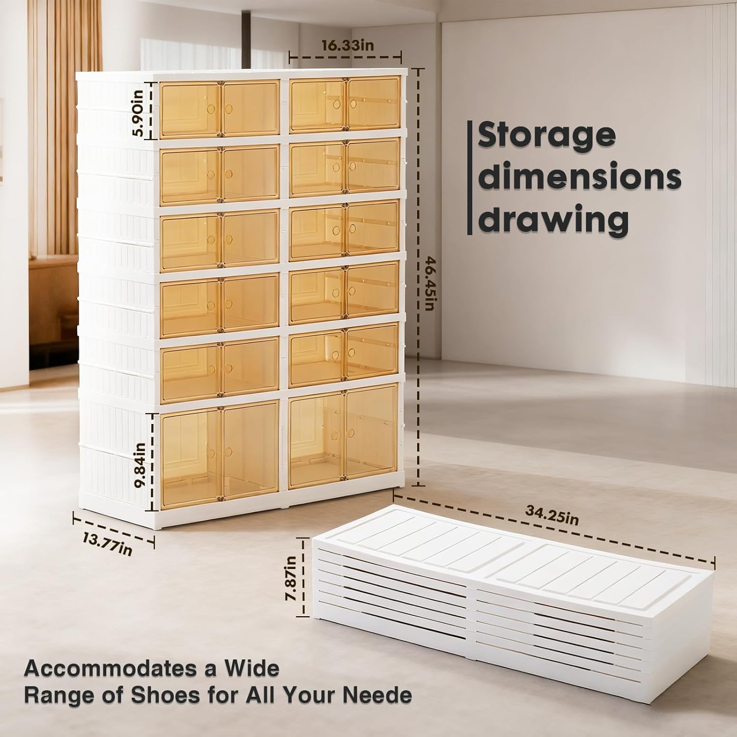 SAYMA 6 Tiers-24 Pairs Foldable Shoe Cabinet with Doors & Wheel 10Grids + 2Large grids Collapsible Shoe Rack Organizer Large Plastic Folding Shoe Cabinet for Entryway Living Room (6 Tiers-24 Pairs)