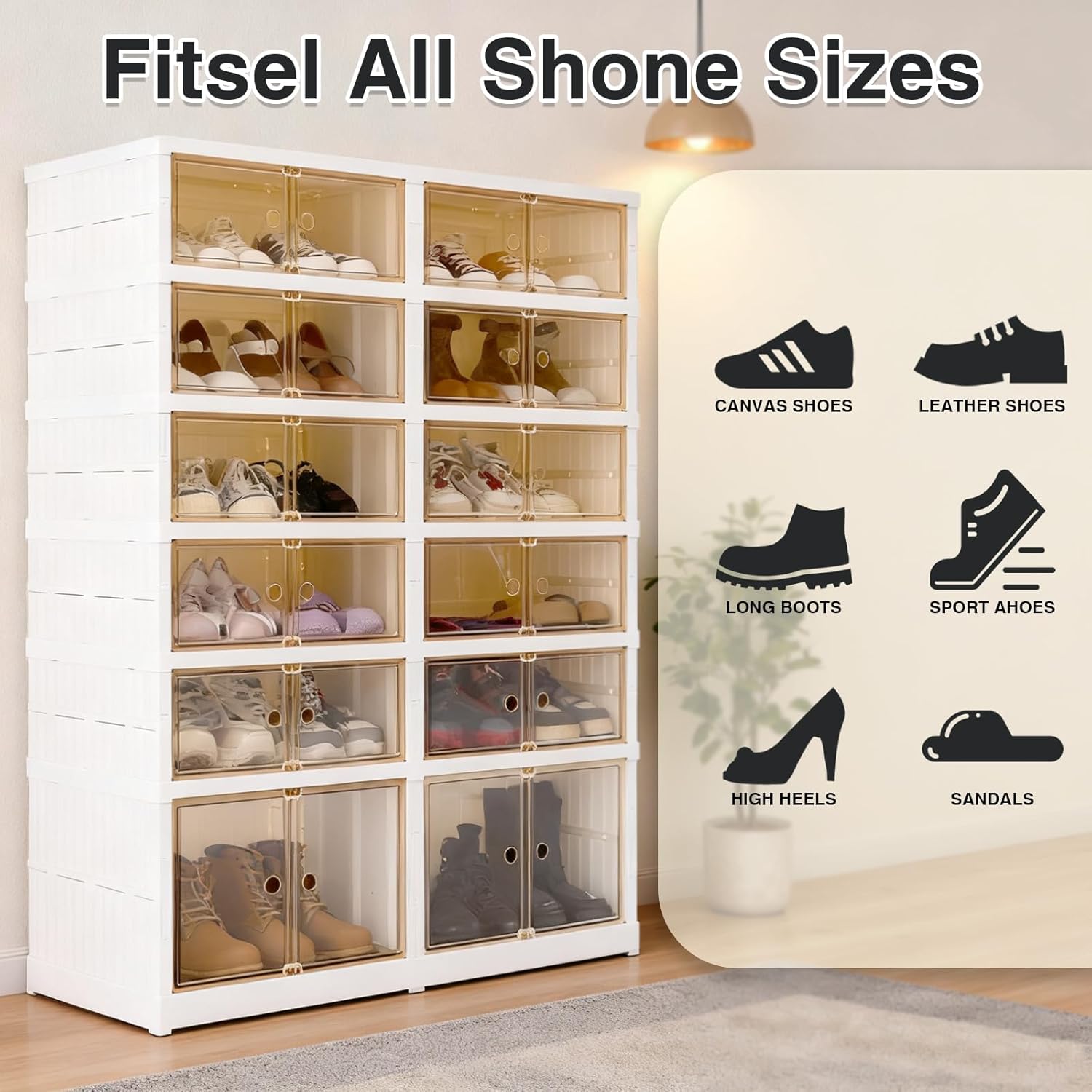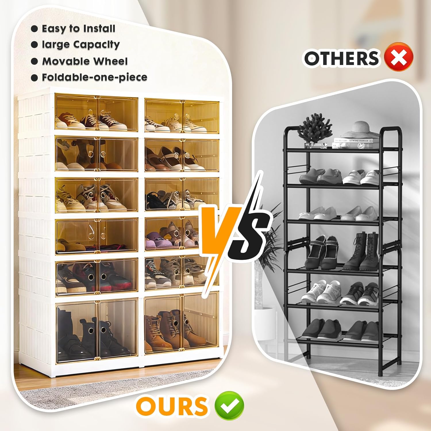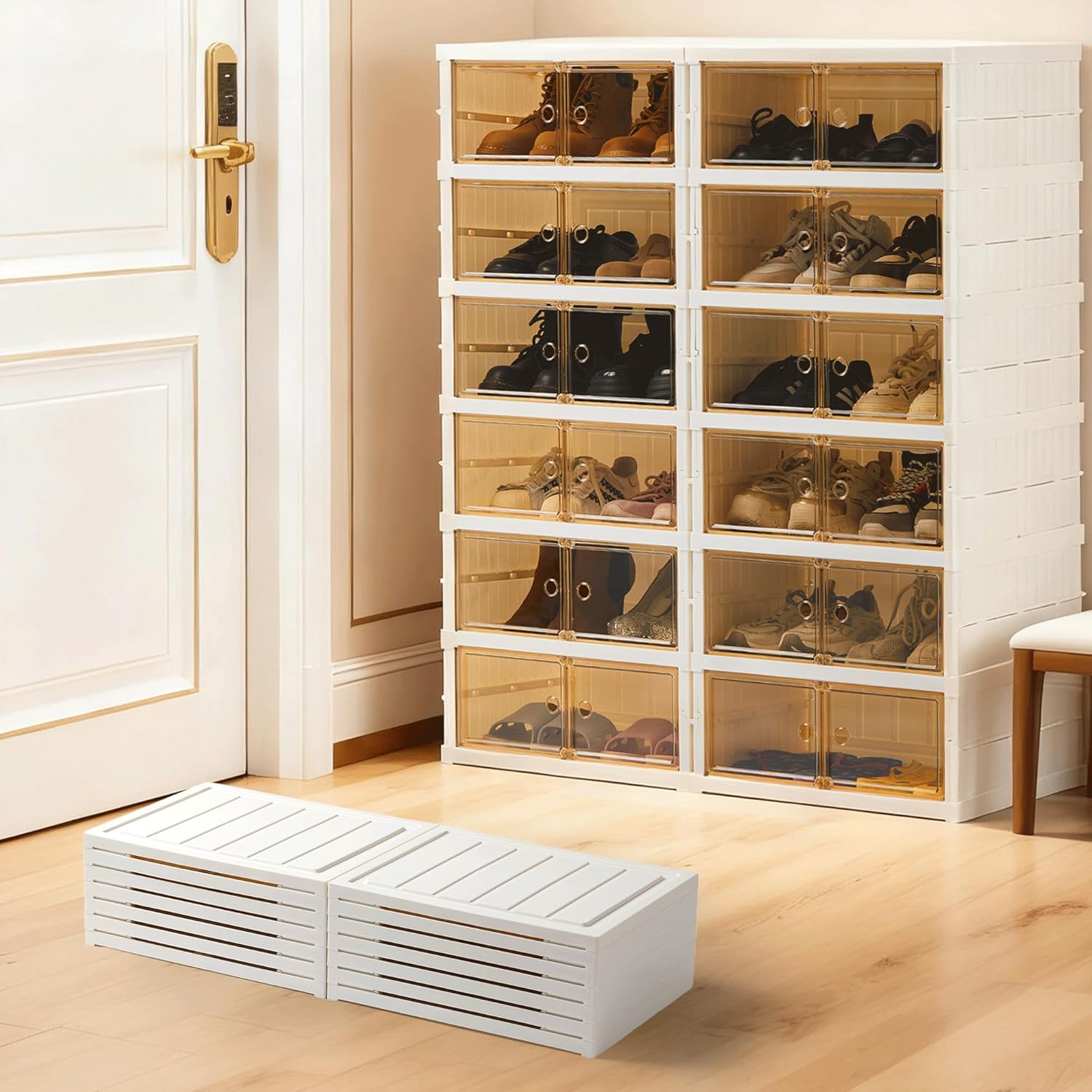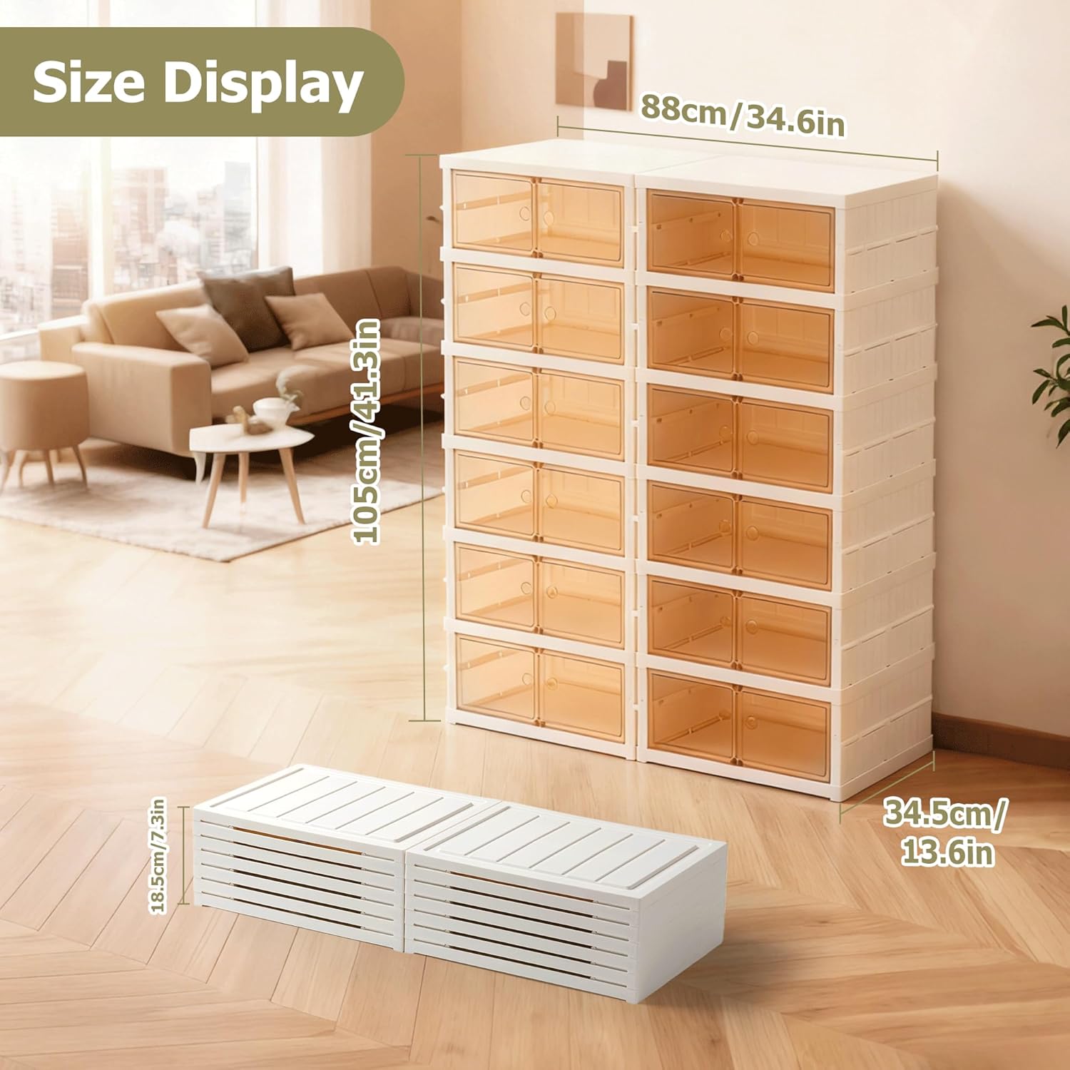 SAYMA 6 Tiers-24 Pairs Foldable Shoe Cabinet with Doors & Wheel 10Grids + 2Large grids Collapsible Shoe Rack Organizer Large Plastic Folding Shoe Cabinet for Entryway Living Room (6 Tiers-24 Pairs)