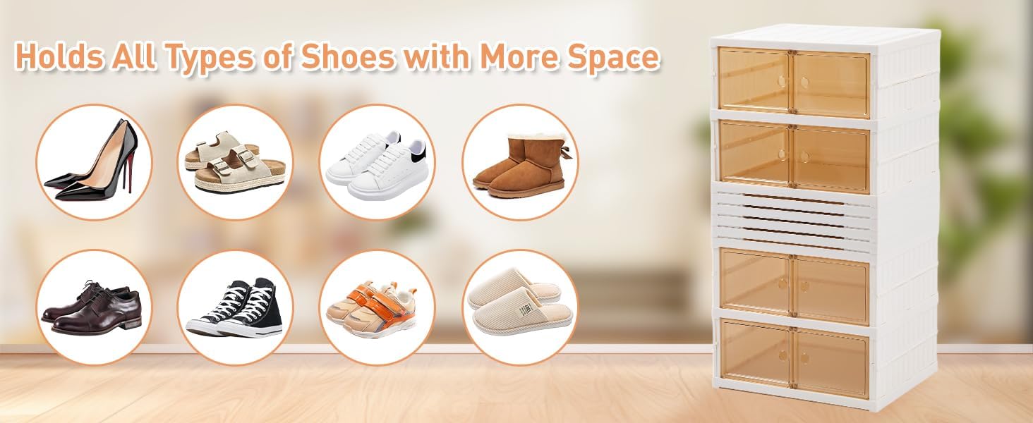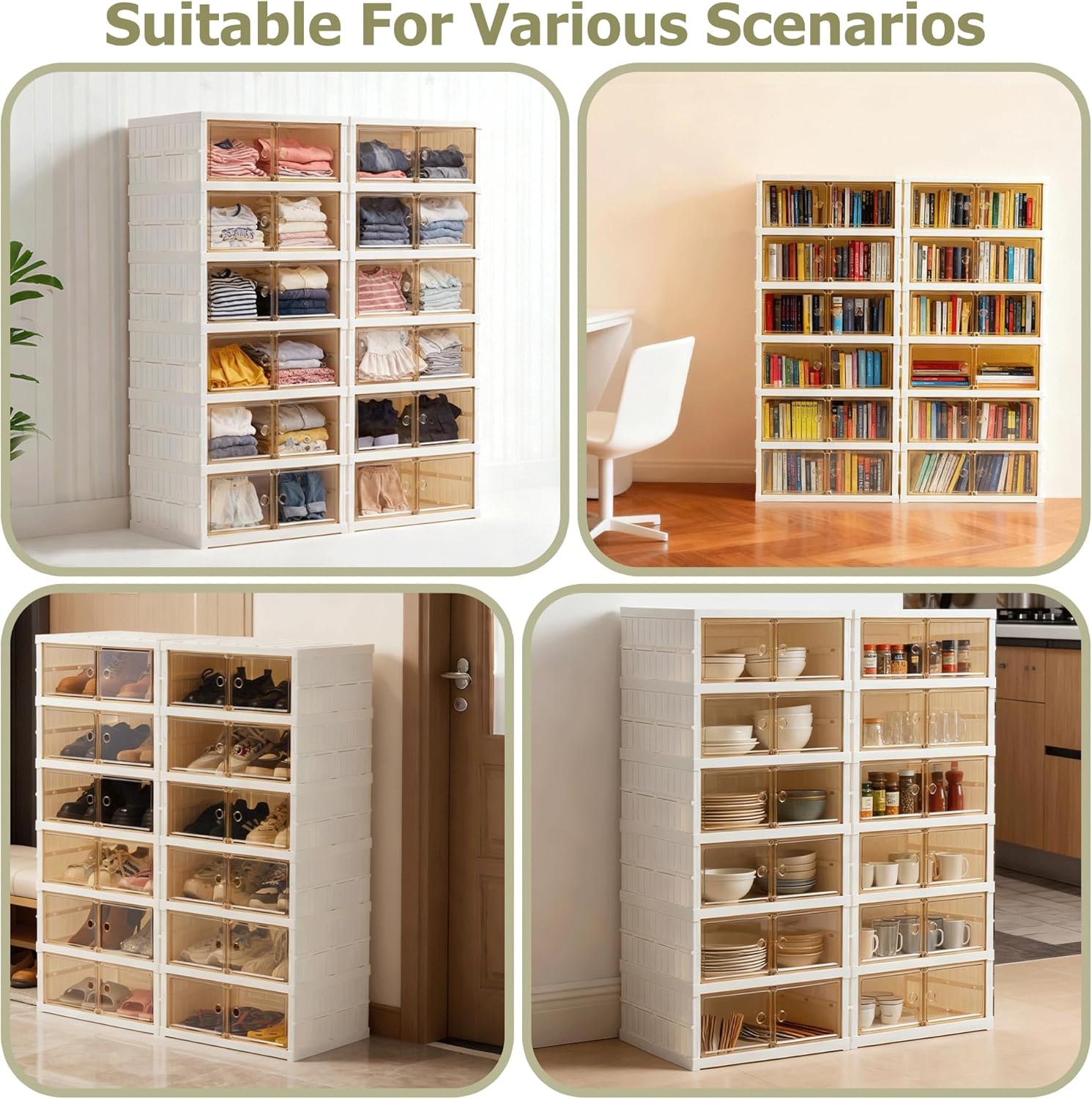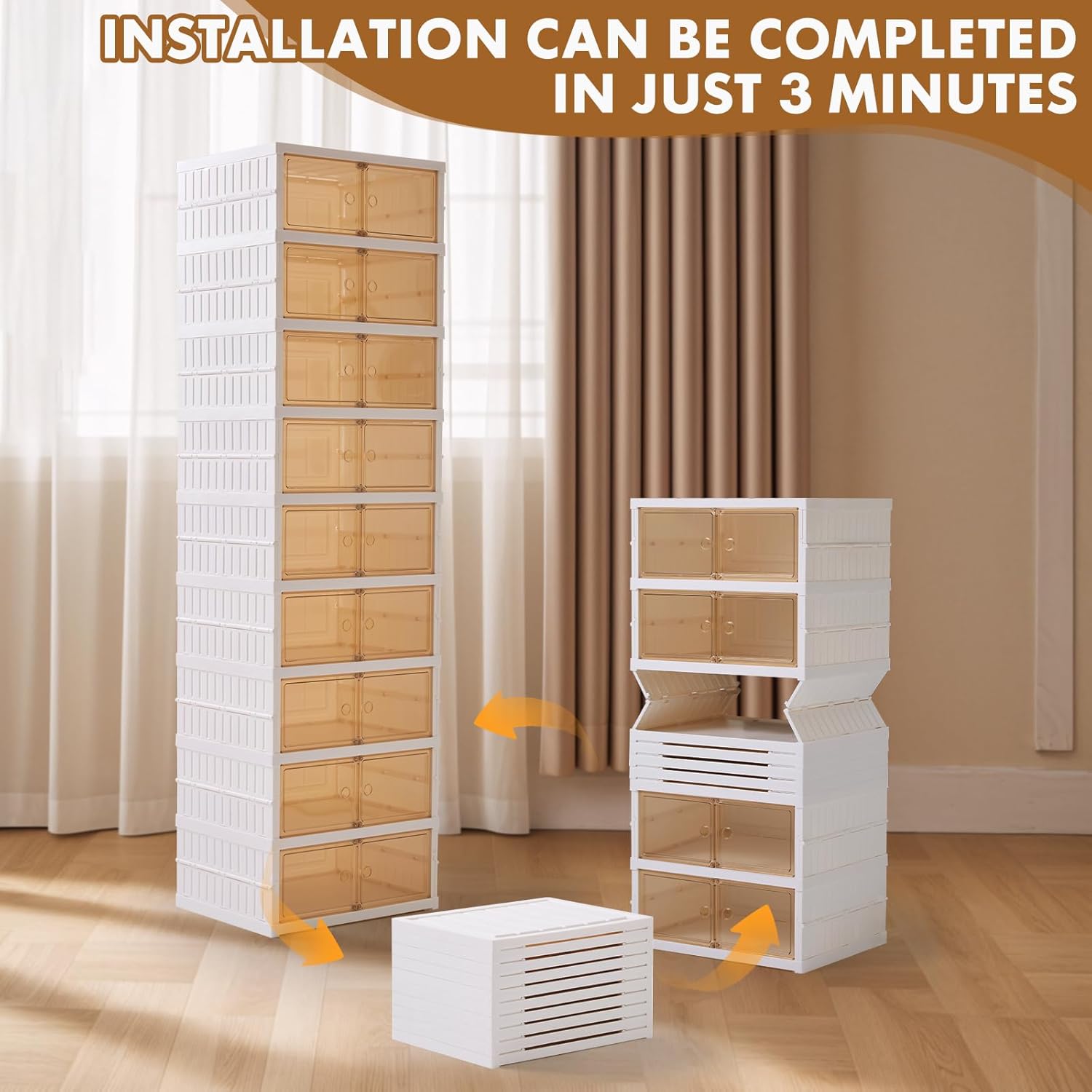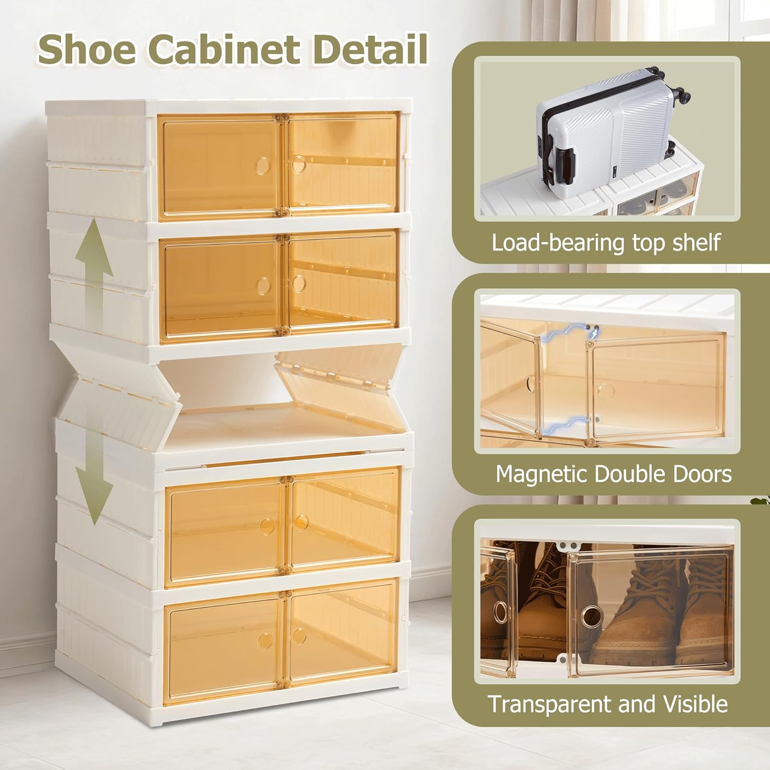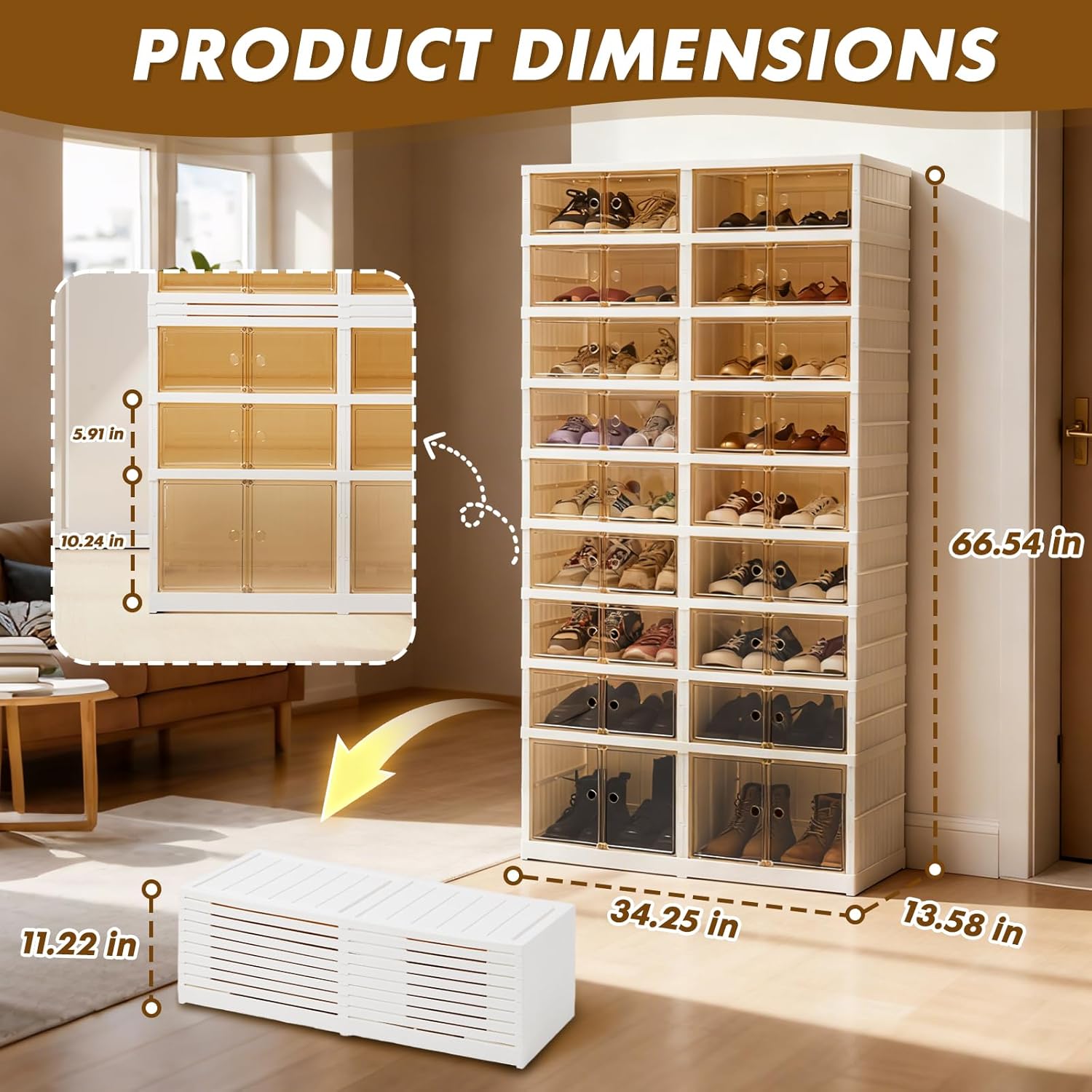 SAYMA 6 Tiers-24 Pairs Foldable Shoe Cabinet with Doors & Wheel 10Grids + 2Large grids Collapsible Shoe Rack Organizer Large Plastic Folding Shoe Cabinet for Entryway Living Room (6 Tiers-24 Pairs)
