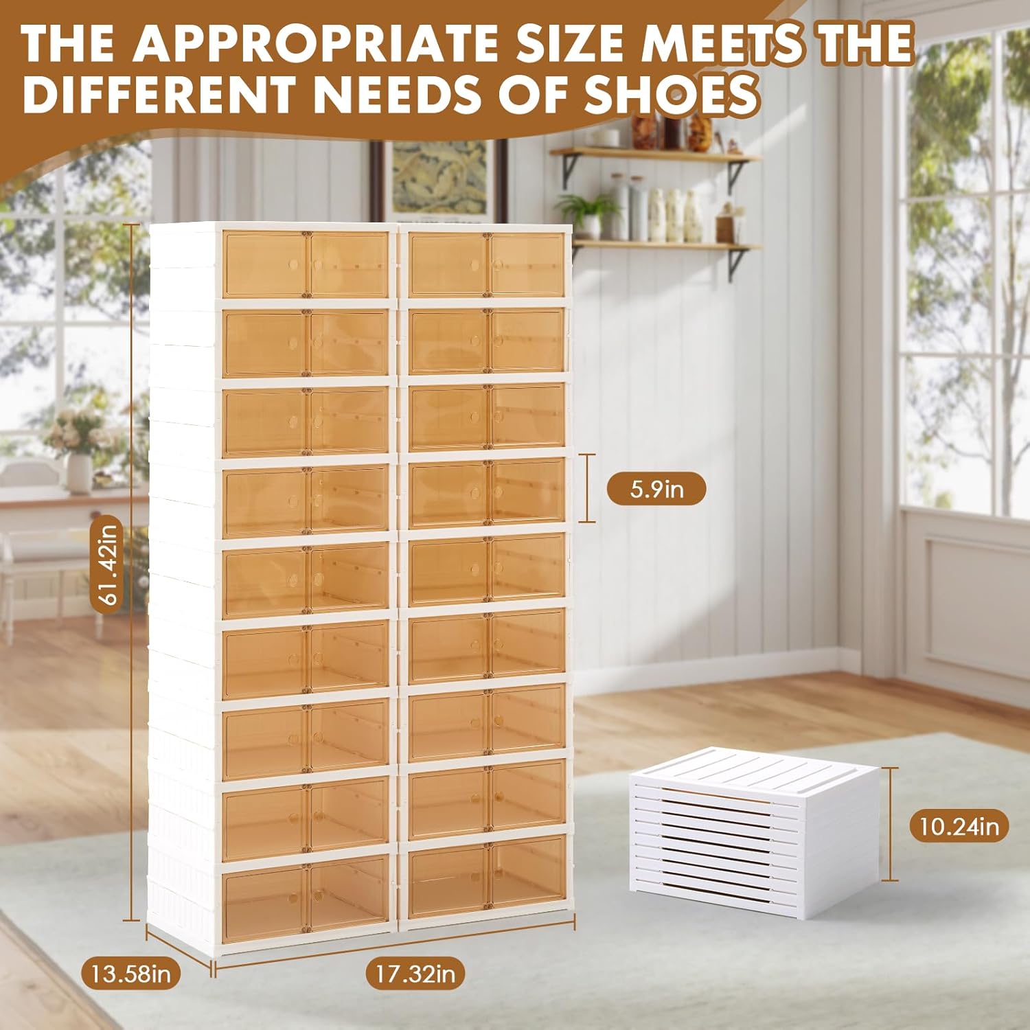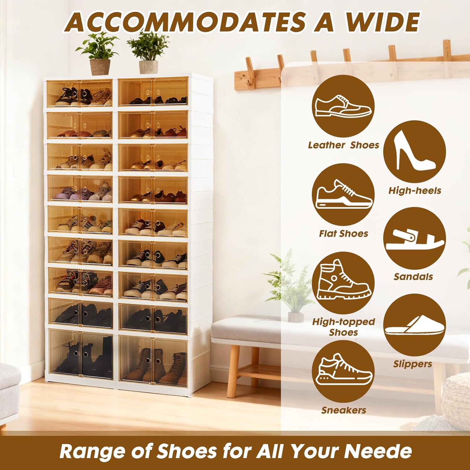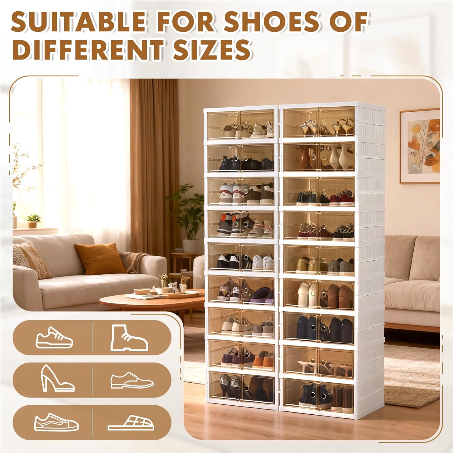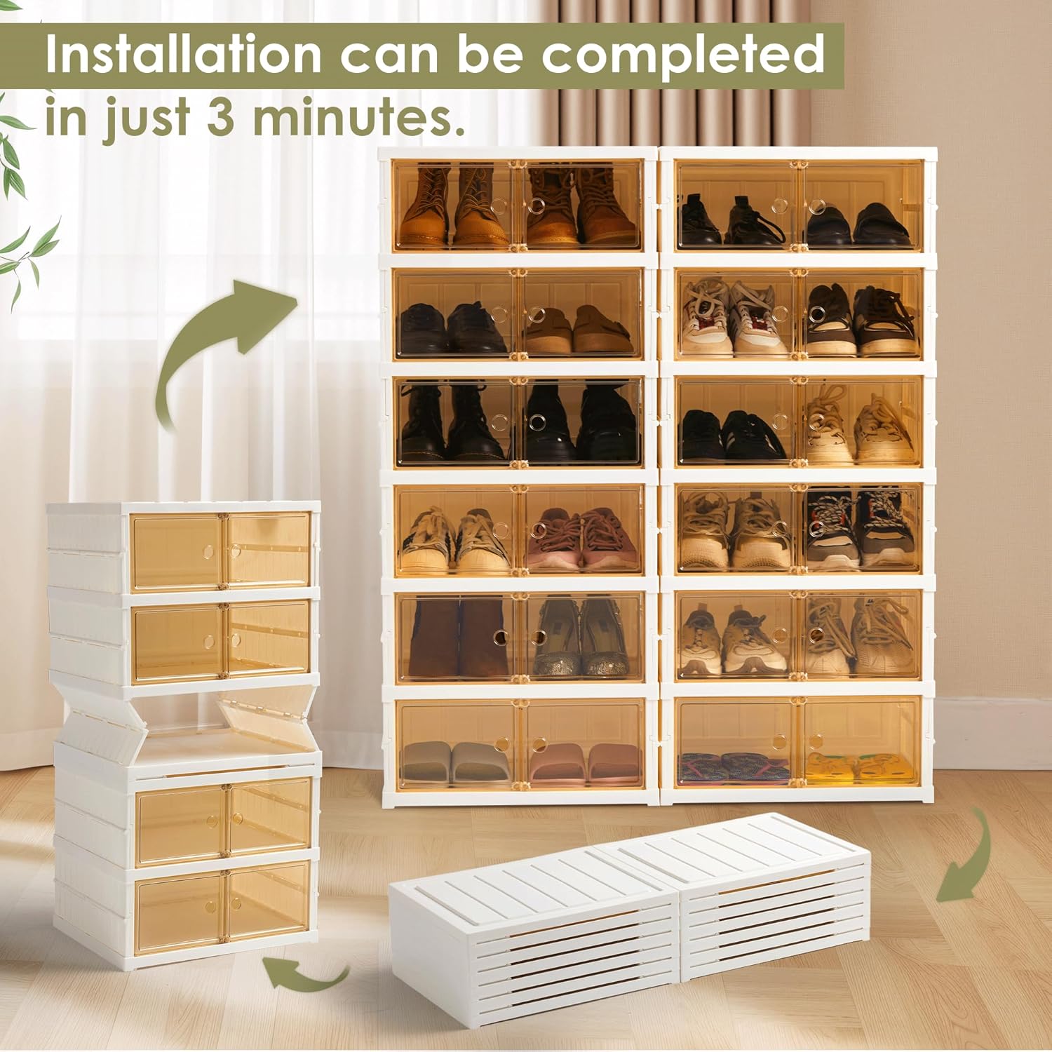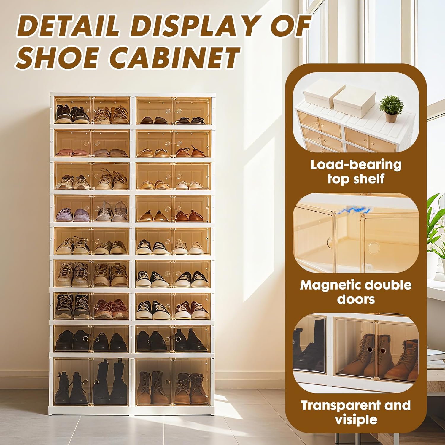 SAYMA 6 Tiers-24 Pairs Foldable Shoe Cabinet with Doors & Wheel 10Grids + 2Large grids Collapsible Shoe Rack Organizer Large Plastic Folding Shoe Cabinet for Entryway Living Room (6 Tiers-24 Pairs)