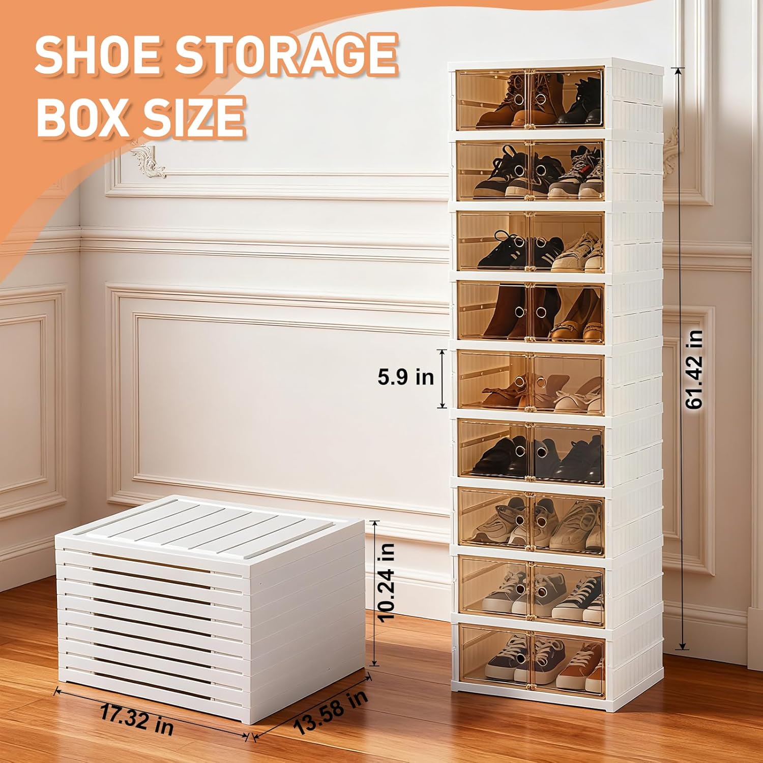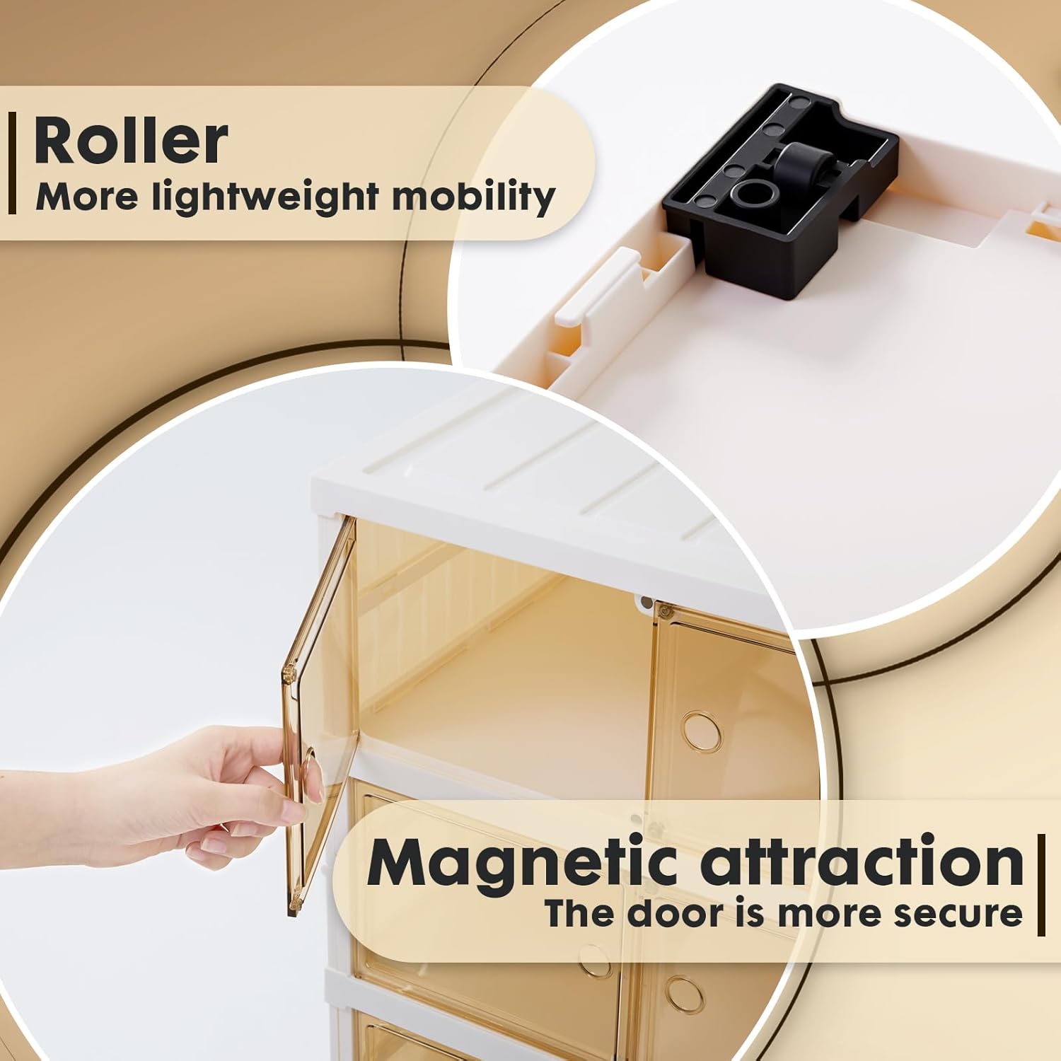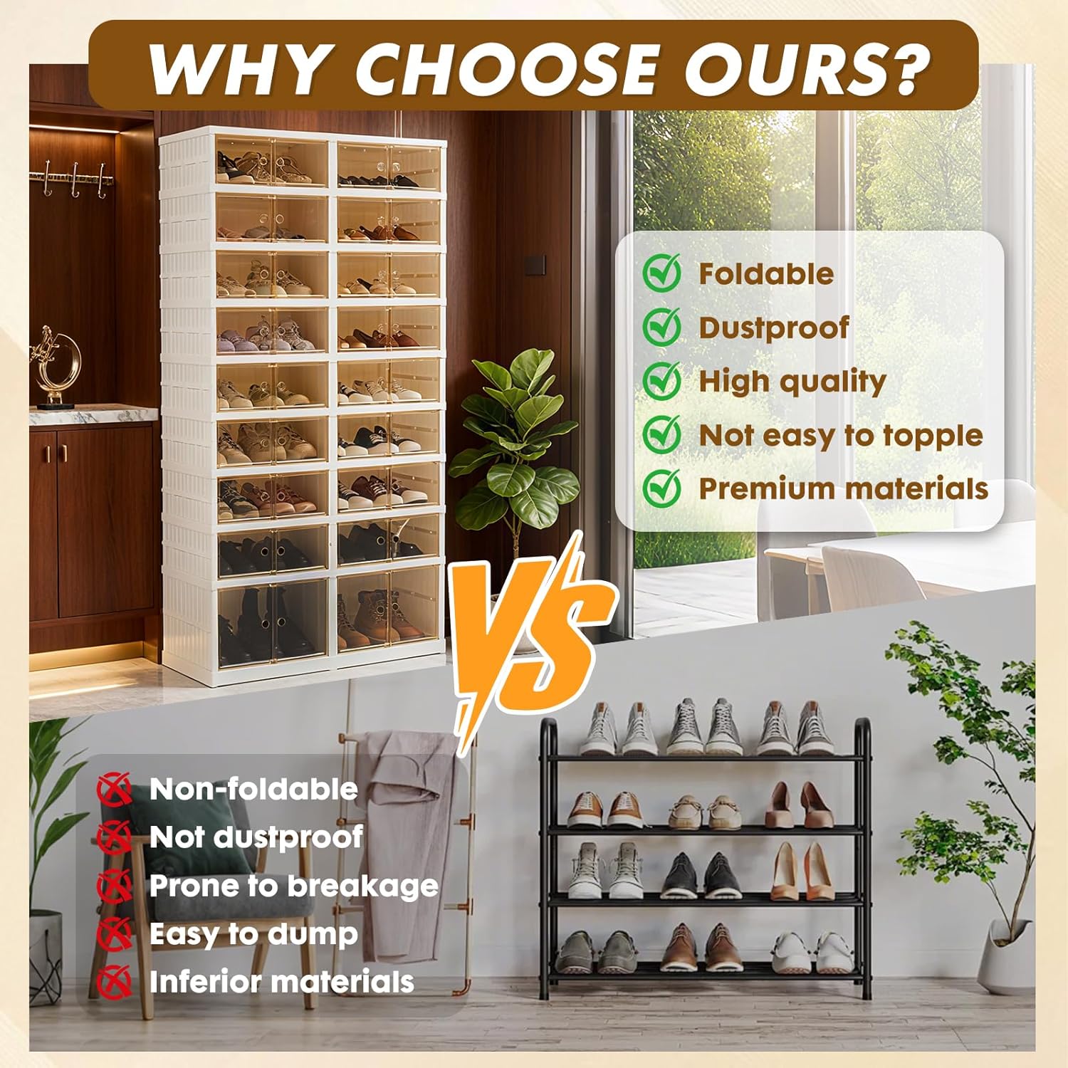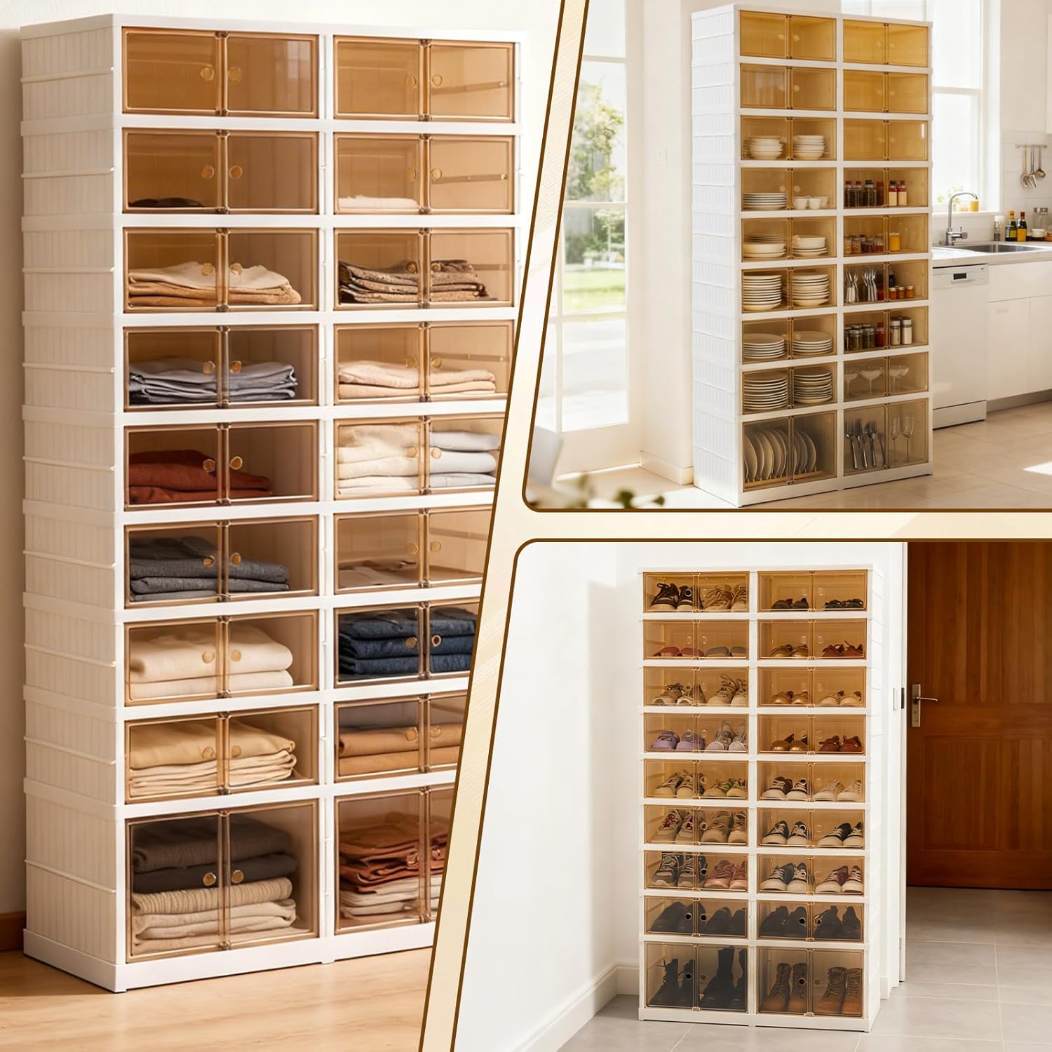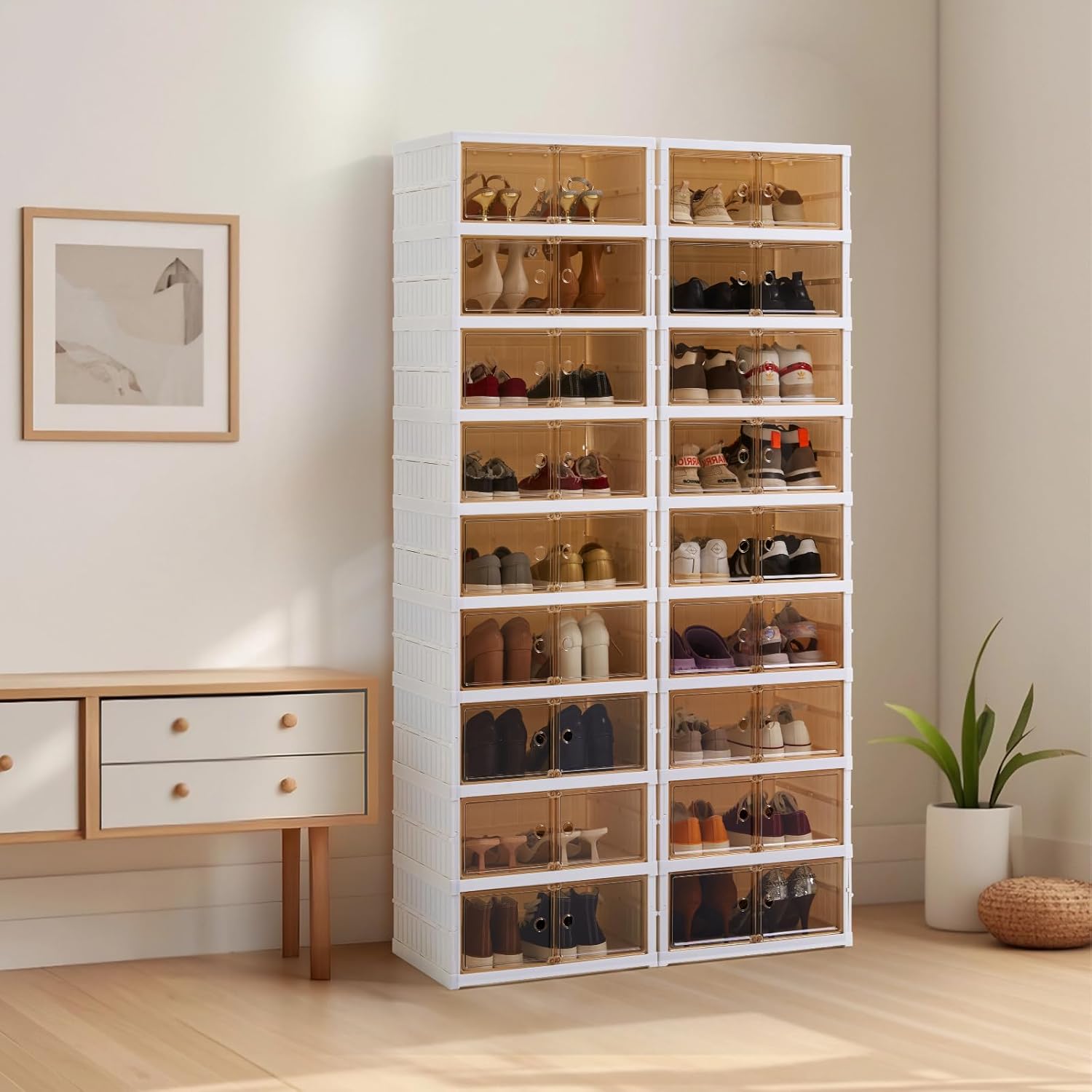 SAYMA 6 Tiers-24 Pairs Foldable Shoe Cabinet with Doors & Wheel 10Grids + 2Large grids Collapsible Shoe Rack Organizer Large Plastic Folding Shoe Cabinet for Entryway Living Room (6 Tiers-24 Pairs)