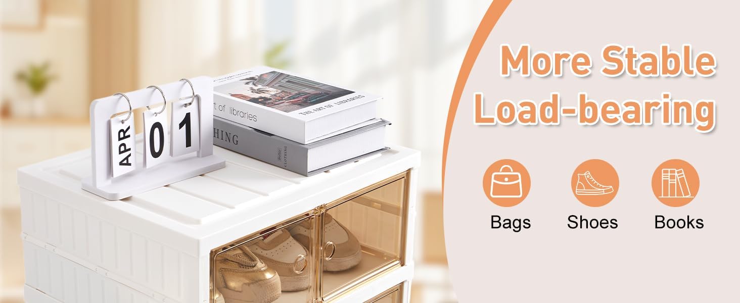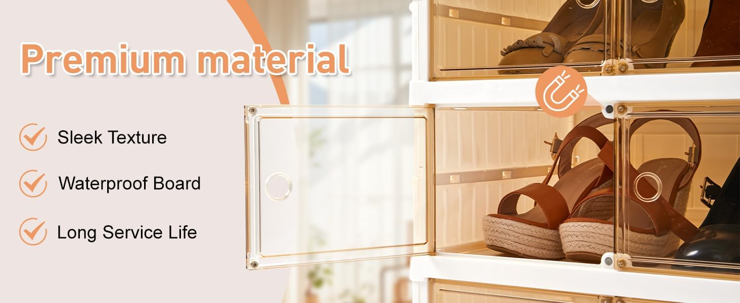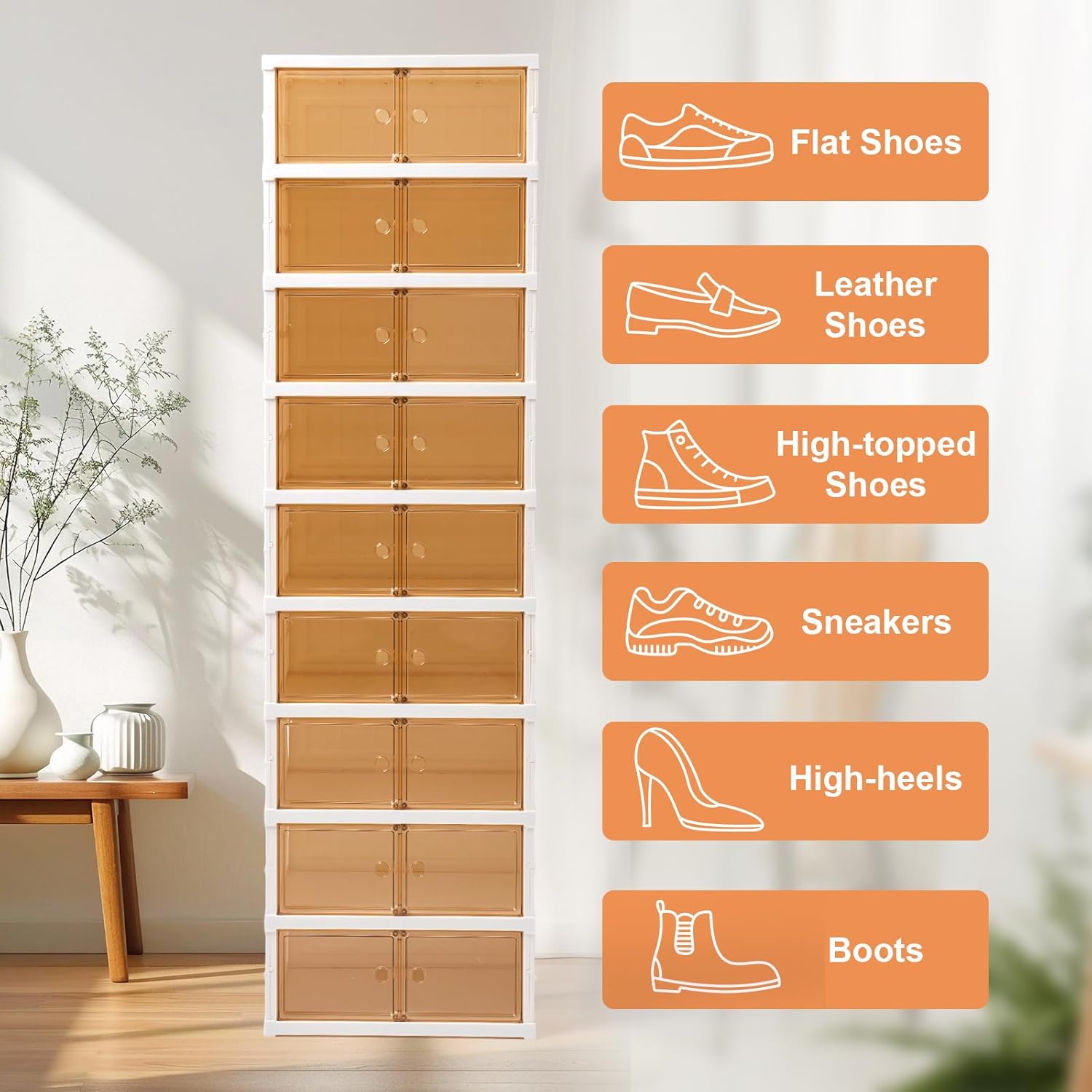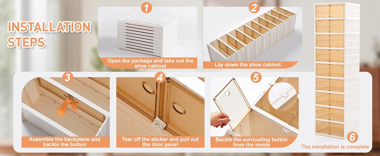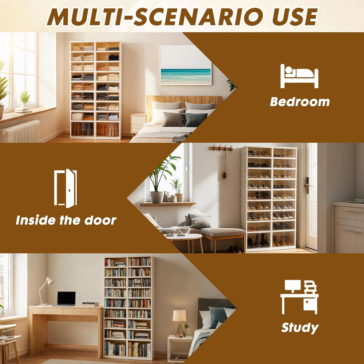 SAYMA 6 Tiers-24 Pairs Foldable Shoe Cabinet with Doors & Wheel 10Grids + 2Large grids Collapsible Shoe Rack Organizer Large Plastic Folding Shoe Cabinet for Entryway Living Room (6 Tiers-24 Pairs)