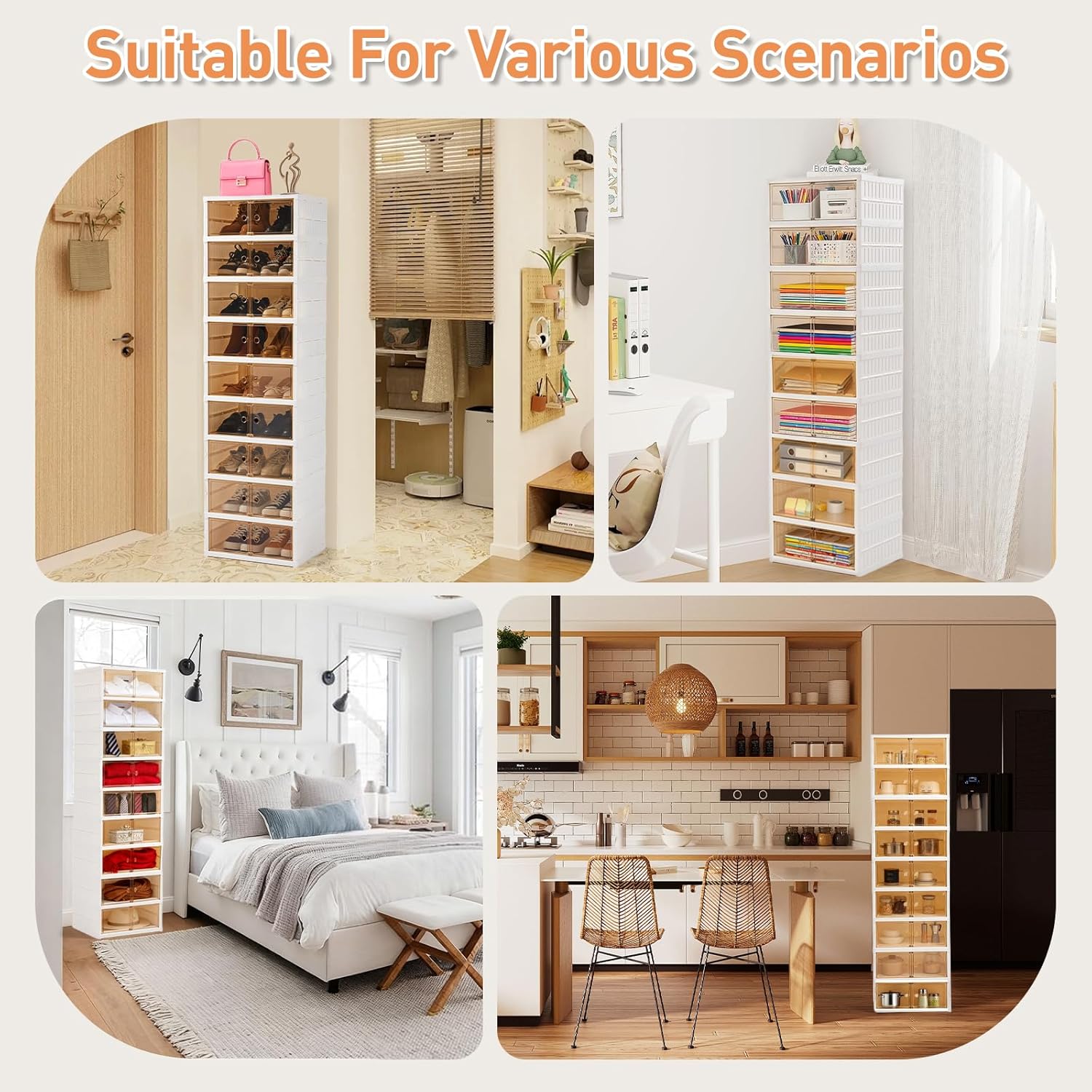 10 Tier Shoe Rack, Large Capacity Shoe Storage Organizer Holds 40 Pairs, 9-Tier Tall Shoe Rack, Wooden Shoe Storage Organizer, SS10BR-SS02WT
