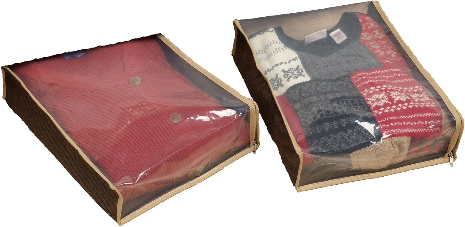 Household Essentials 66612 Sweater Storage Bags | Set of 2 | Coffee Linen,Brown/Clear (Pack of 12)